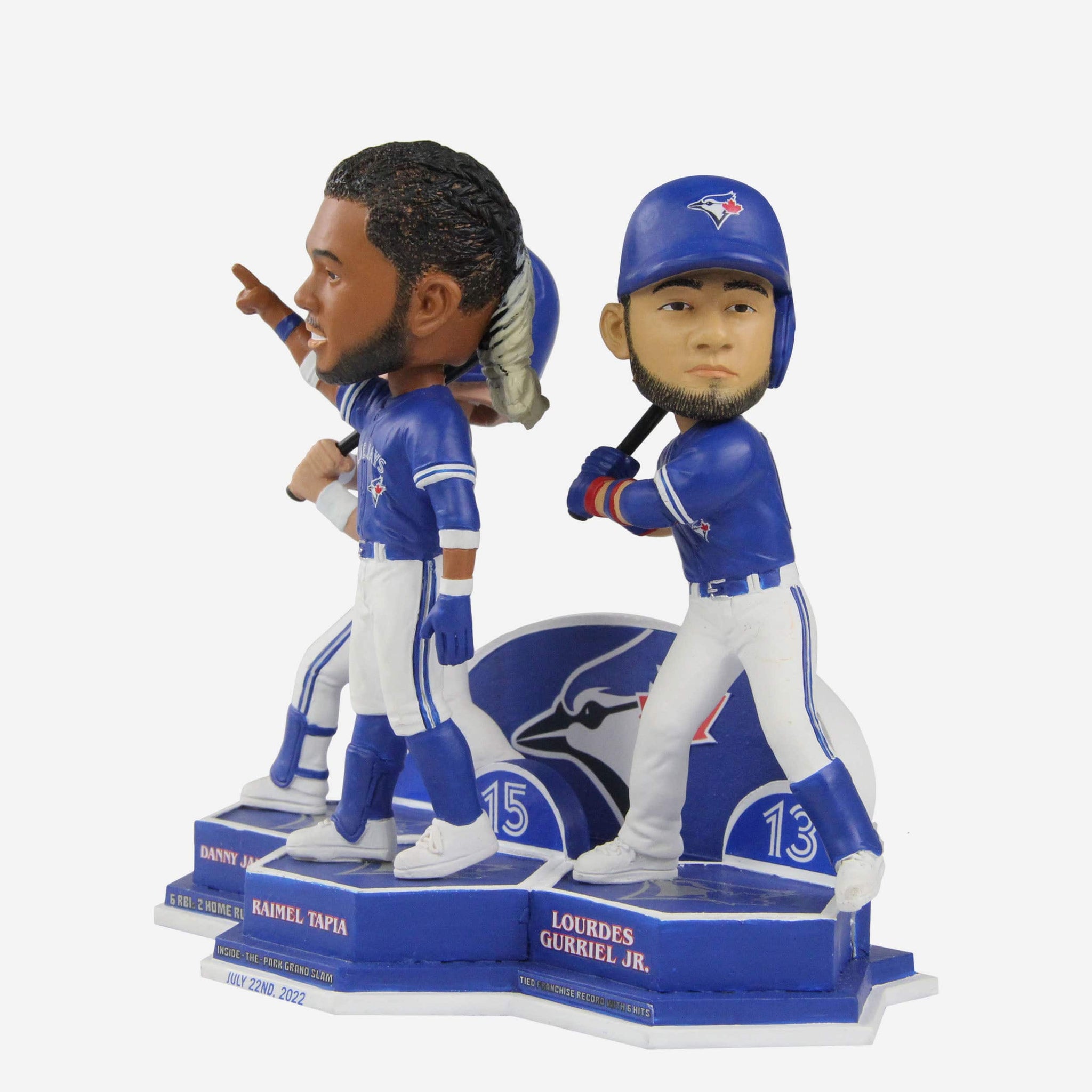 - Portrays Lourdes Gurriel Jr., Raimel Tapia, and Danny Jansen wearing their gameday uniforms in action poses, ready to keep the runs coming
