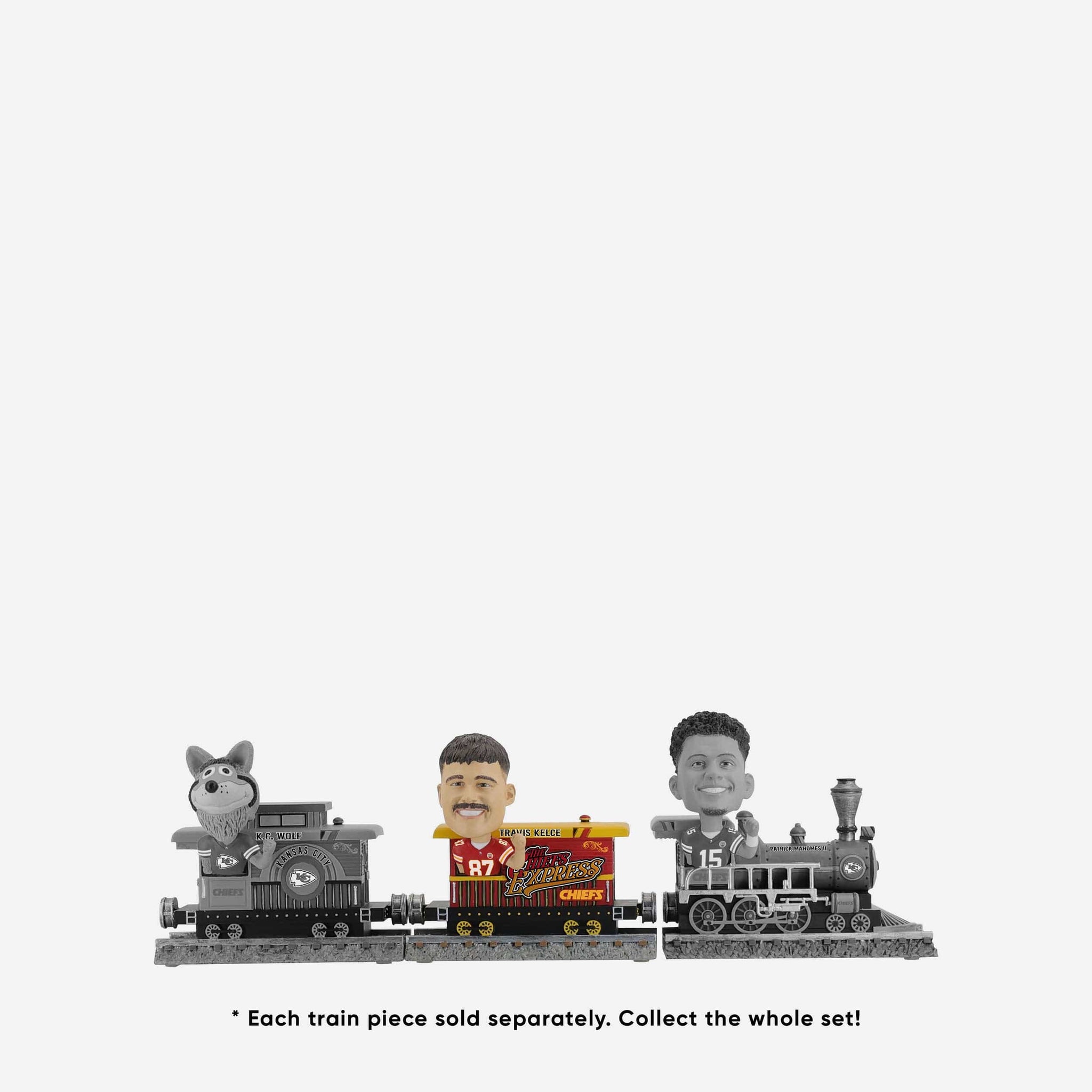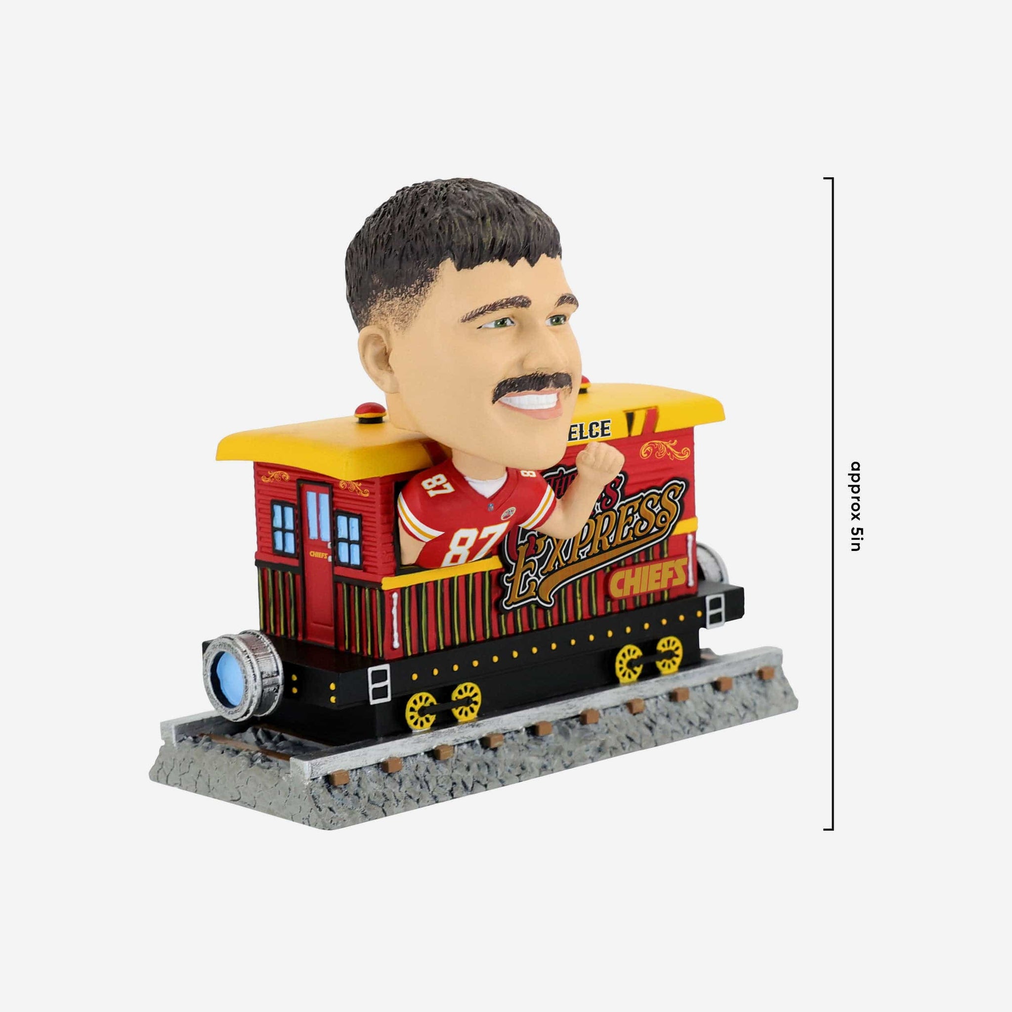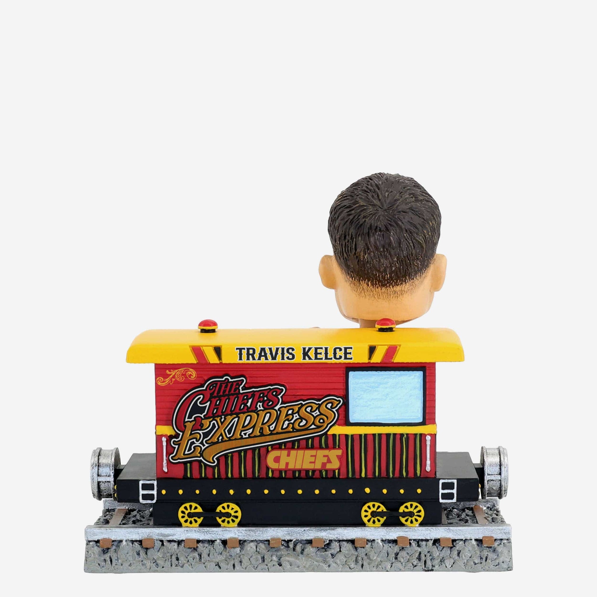 Chugga chugga choo choo! Rolling on down the tracks and into your collection, it's the Travis Kelce Kansas City Chiefs Express Train Bobblehead.