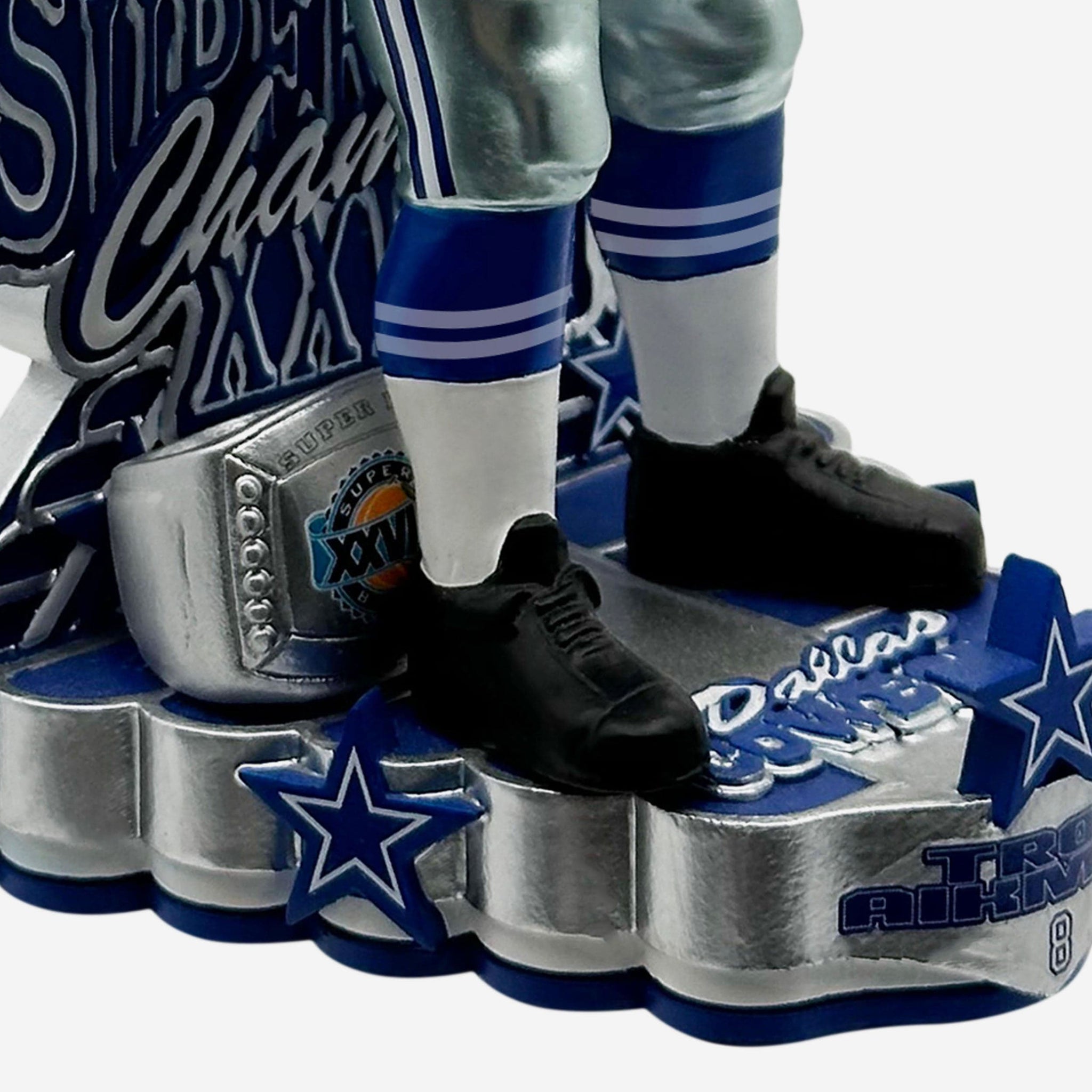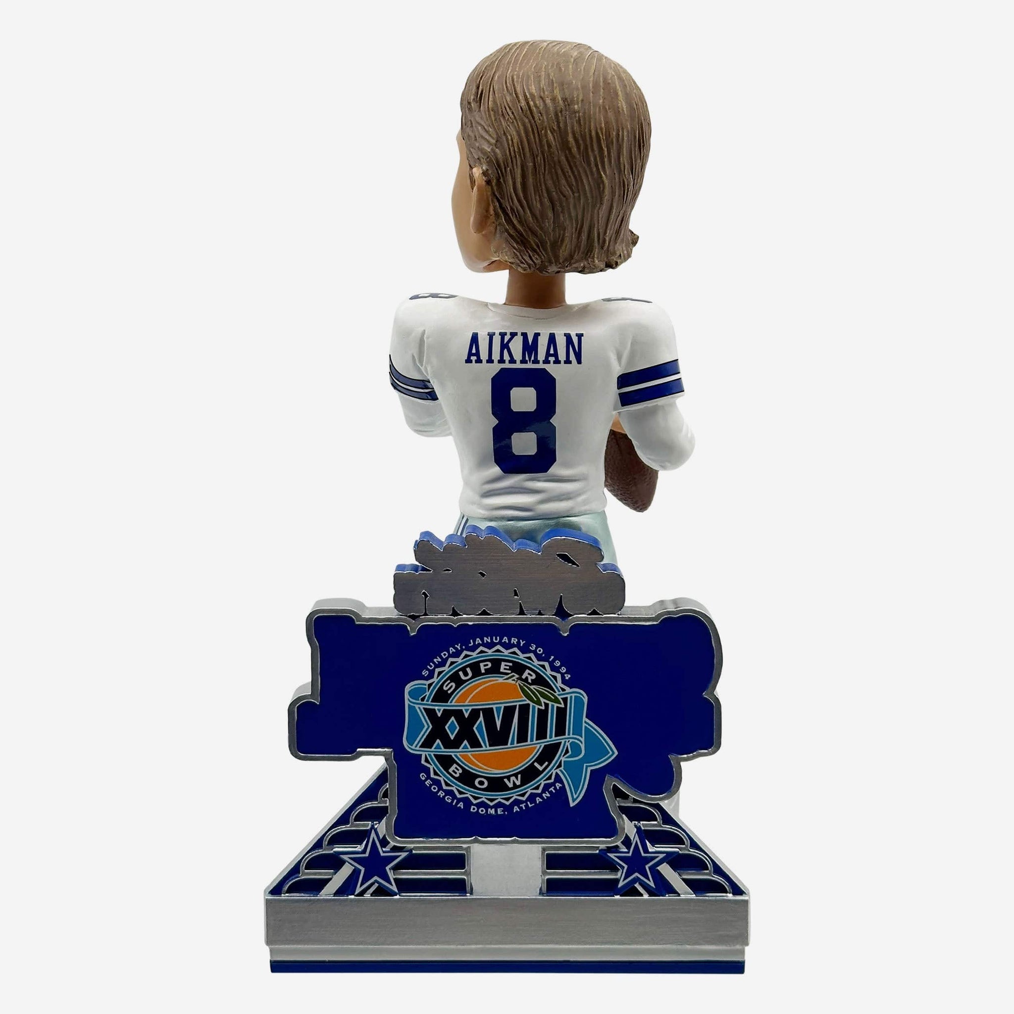 - “DALLAS COWBOYS,” “SUPER BOWL XXVIII CHAMPIONS,” and “SUNDAY, JANUARY 39, 1994” text displays on backdrop so that you never forget this iconic achievement, or when it happened