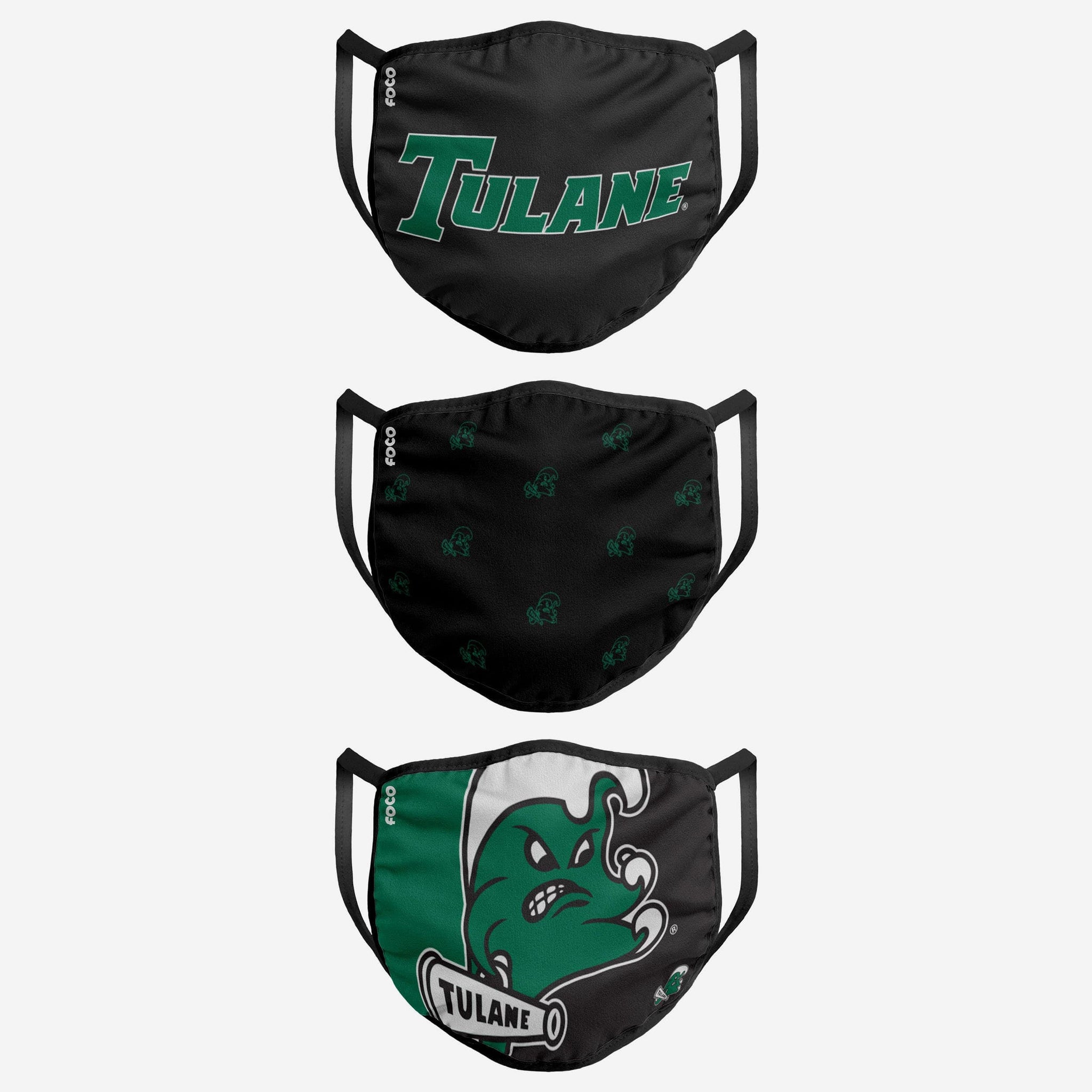 Tulane Green Wave 3 Pack Face Cover FOCO - FOCO.com