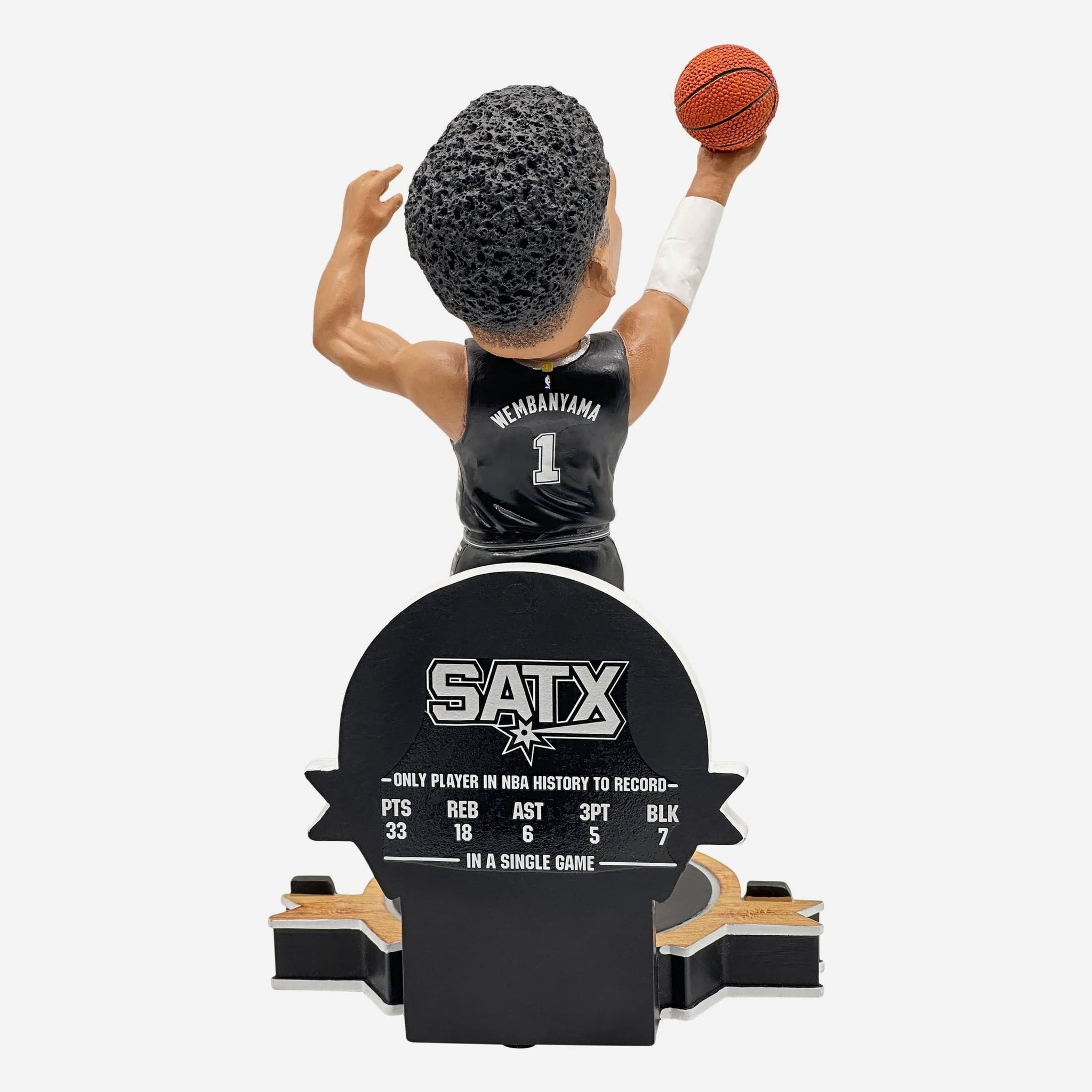 The only player in NBA history with a 30+ point, 15+ rebound, and 5+ assist, steal, and block game: Victor Wembanyama. Take control of the game with the Victor Wembanyama San Antonio Spurs Statement Jersey Gamebreaker Bobblehead.