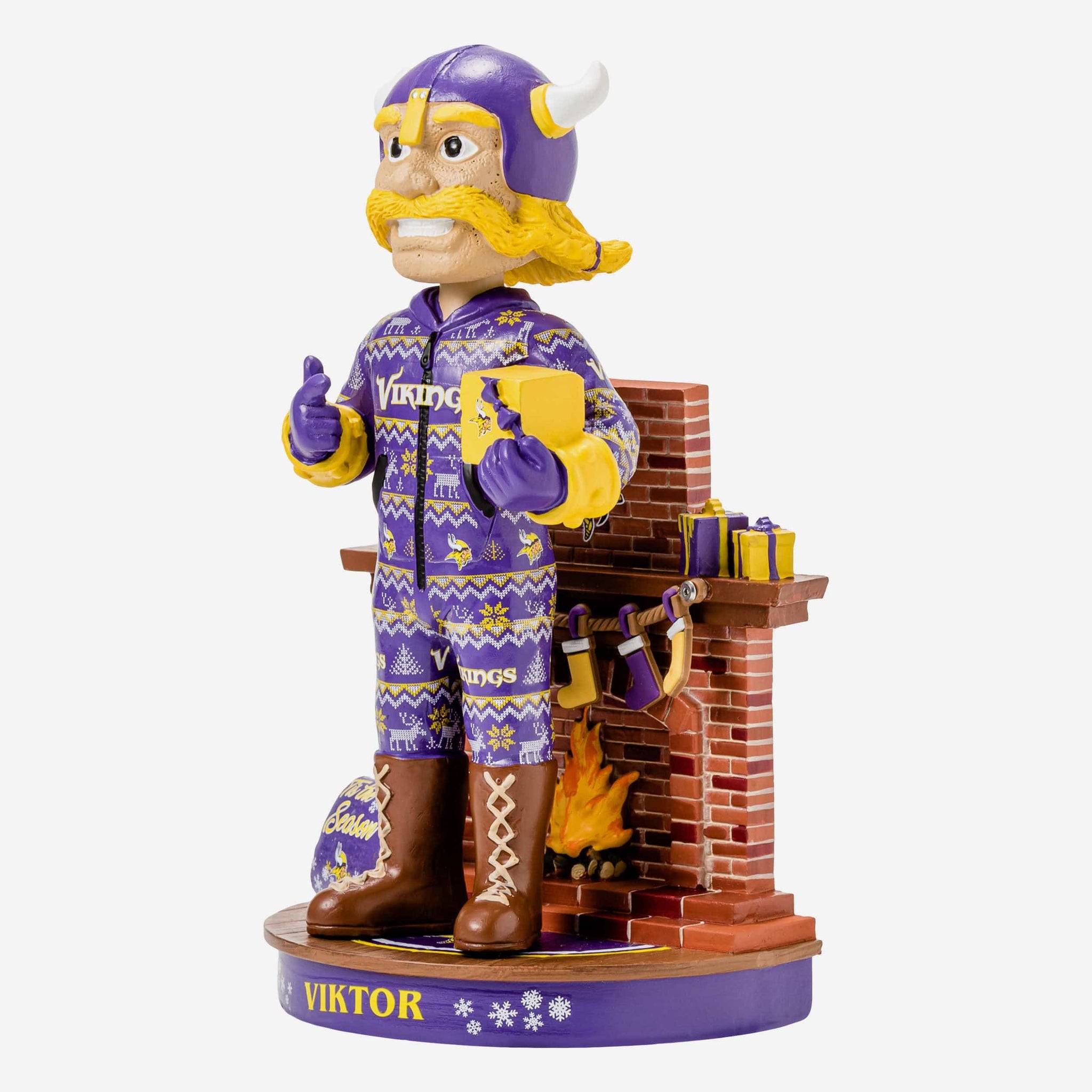 Holiday must-haves: A roaring fireplace. Hot cocoa. Gifts. And now, this. Oh, there's no place like home field for the holidays, and nothing proves that more than this Viktor the Viking Minnesota Vikings Holiday Mascot Bobblehead. 'Tis the season to rack up some Ws.