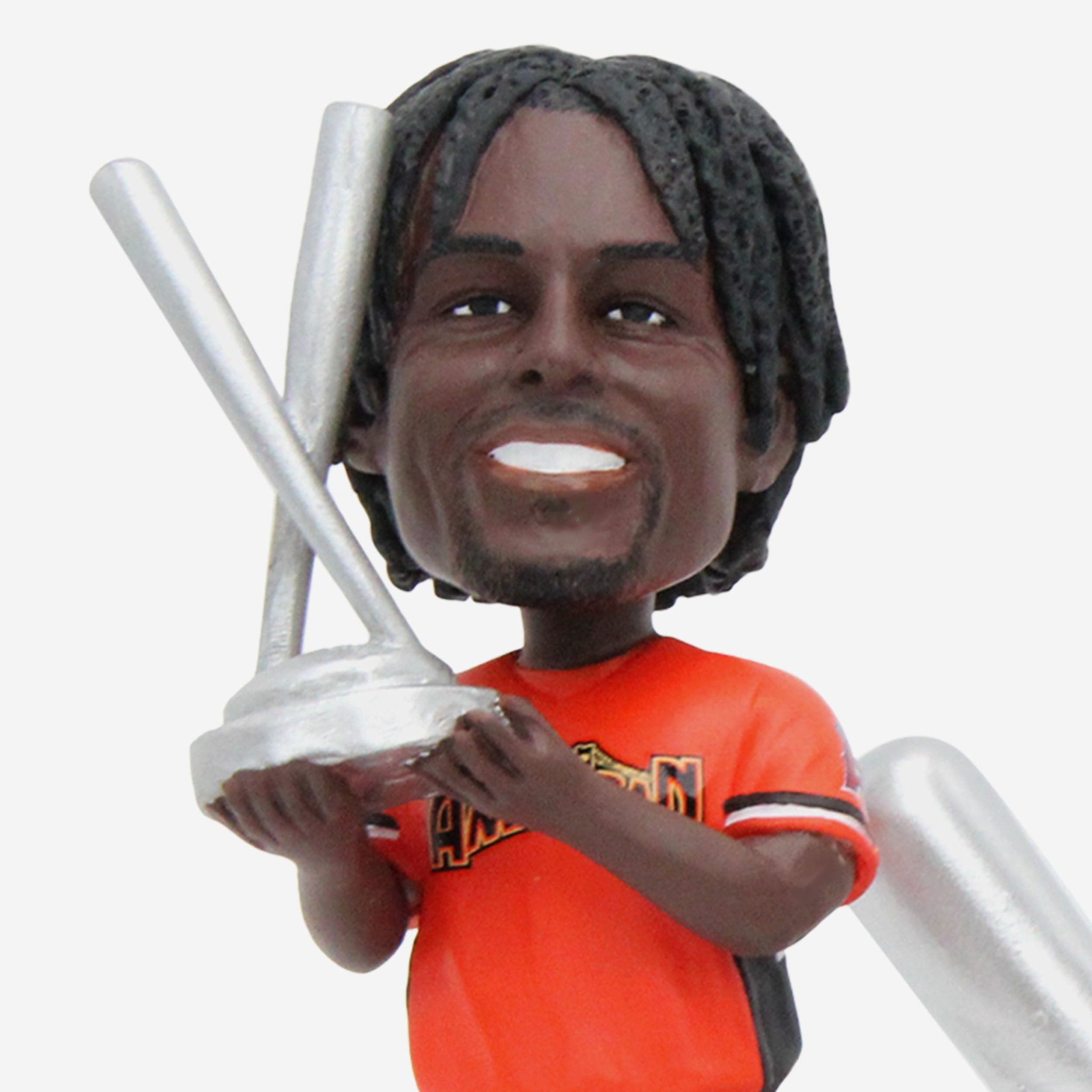 • Portrays Guerrero Sr. and Guerrero Jr. wearing their orange and white gameday uniforms, respectively, and posing with Home Run Derby championship trophies, ready to keep it in the family