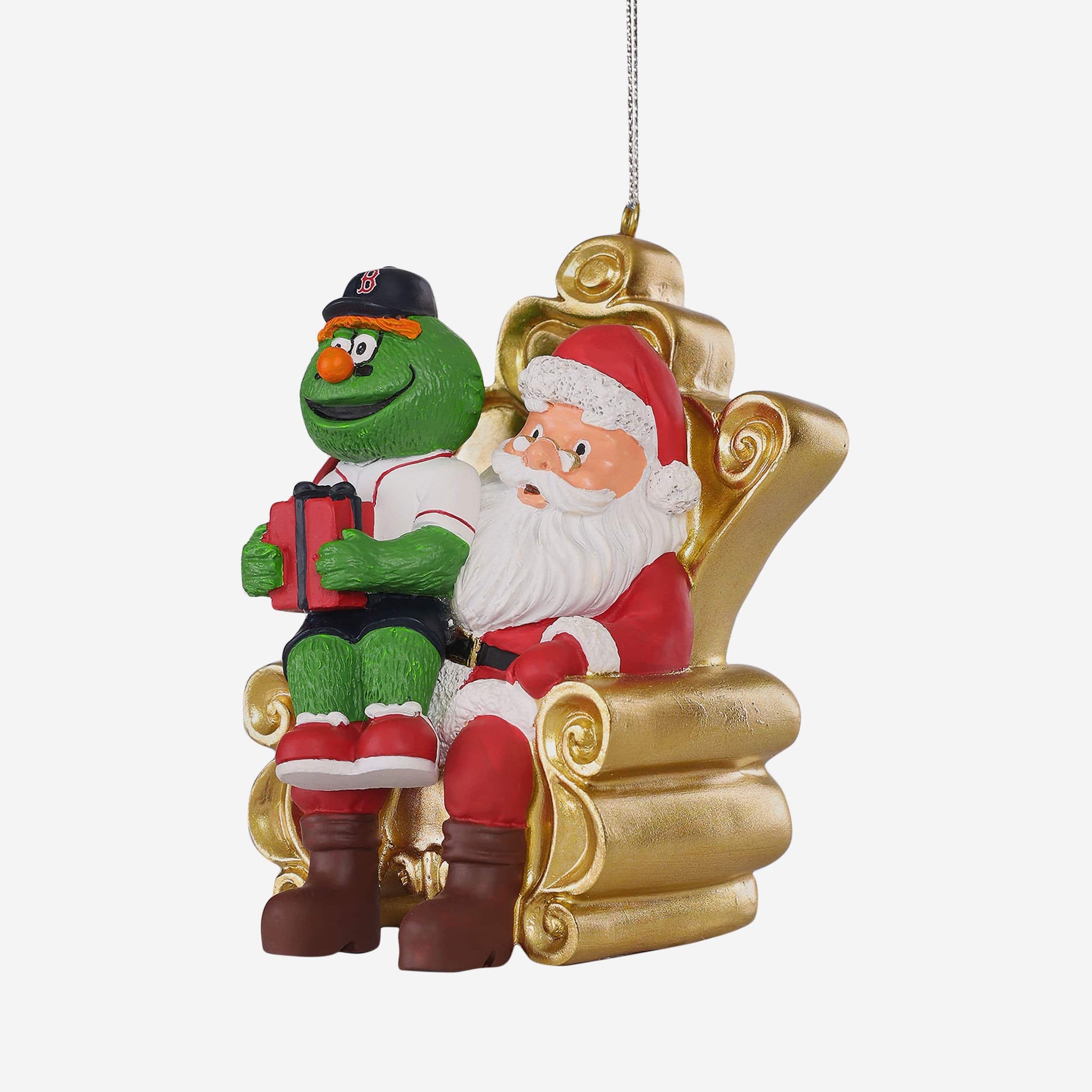 We hope the mascot's got his list ready, because he's paying St. Nick a visit in this Wally the Green Monster Boston Red Sox Mascot on Santa's Lap Ornament!