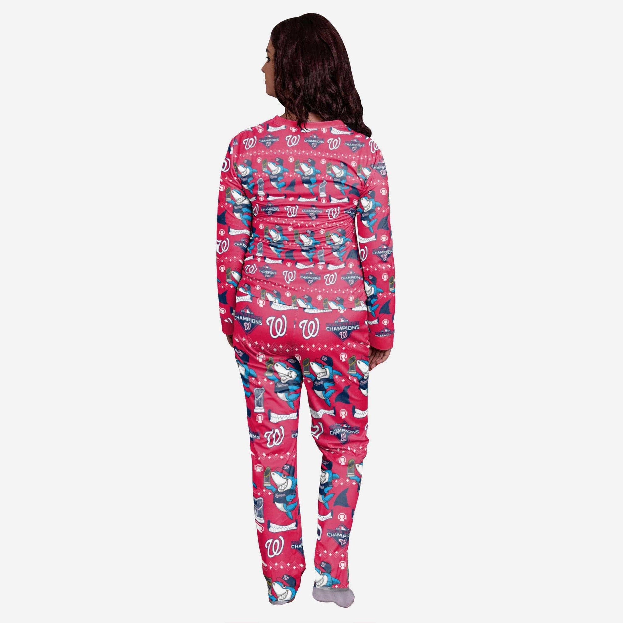Get some matching family pajamas to turn your good night's sleep into a champion night's sleep. You won't want to miss these championship women's pajamas. These women's PJ's are comfortable and show off your champ spirit in the form of some sweet women's jammies. Introducing Washington Nationals 2019 World Series Champions Women's Shark Pajamas. Don't forget to take your holiday photo with the whole family wearing matching Christmas pajamas.