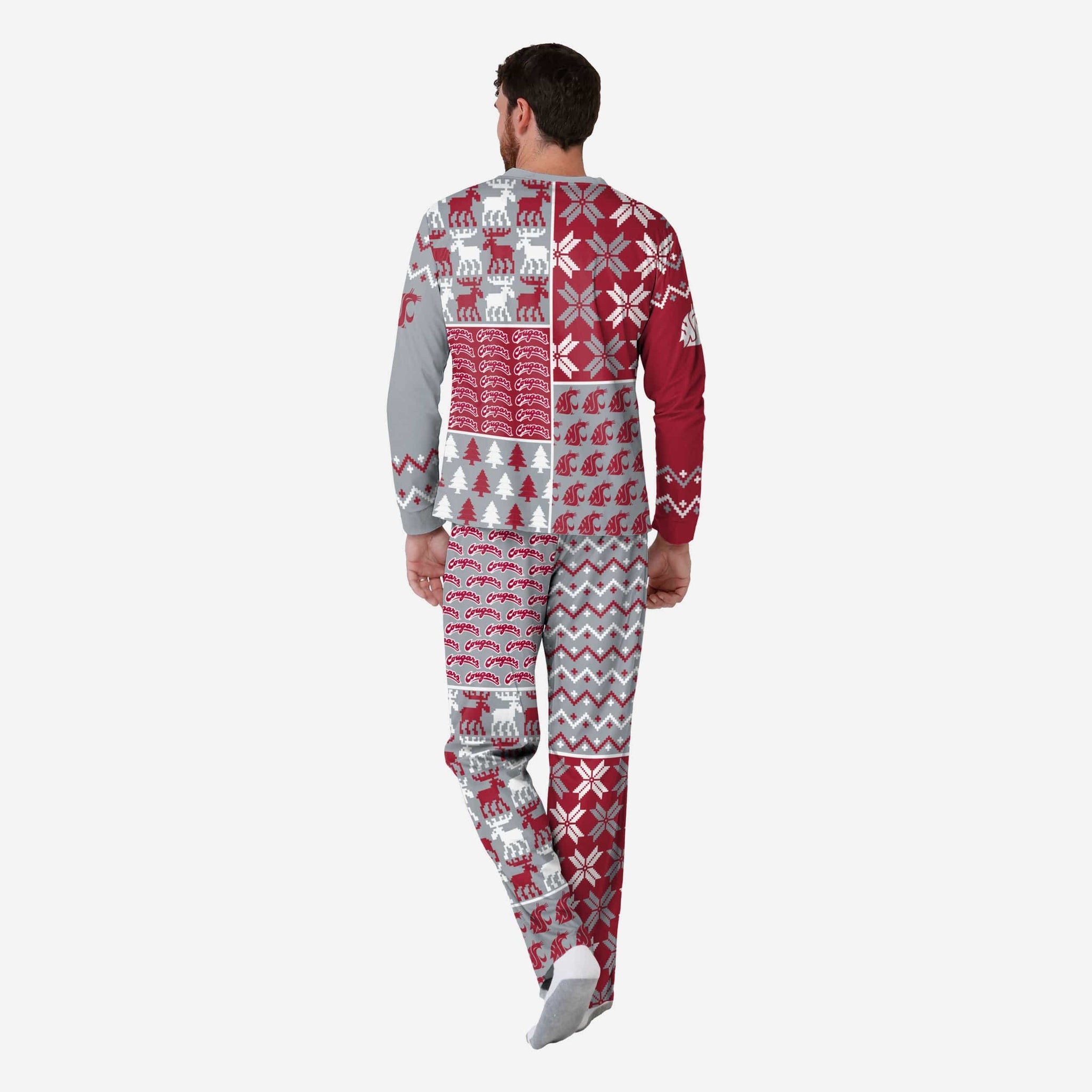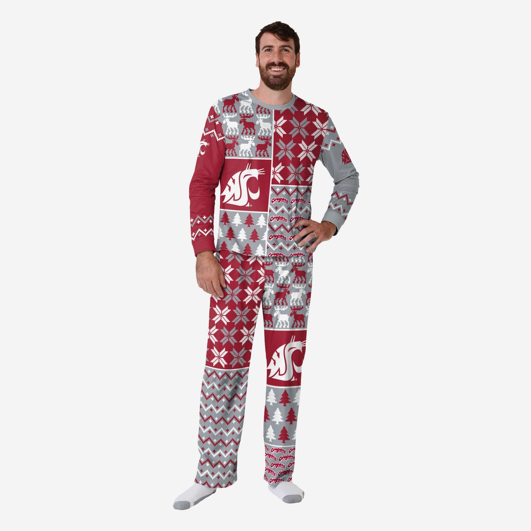 Get some matching family pajamas and dress to impress this holiday season! You won't want to miss these men's team pajamas! These men's PJ's are comfortable and show off your team spirit in the form of some sweet men's jammies. Introducing the Washington State Cougars Men's Busy Block Family Holiday Pajamas! Don't forget to take your holiday photo with the whole family wearing matching Christmas pajamas!