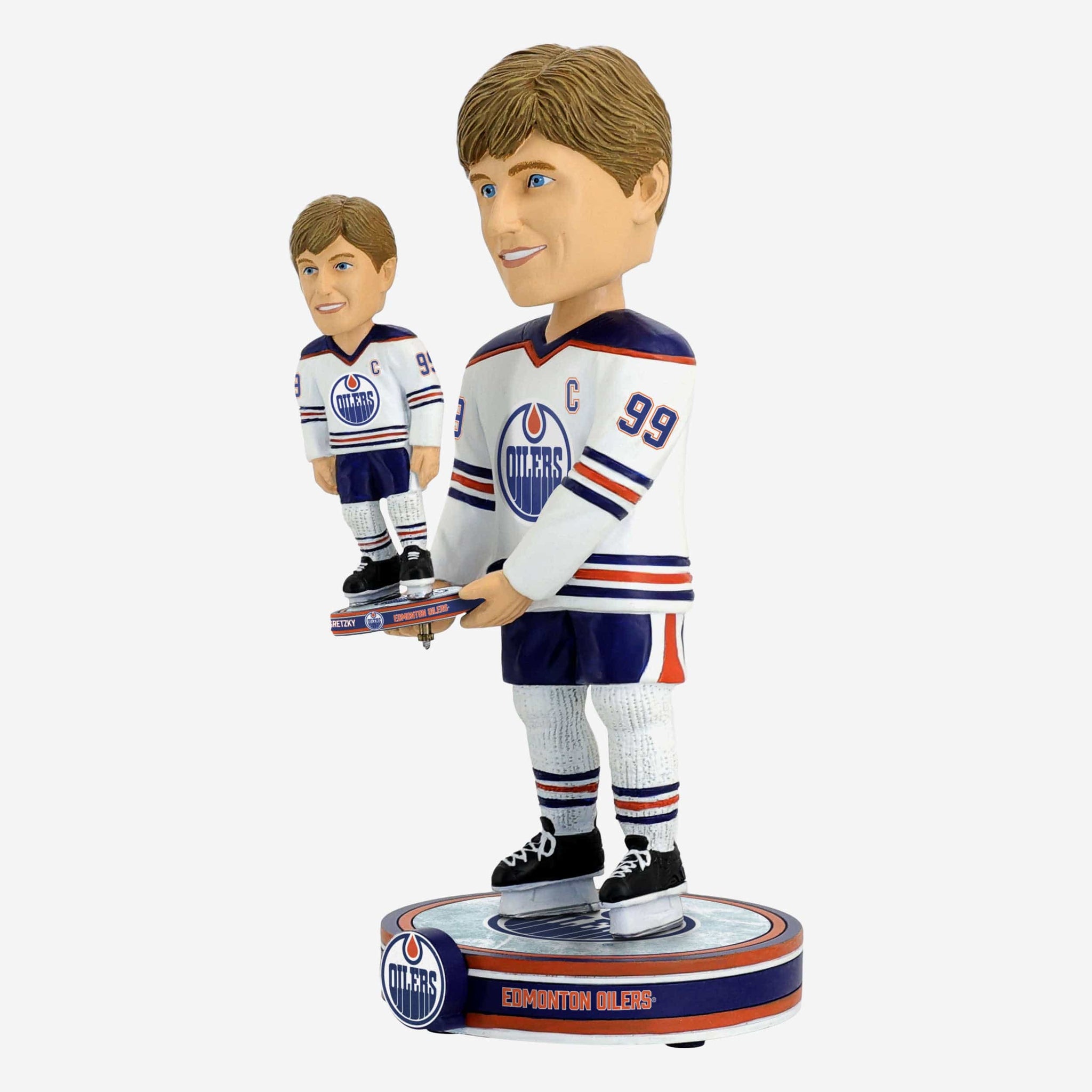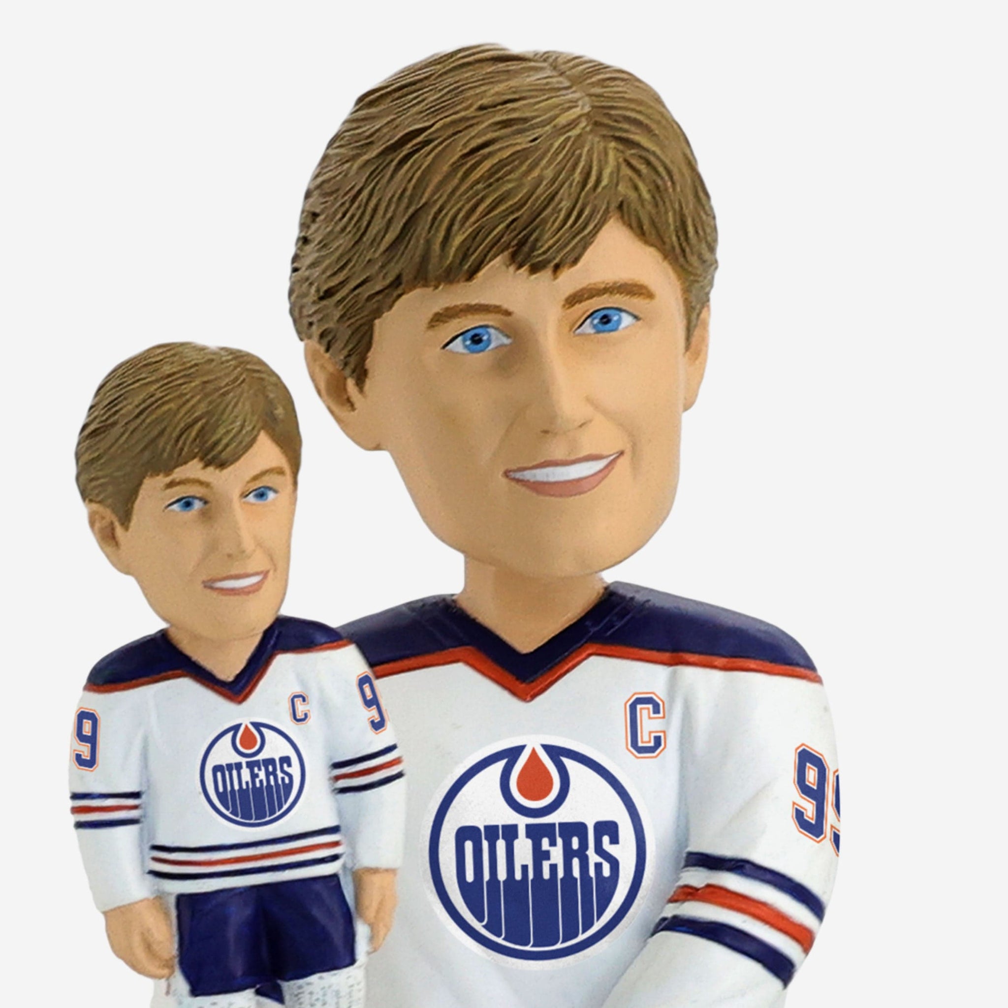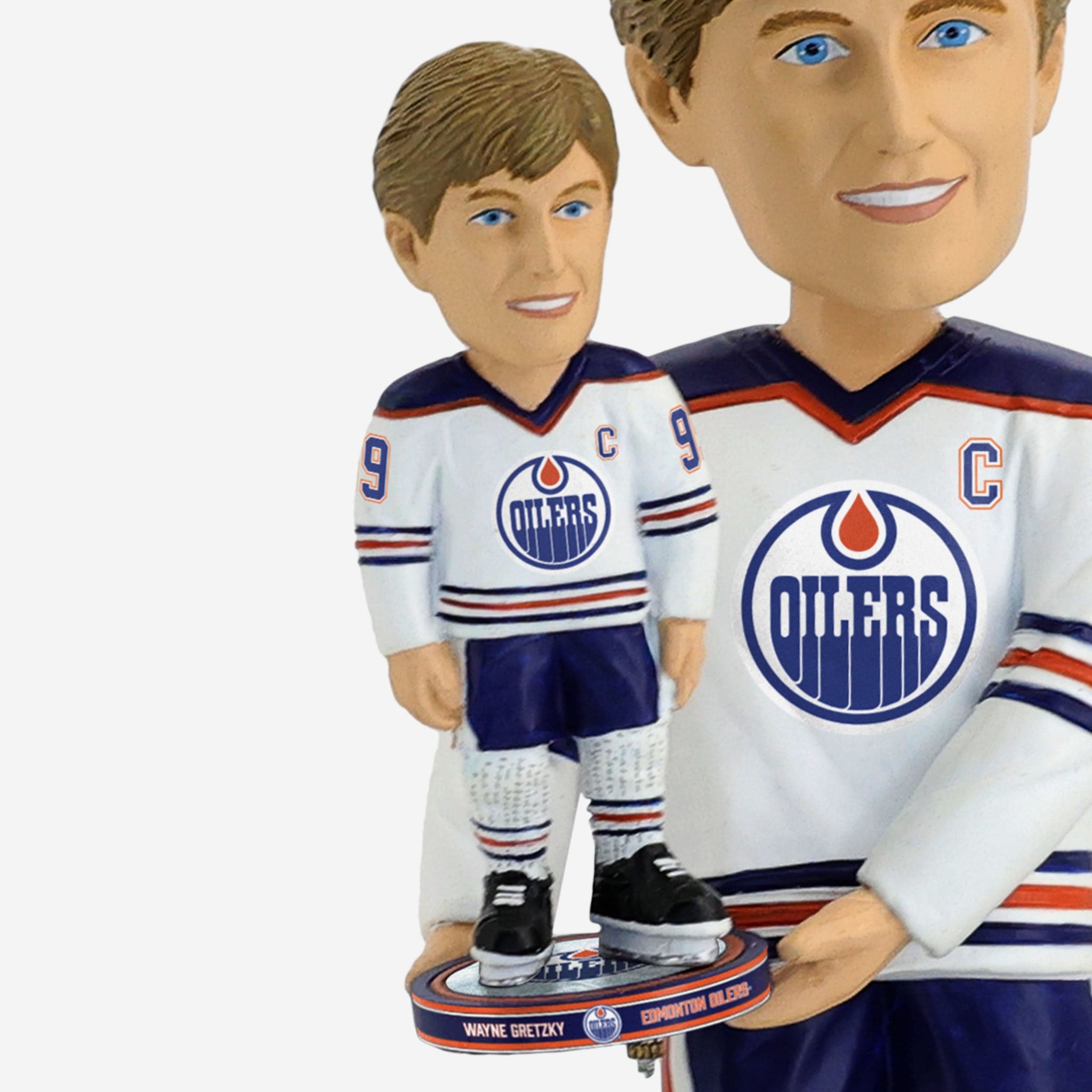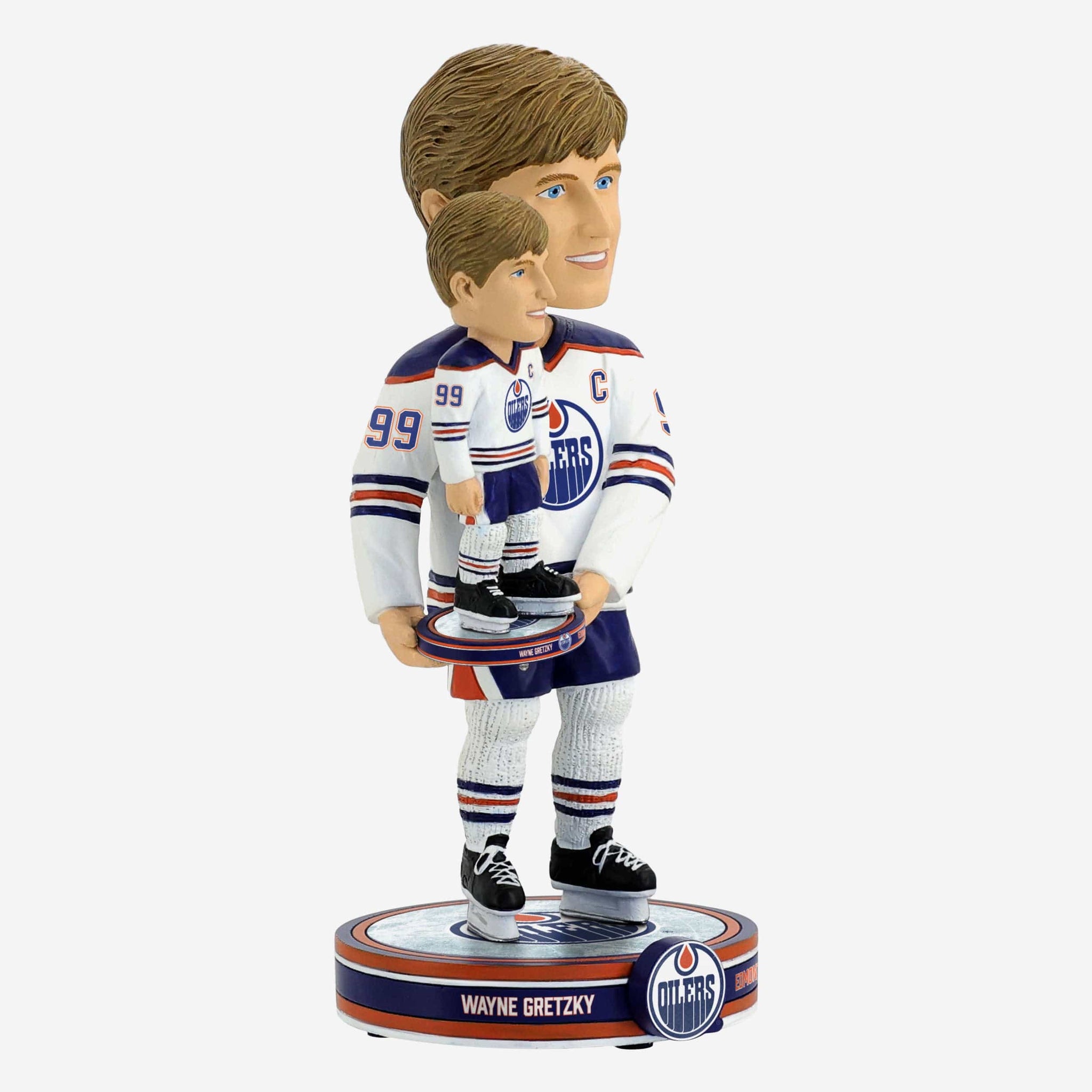 Itĺs a bobble, holding a bobble! Add a double dose of greatness to your collection with the Wayne Gretzky Edmonton Oilers Bobble Dubblz Bobblehead.