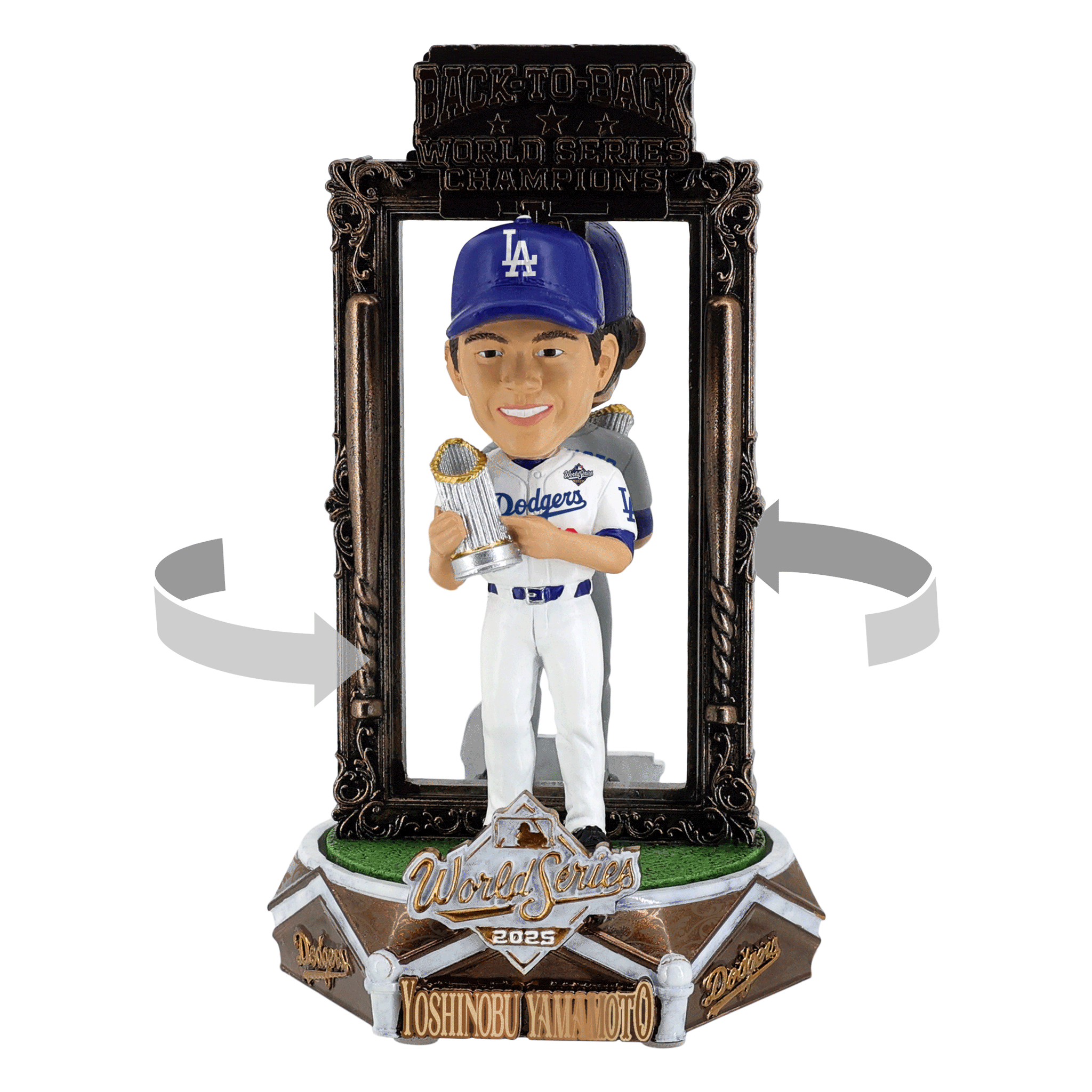Winning once is special. Going back-to-back? That’s legendary. Celebrate Los Angeles’ championship dominance with this Yoshinobu Yamamoto Los Angeles Dodgers 2025 World Series Back to Back Champions Dual Spinner Bobblehead.
