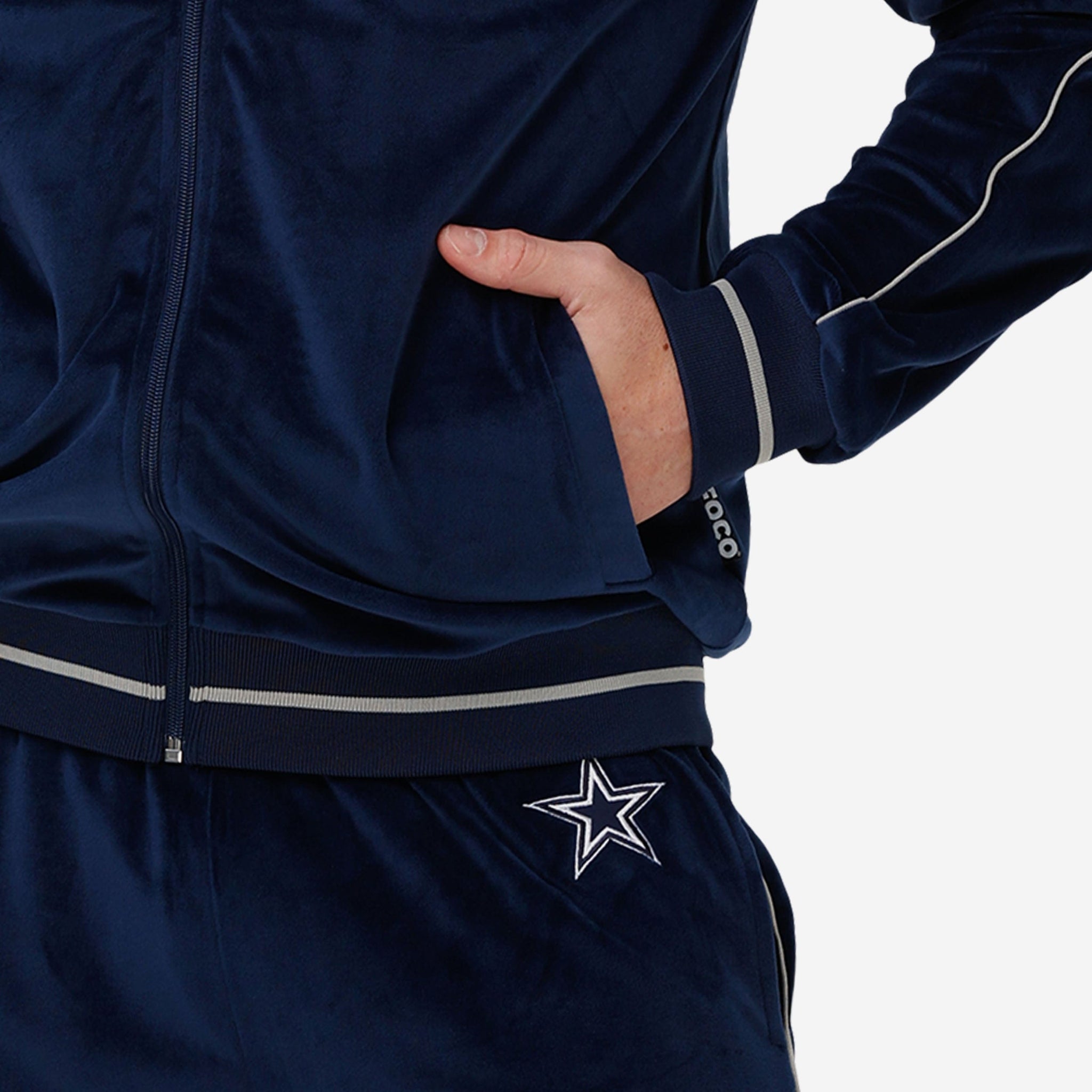 Here's a fashion tip for ya. With this Dallas Cowboys Velour Zip Up Top on your shoulders, you'll be heating up the tailgate scene and staying warm and toasty during the game.