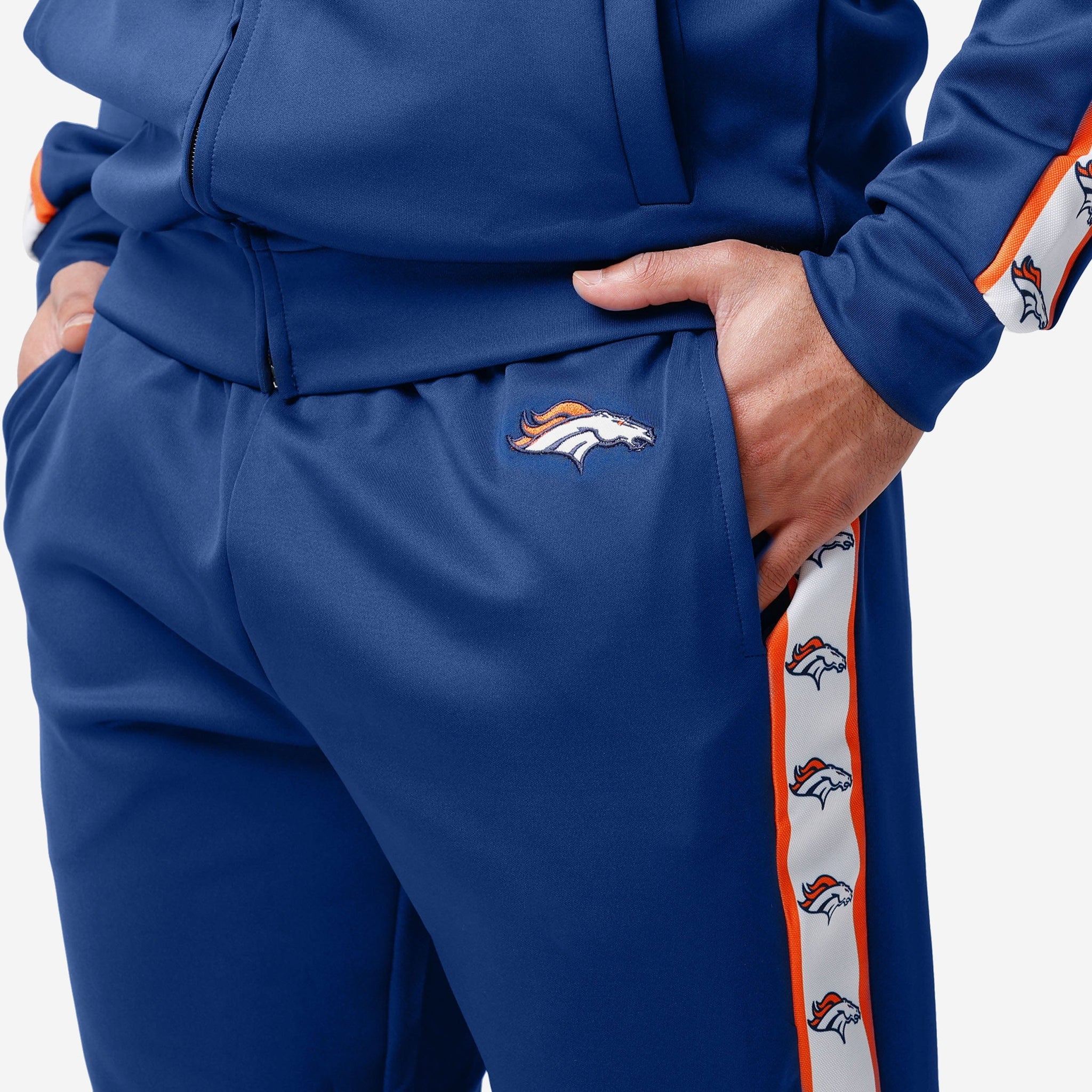 You put your pants on one leg at a time, just like any fan. Your pants are just a lot more stylish than most. Make sure you're the most fashionable fan at the tailgate or the gym with these Denver Broncos Stripe Logo Track Pants.