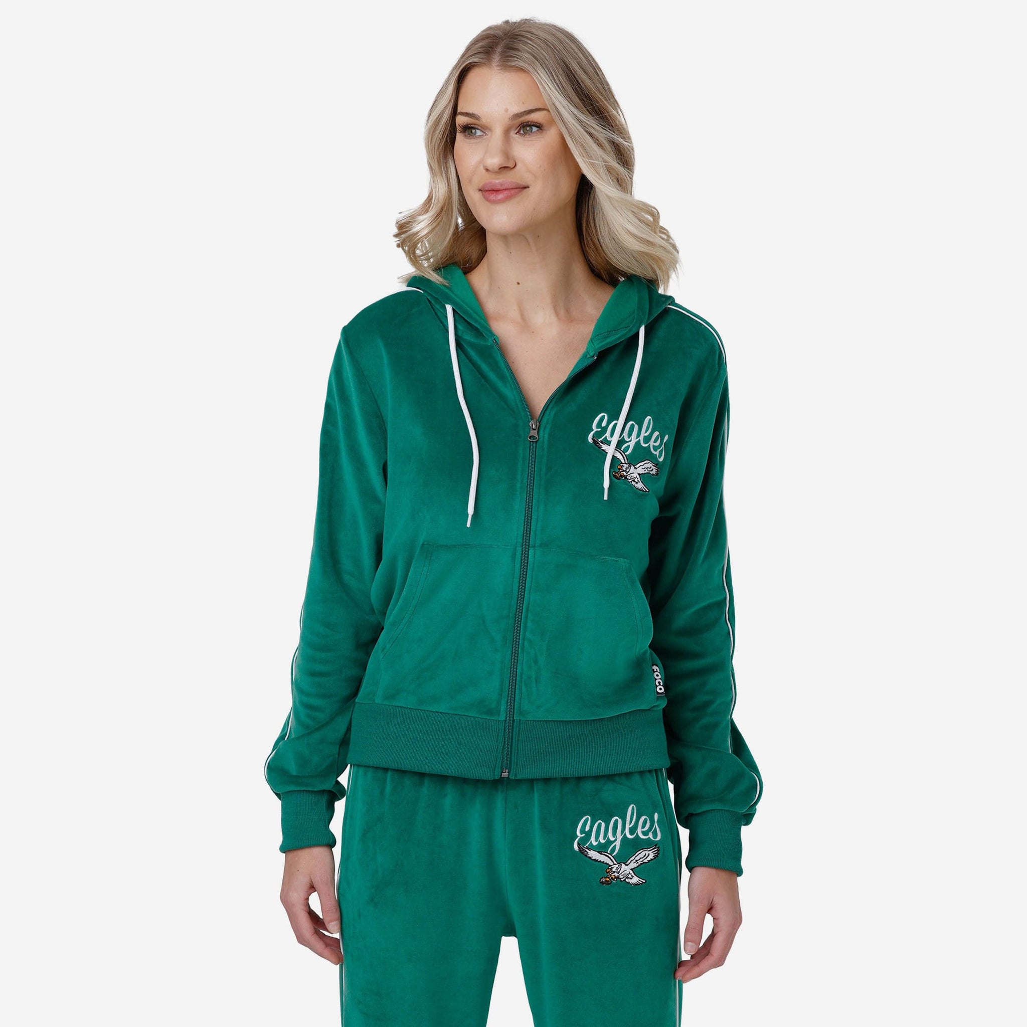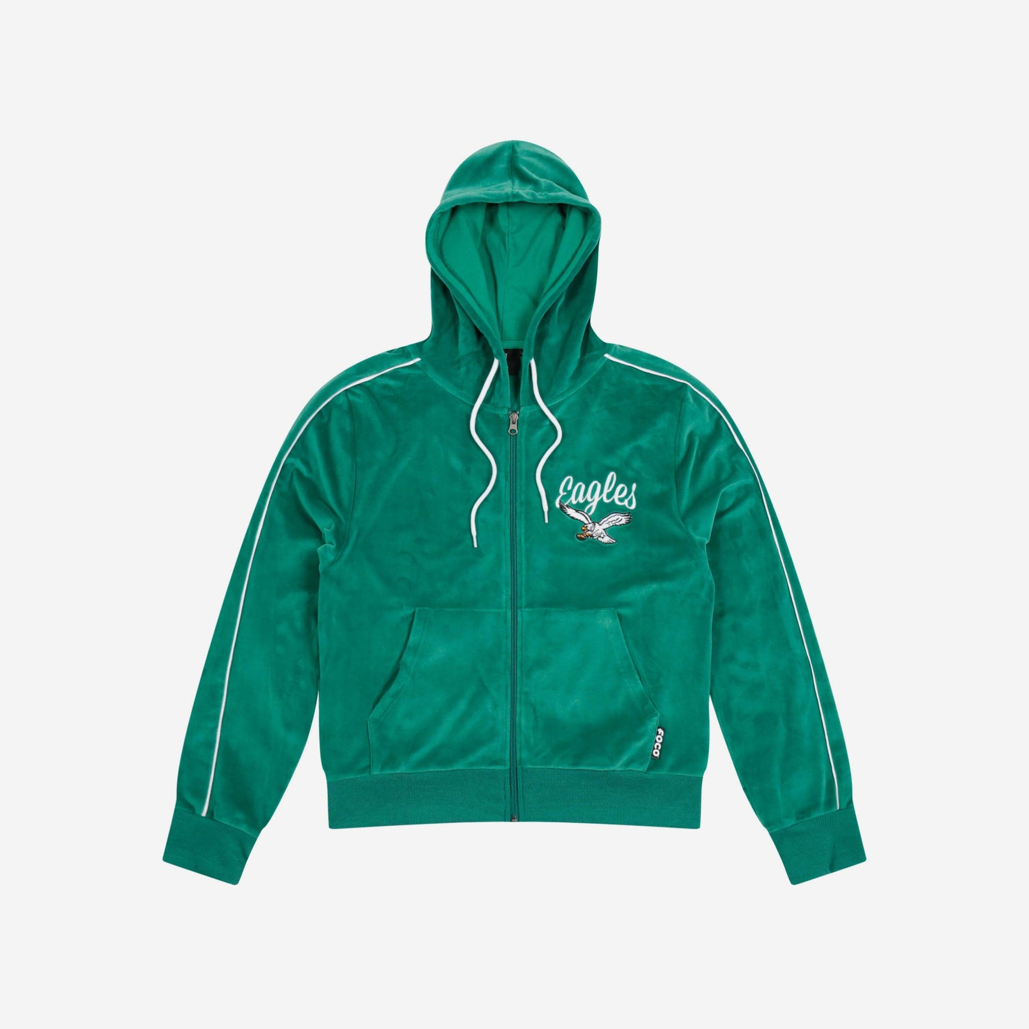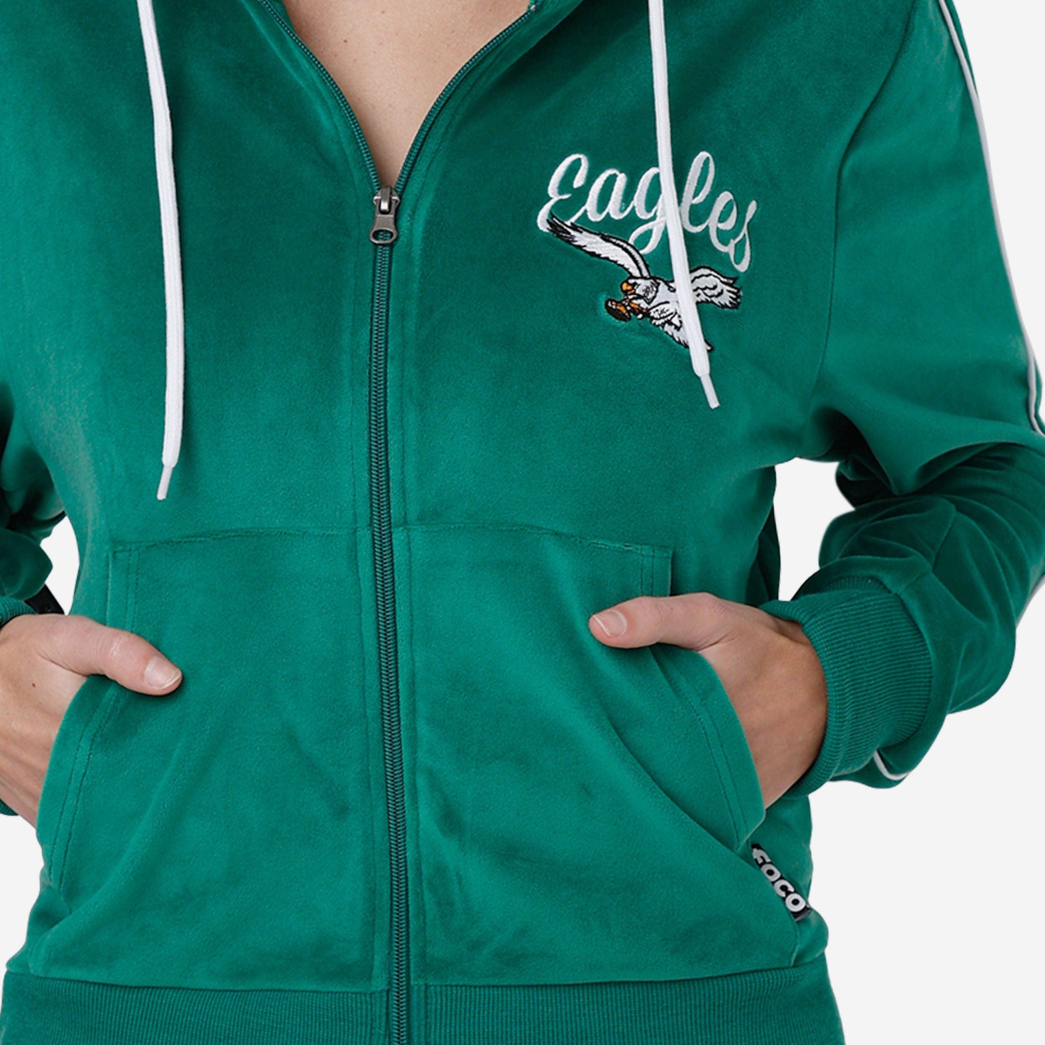 Zip up and bring fandom and fashion together in perfect harmony. This Philadelphia Eagles Retro Kelly Green Women's Velour Zip Up Top is about to be your new favorite fashion teammate.