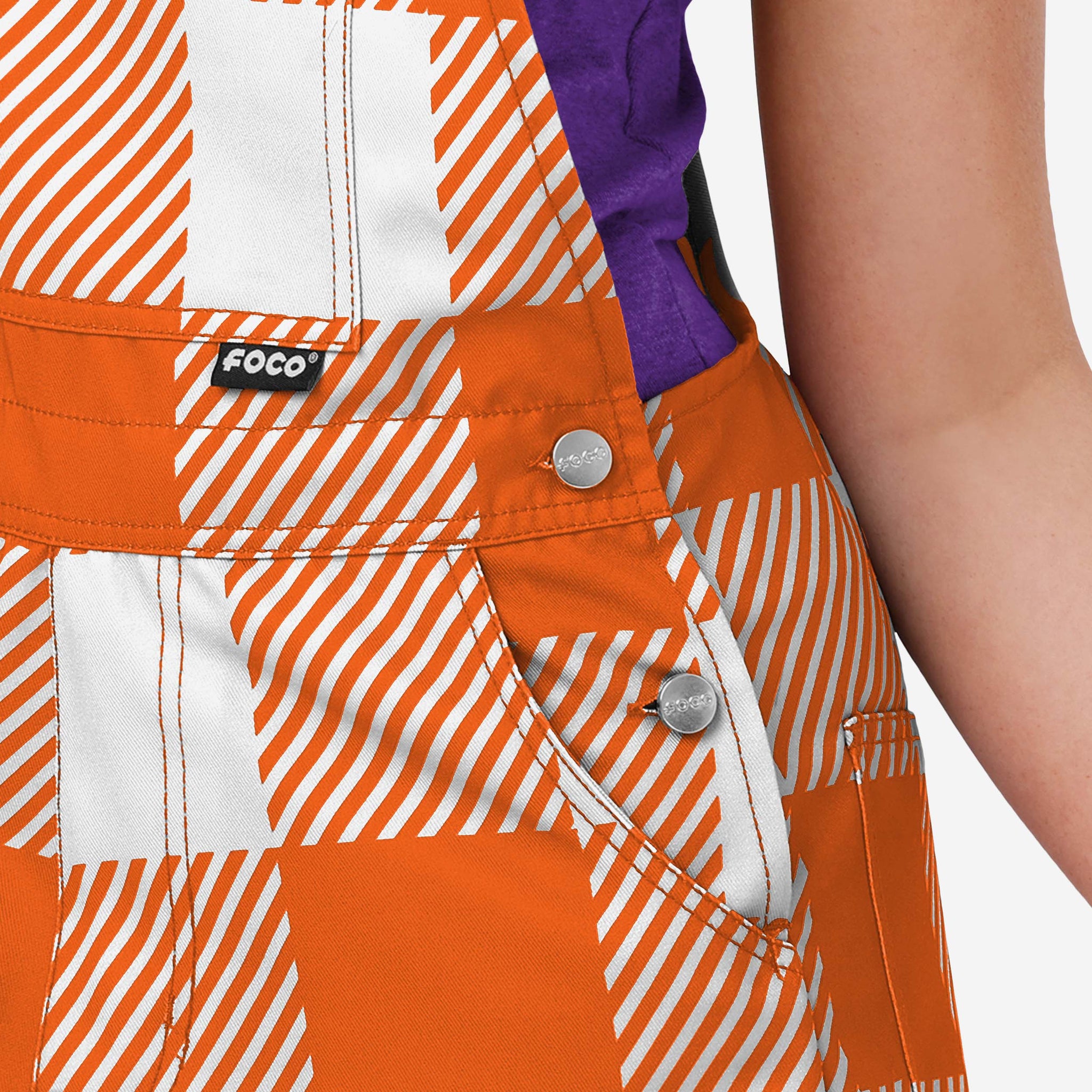 Show your team spirit in these stylish and comfortable Clemson Tigers Women's Plaid Bib Shortalls. With their all-over team-colored design and bold team logo display, these shortalls are the perfect way to show your support for the Clemson Tigers while showing off some buffalo plaid fashion for a rustic, rural feel.