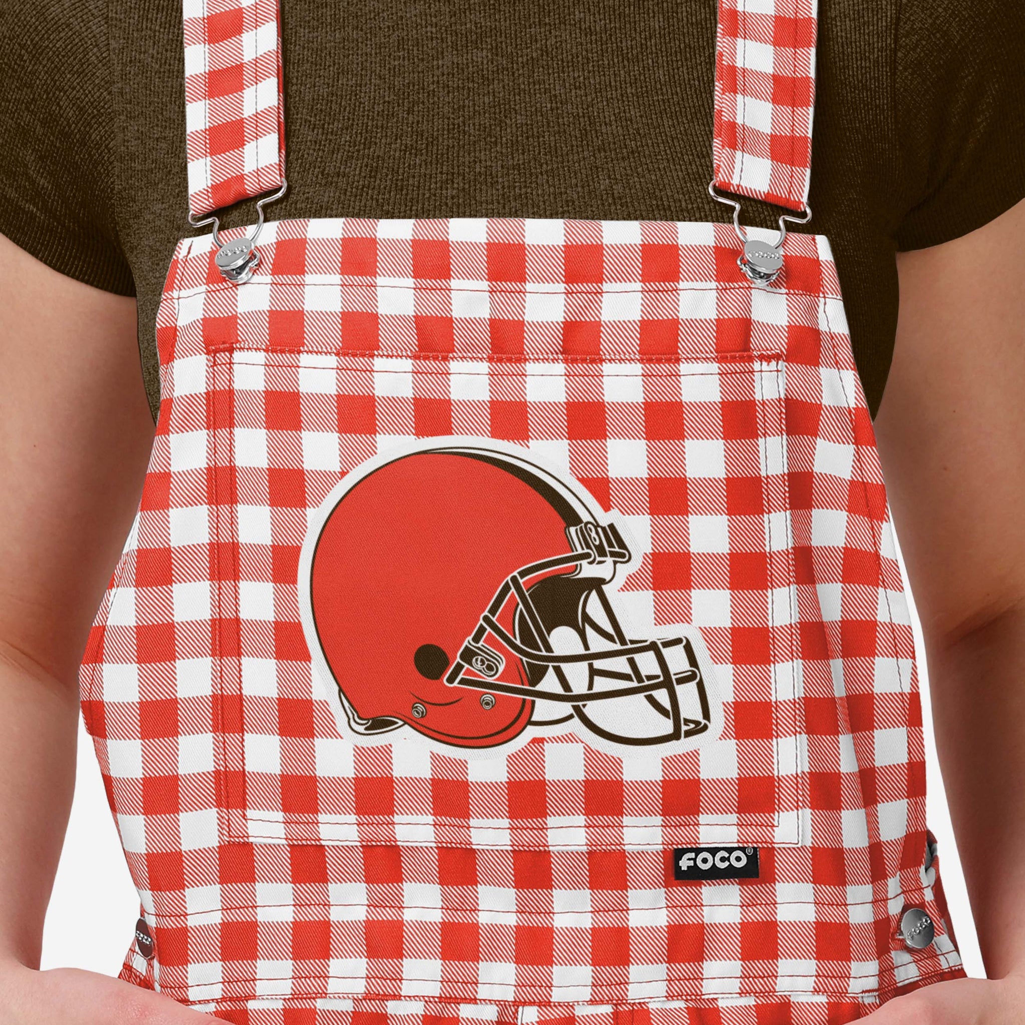 Cleveland Browns Womens Gingham Check Bib Shortalls FOCO XS - FOCO.com