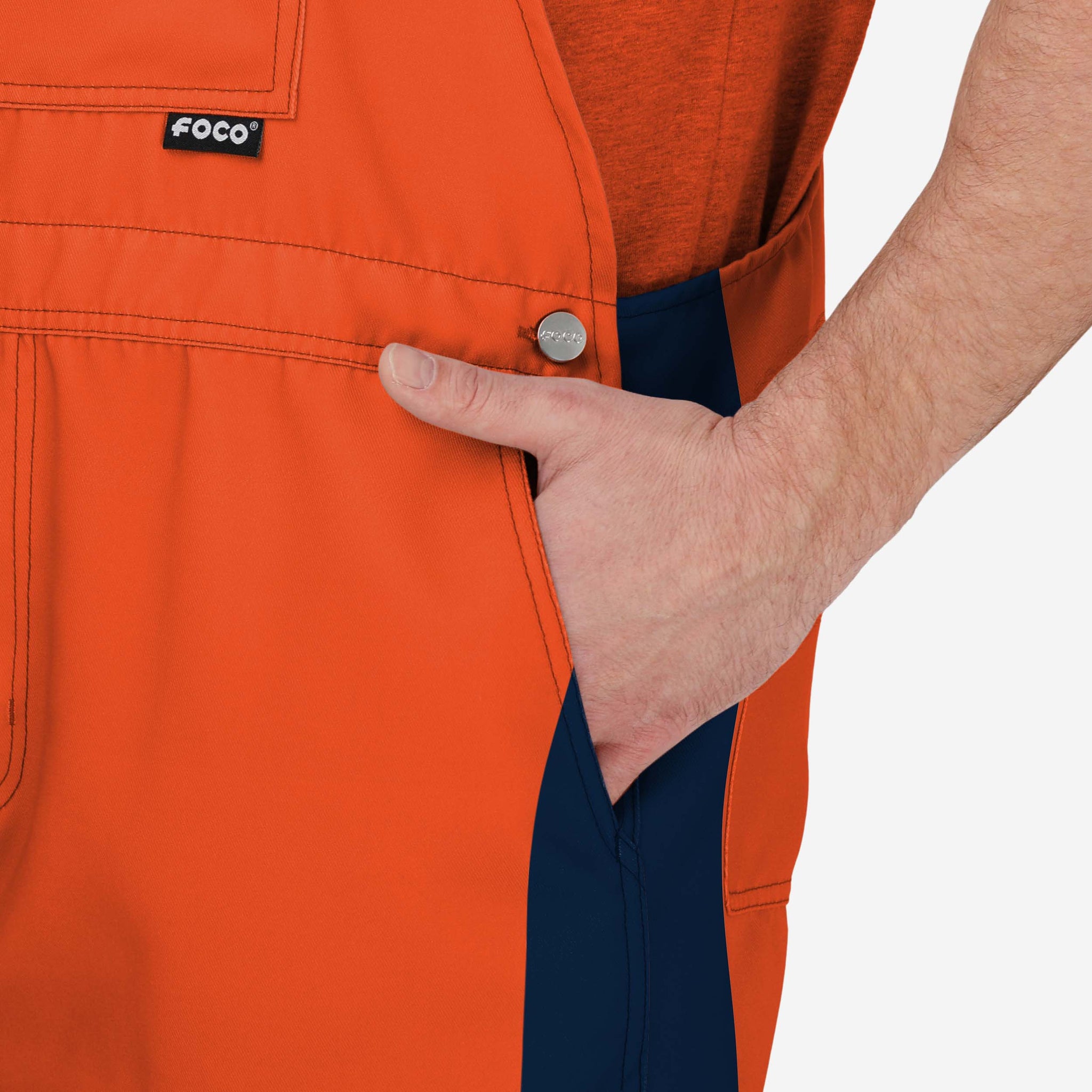 • All-over team-colored design: These shortalls are covered in the official Denver Broncos colors, so you can show your team spirit with pride.