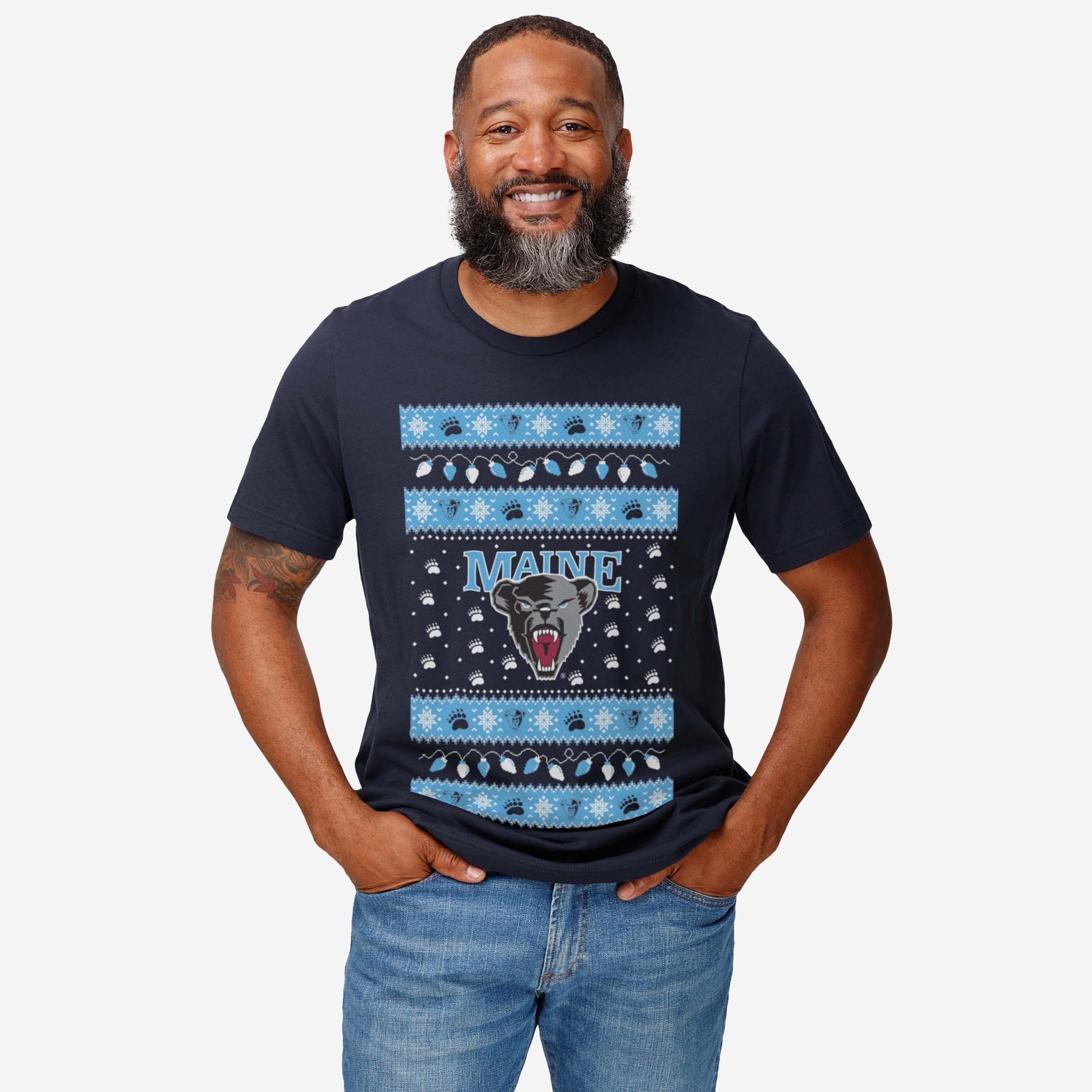 Maine Black Bears Holiday Lights Sweater T-Shirt FOCO S - FOCO.com