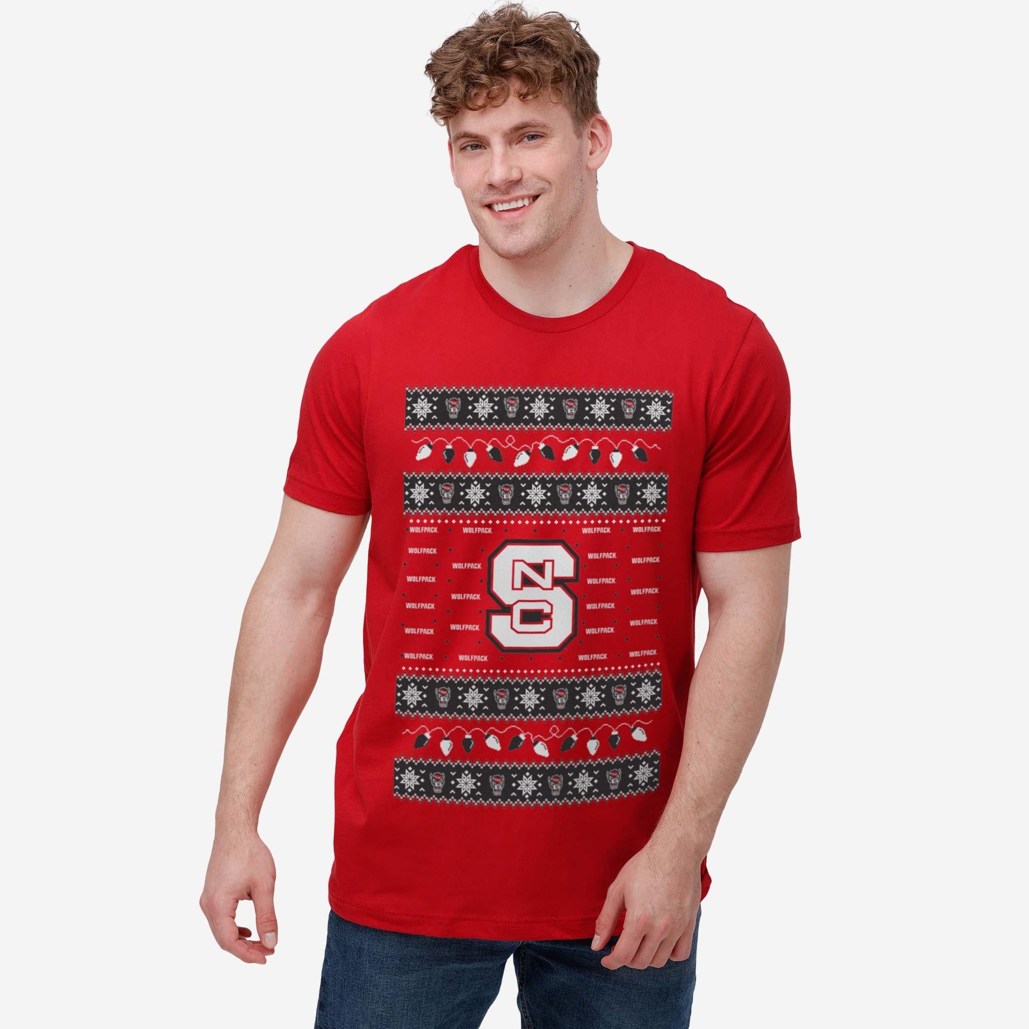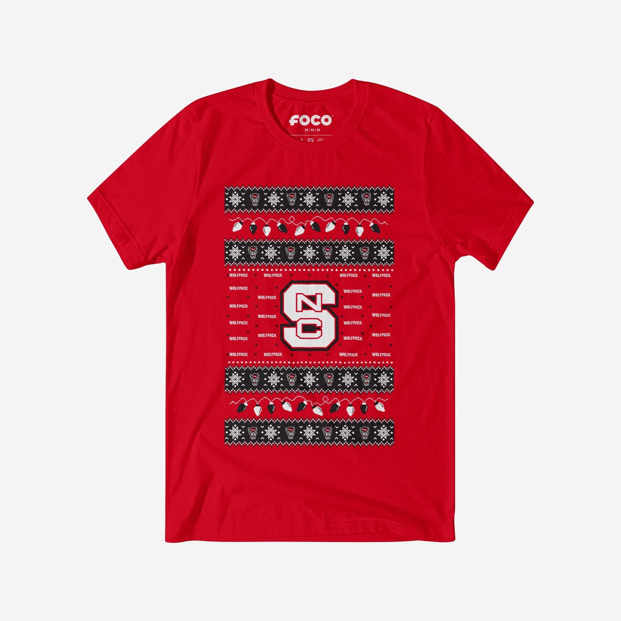 ‘Tis the season for some festive fandom! Make this holiday merry and bright with the NC State Wolfpack Holiday Lights Sweater T-Shirt.