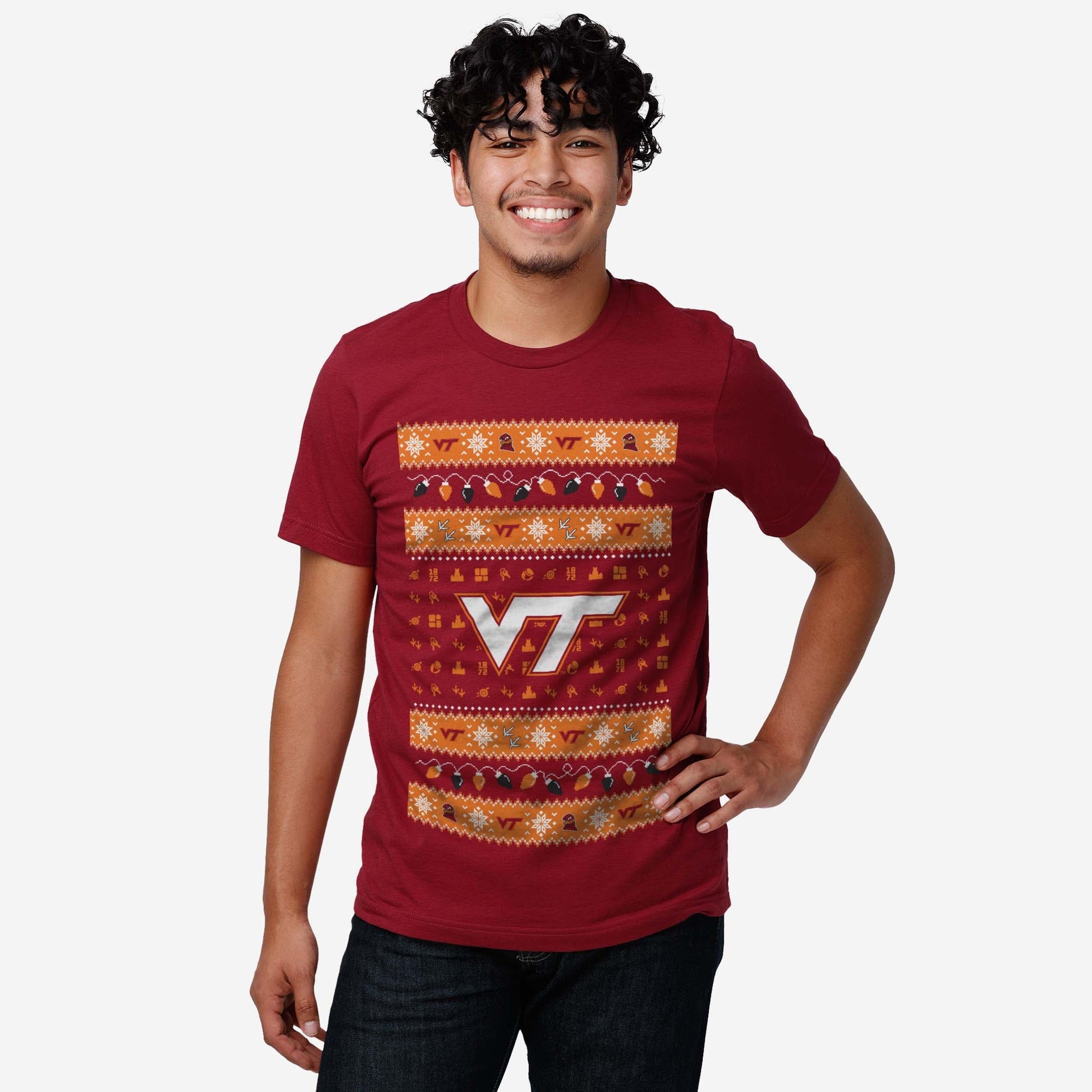 ‘Tis the season for some festive fandom! Make this holiday merry and bright with the Virginia Tech Hokies Holiday Lights Sweater T-Shirt.