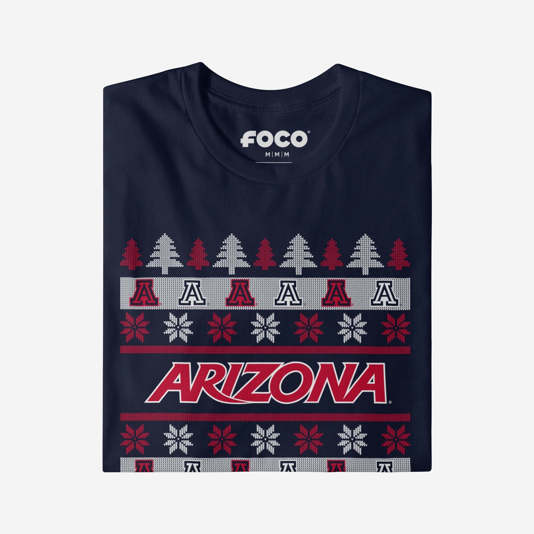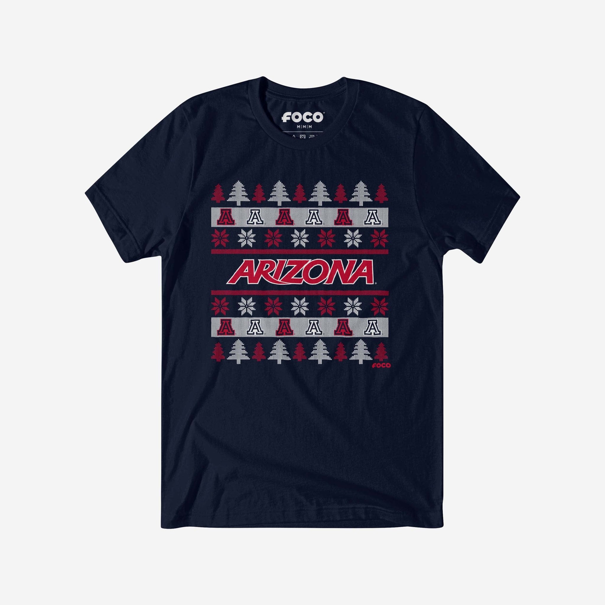 - Festive, team-colored design: This traditional t-shirt shows off the official Arizona Wildcats colors in an all-over team-colored design with winter tree and snowflake accents, so you can show your team spirit with pride.