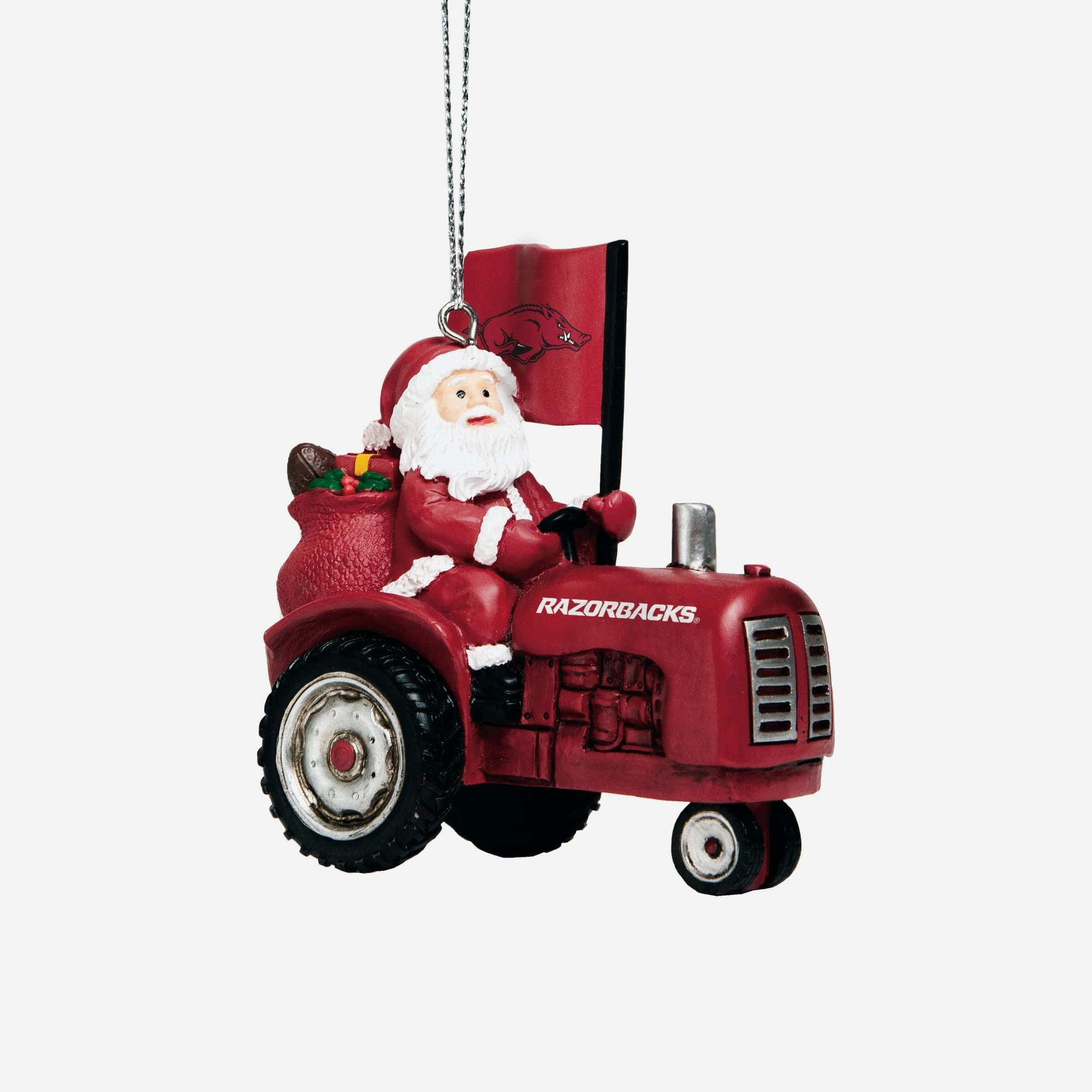 Tired: Santa riding a sleigh. Wired: Santa riding a tractor! Santa's got a fresh crop of goodies coming your way with this Arkansas Razorbacks Santa Riding Tractor Ornament!