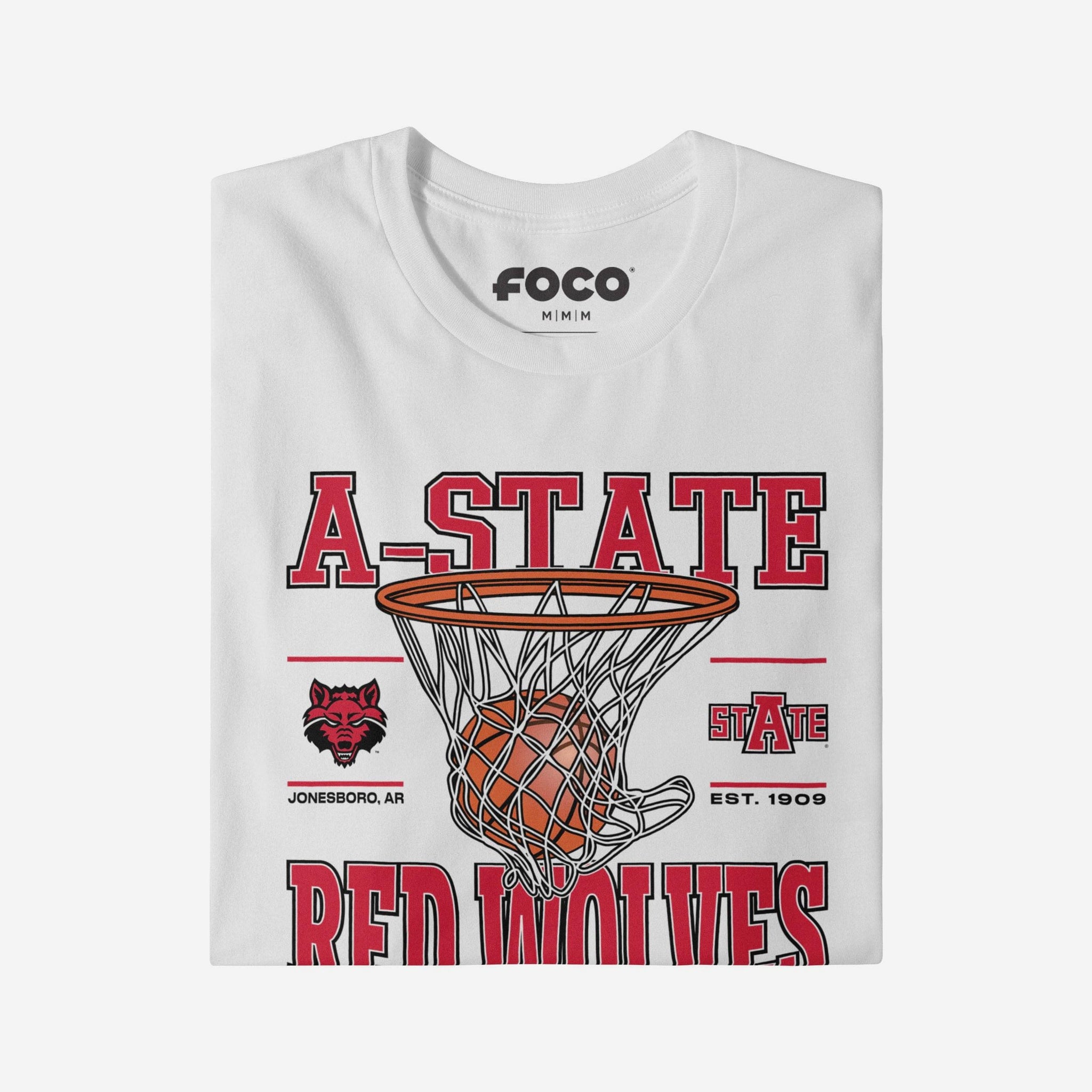 This top features a design that showcases your all-important team colors, a team logo display, a team wordmark name display, year of team establishment, and a basketball swishing through a net display meaning this t-shirt will prove your unmatched dedication to the Arkansas State Red Wolves when you're at the game or watching at home. In other words, this graphic tee is about to be your new favorite teammate.