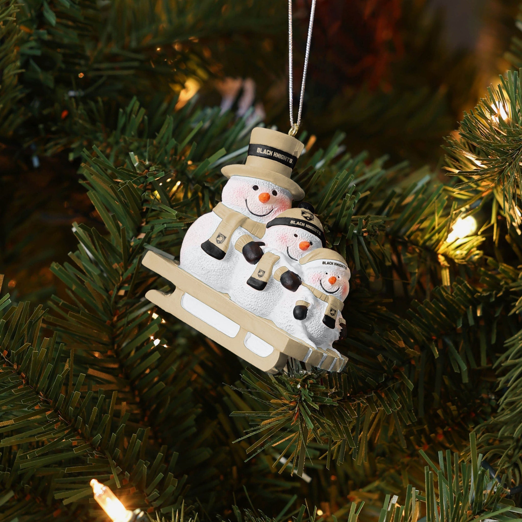Meet three snowman friends that won't melt when you bring them inside! Introducing the Army Black Knights Sledding Snowmen Ornament!