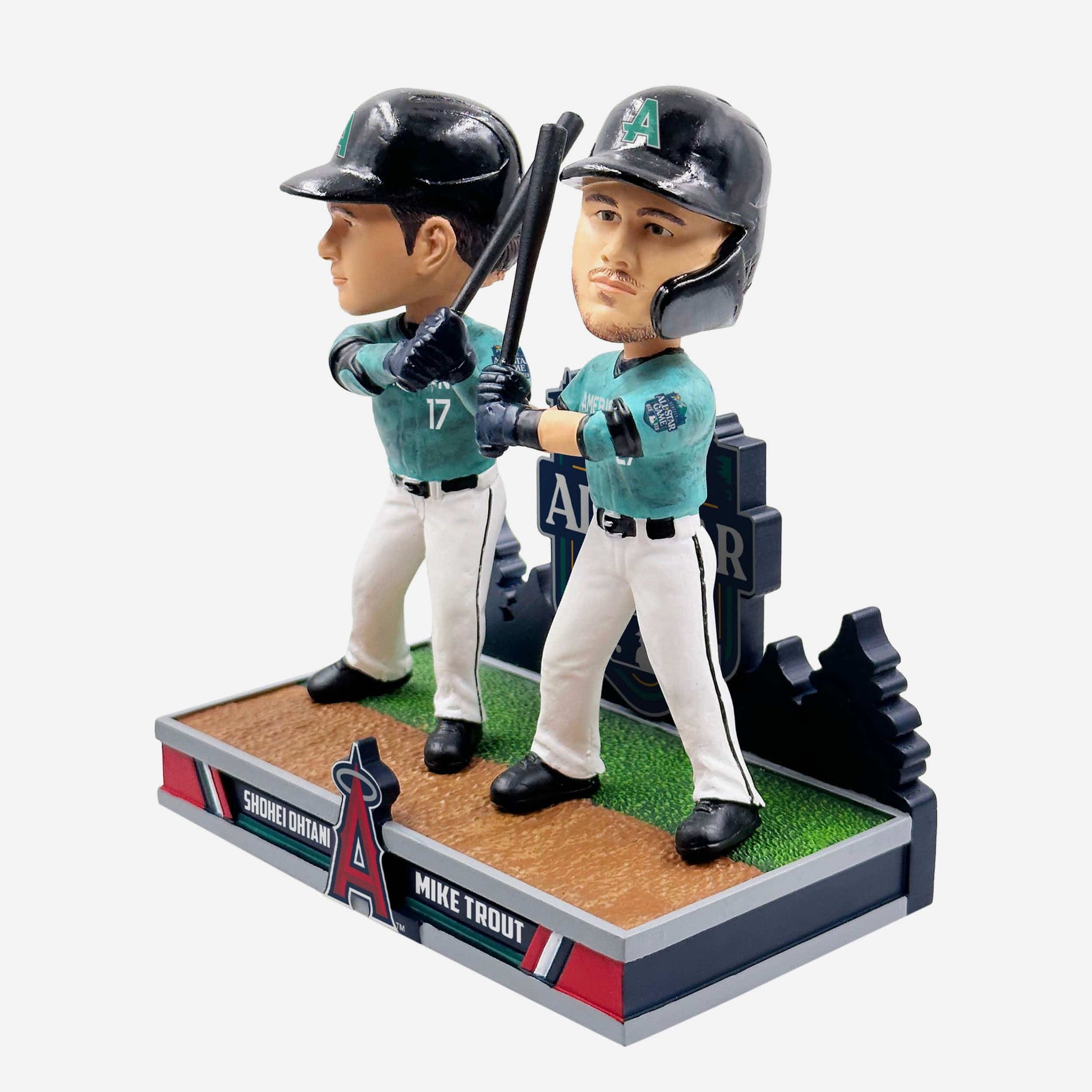 Say "Halo" to the Angels' All-Star duo. Bring the super-talented tag team of Shohei Ohtani and Mike Trout to your lineup with the Los Angeles Angels 2023 MLB All-Star Mini Bobblehead Scene.