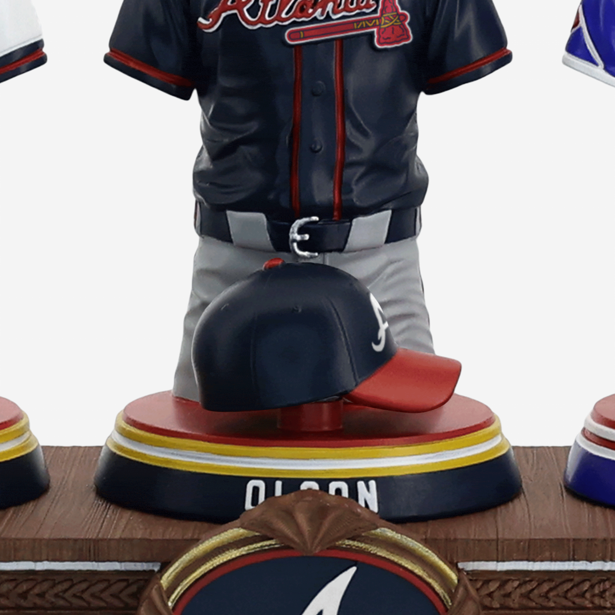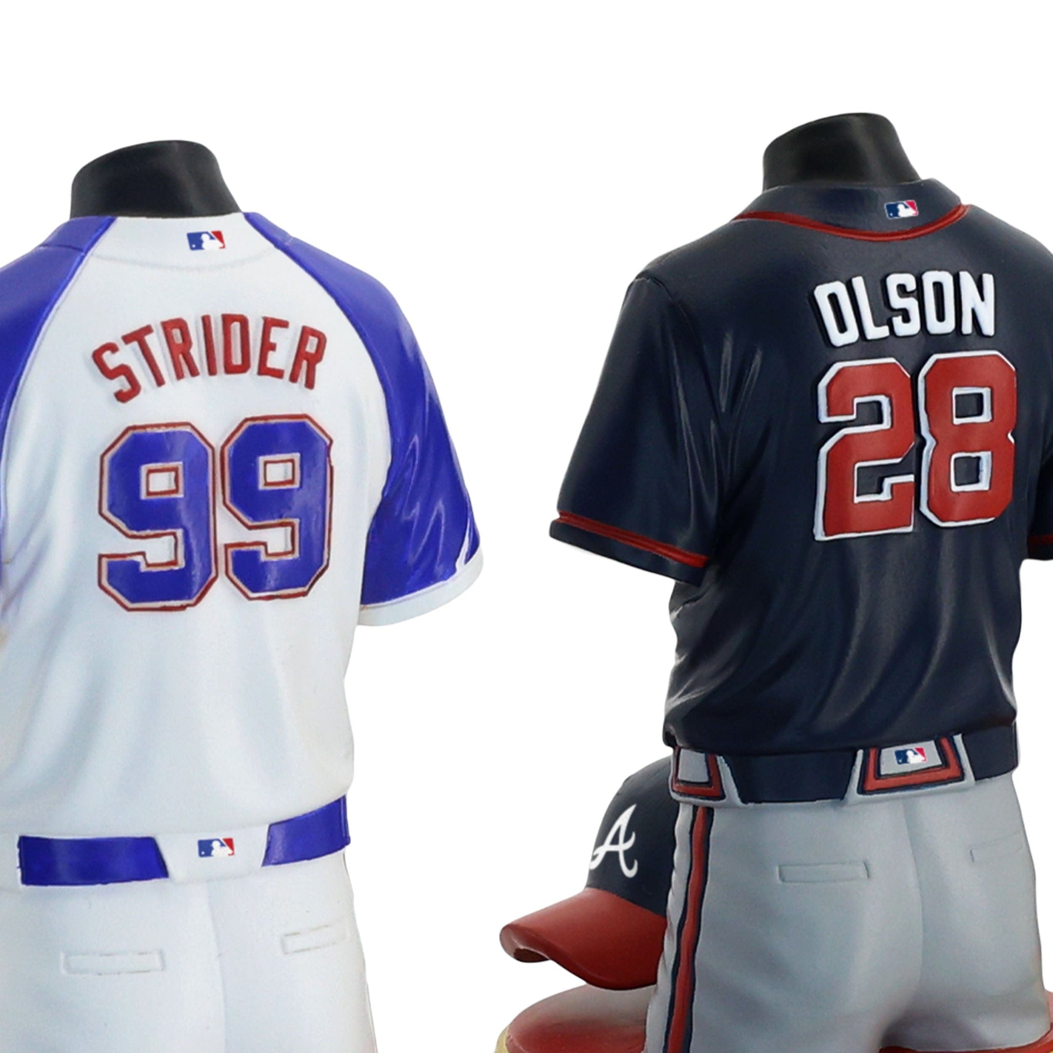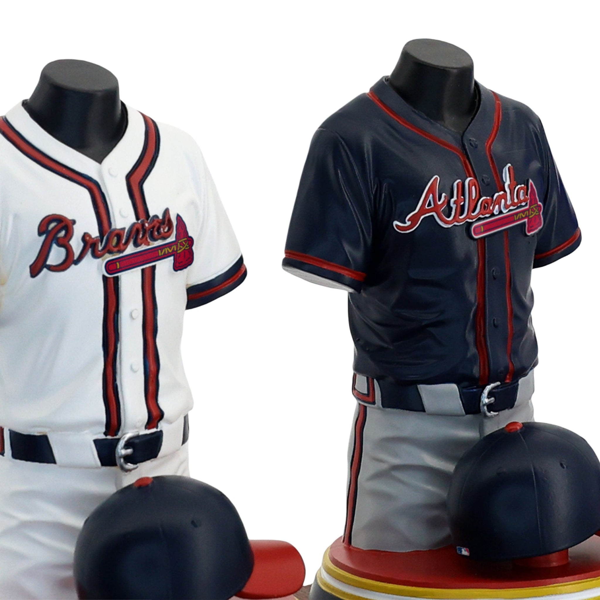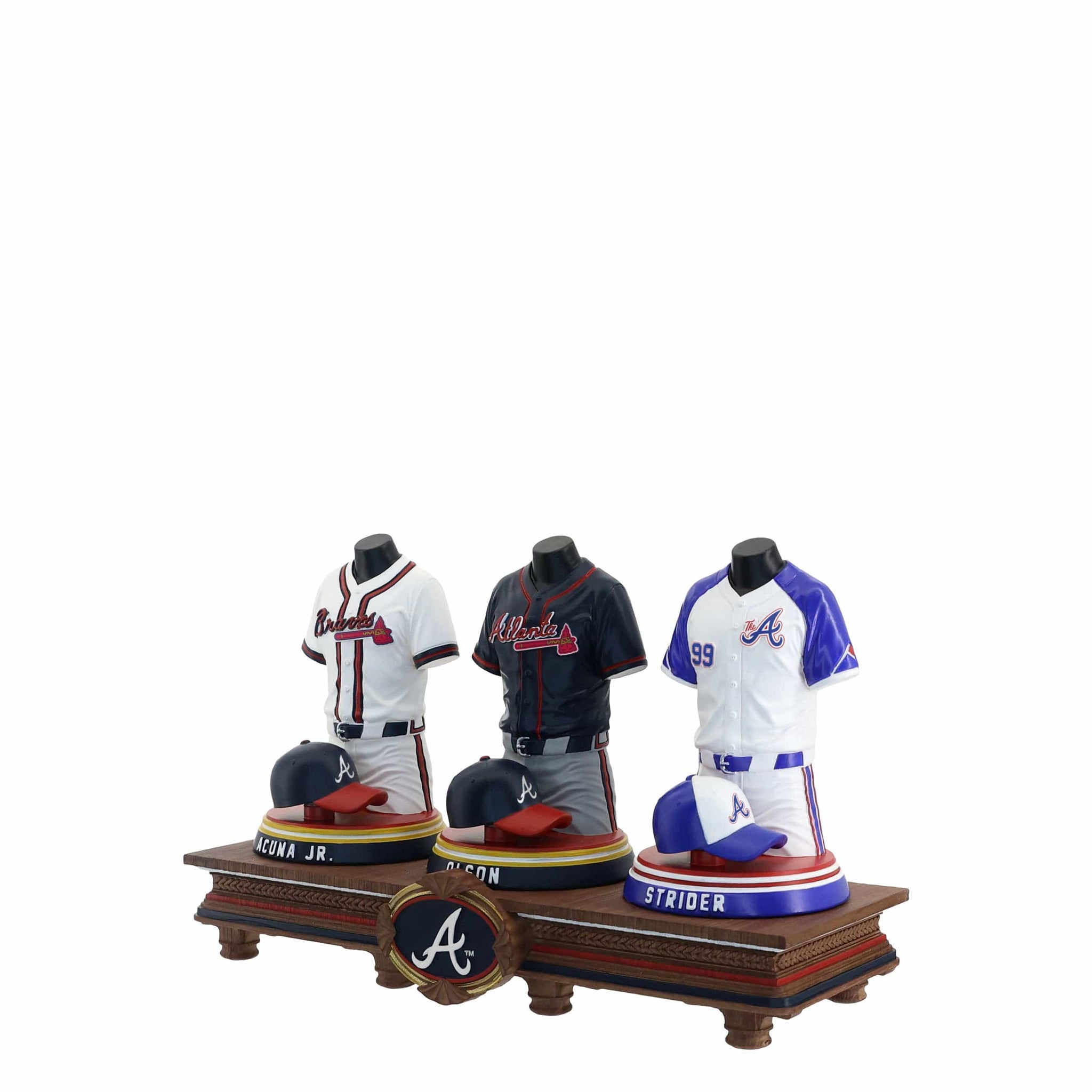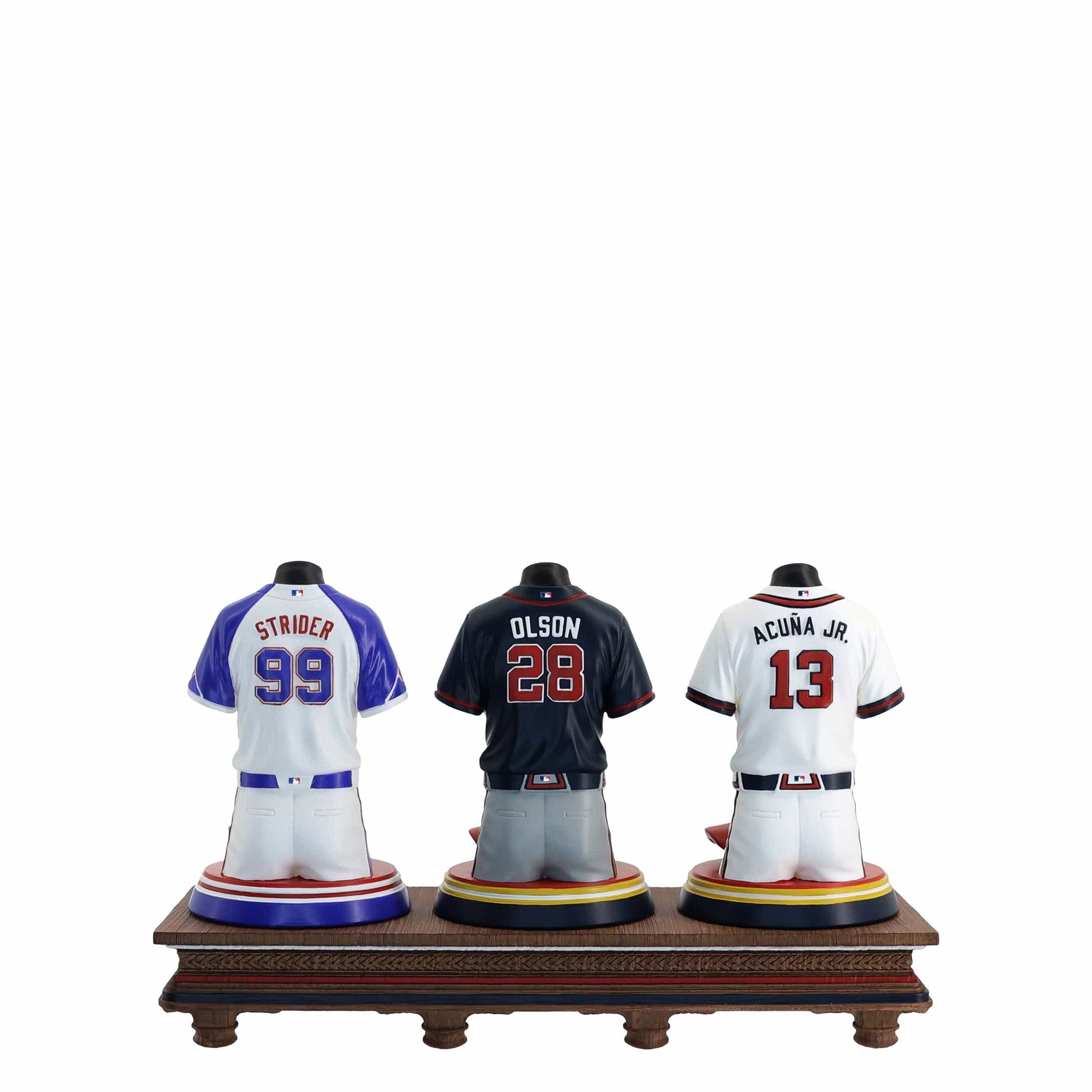 - Portrays Ronald Acuna Jr, Spencer Strider, and Matt Olson player jersey busts with matching caps, combining for one epic display of team spirit