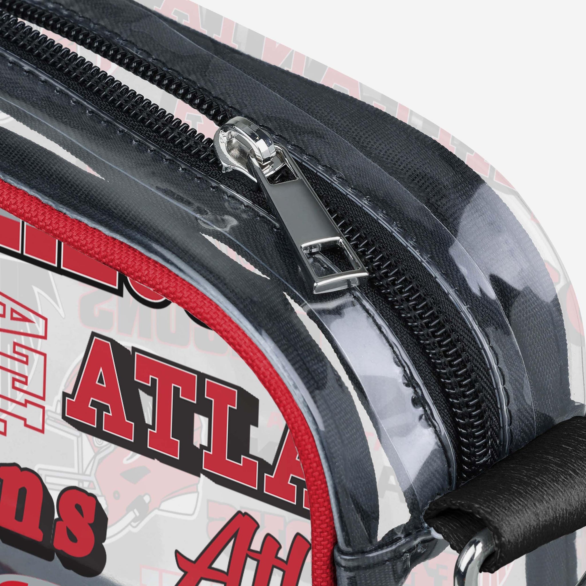 Over your shoulder and off to the game. Whether you're running errands on the town or running the tailgate in the parking lot, this Atlanta Falcons Repeat Retro Print Clear Crossbody Bag is the perfect way to carry the team like never before.