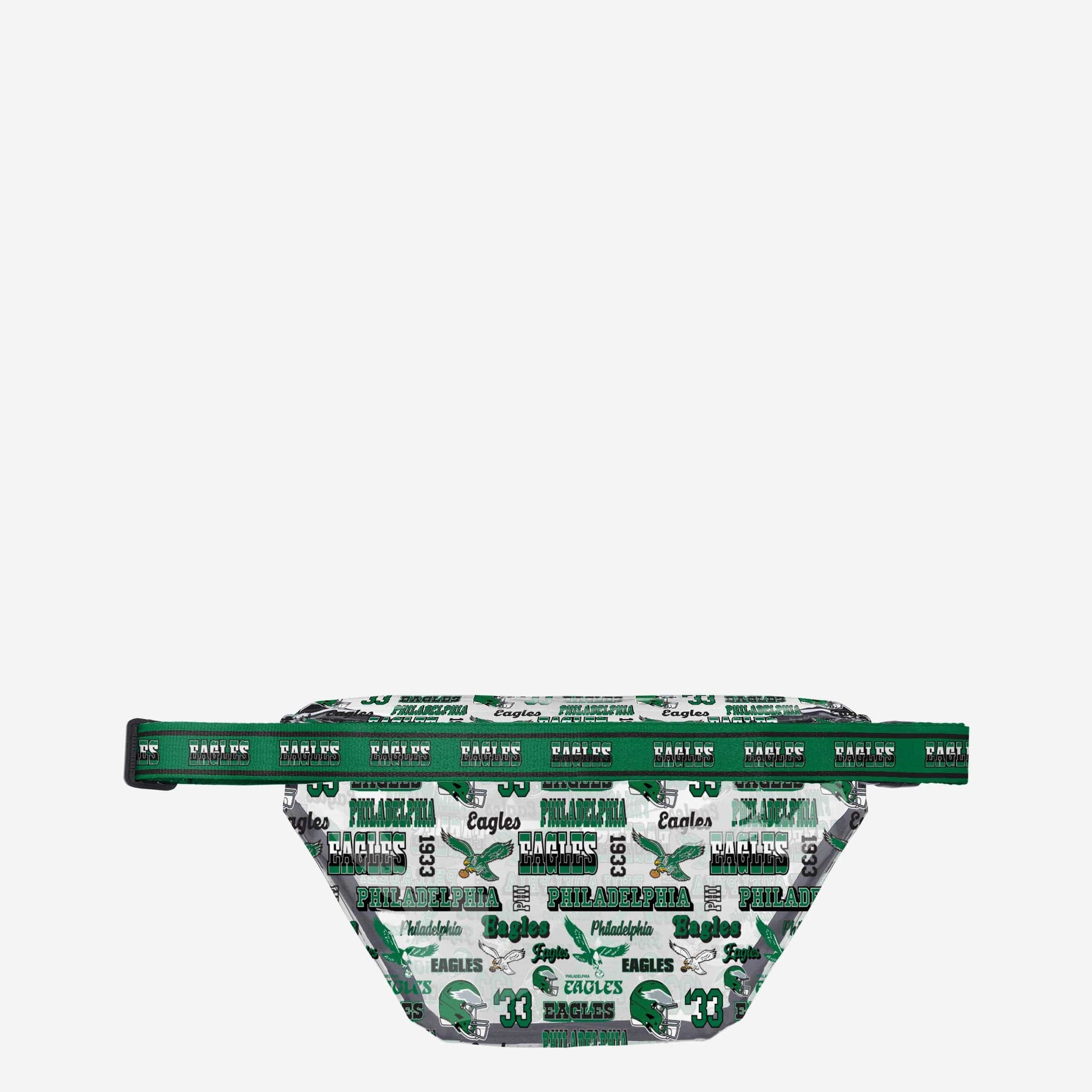 - Repeat Philadelphia Eagles current and retro team logo and wordmark displays on the fanny pack, in case there were any doubts where your allegiances lie