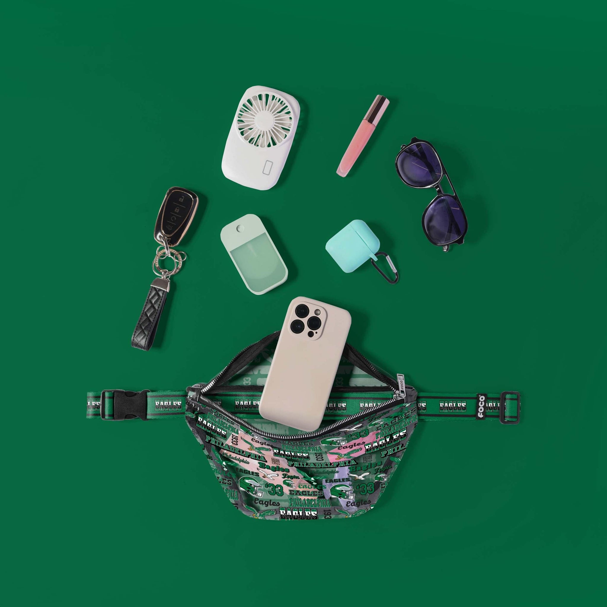 Looking for a fashionable bag for your fan fit? The answer is clear. You’ll have everything you need to be your best on gameday and every day with the Philadelphia Eagles Repeat Retro Print Clear Fanny Pack.