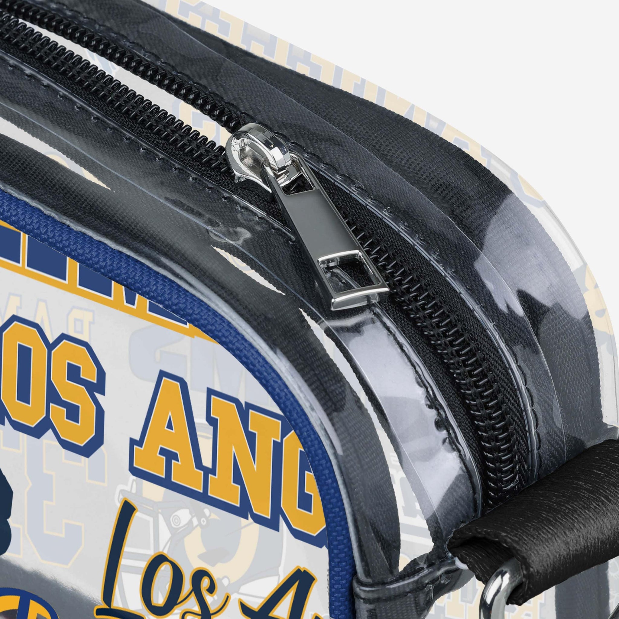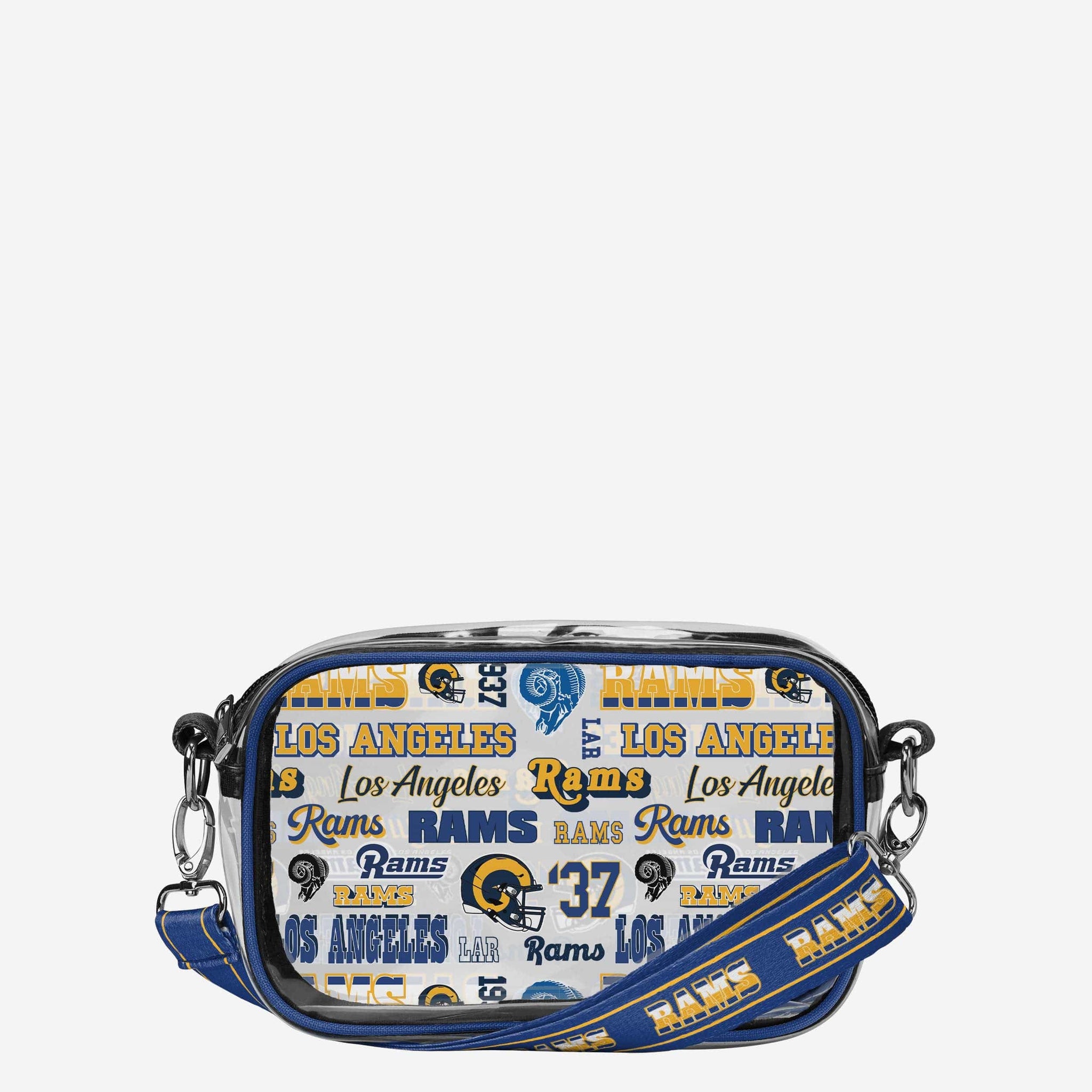 Over your shoulder and off to the game. Whether you're running errands on the town or running the tailgate in the parking lot, this Los Angeles Rams Repeat Retro Print Clear Crossbody Bag is the perfect way to carry the team like never before.