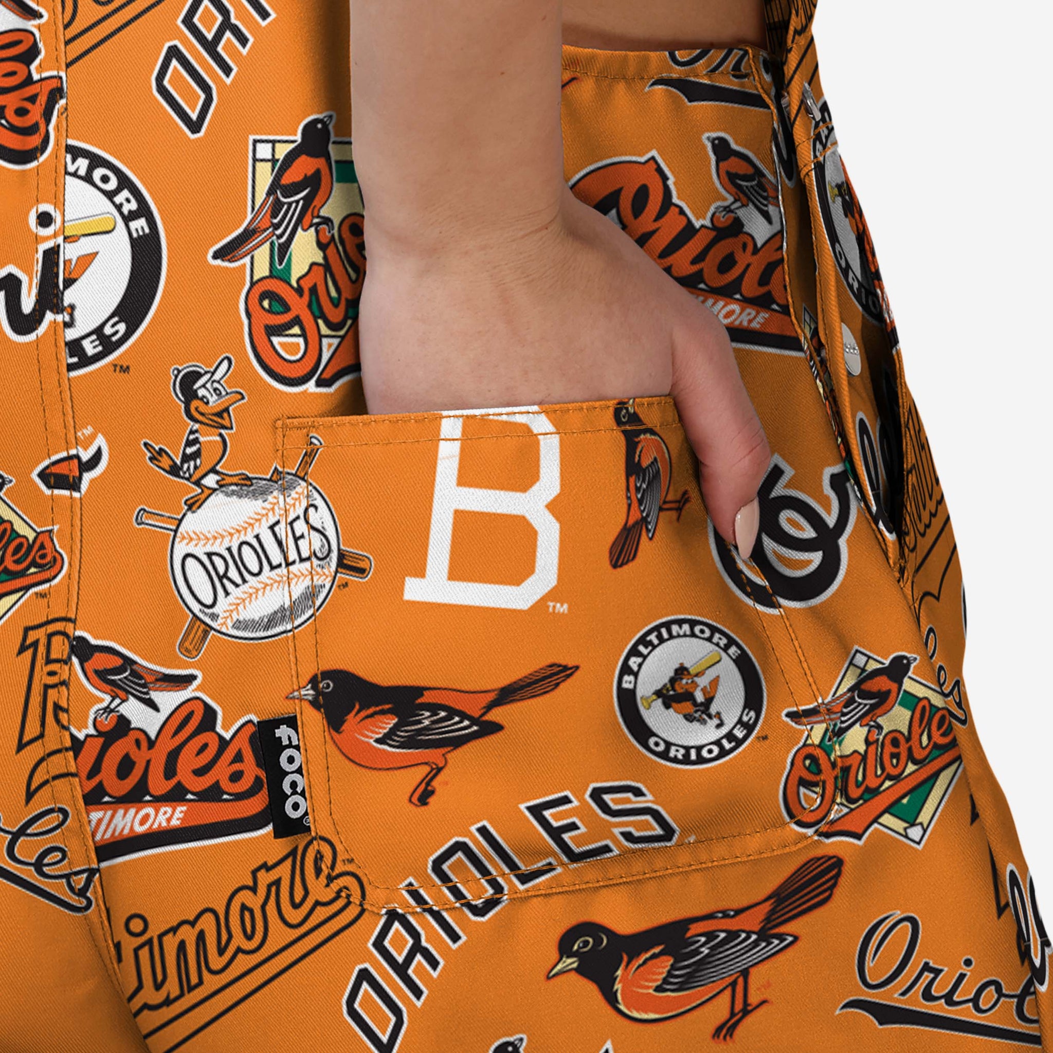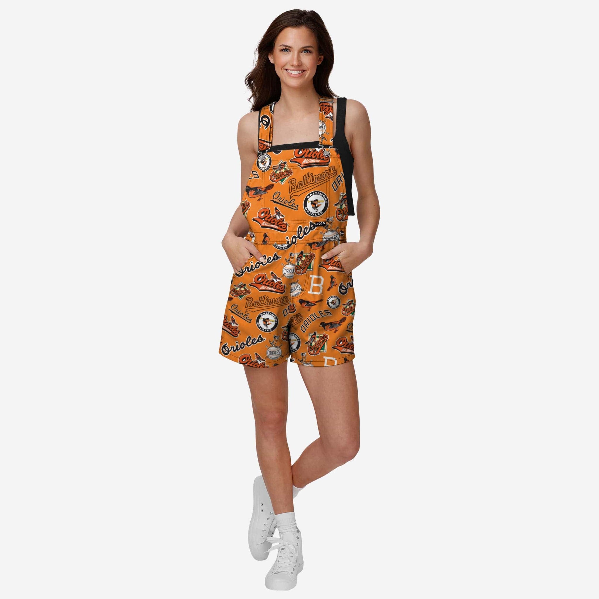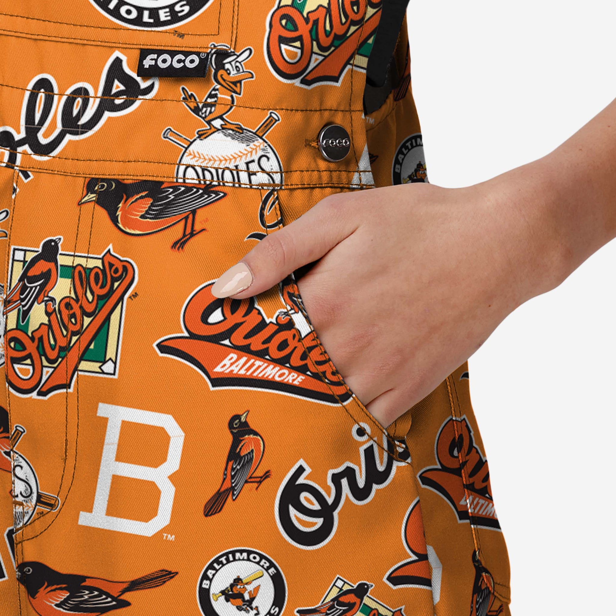 Baltimore Orioles Womens Historic Print Bib Shortalls FOCO - FOCO.com