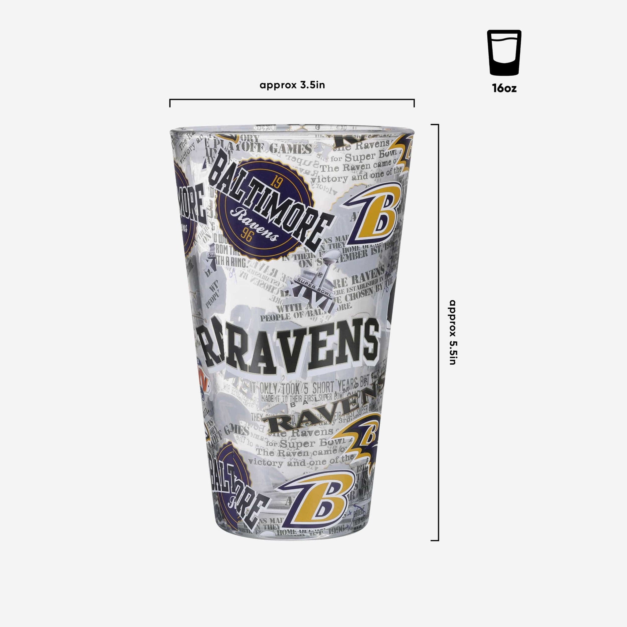 A blast from the past served in one fine pint. Introducing the Baltimore Ravens Historic Print Pint Glass. Let's make history.