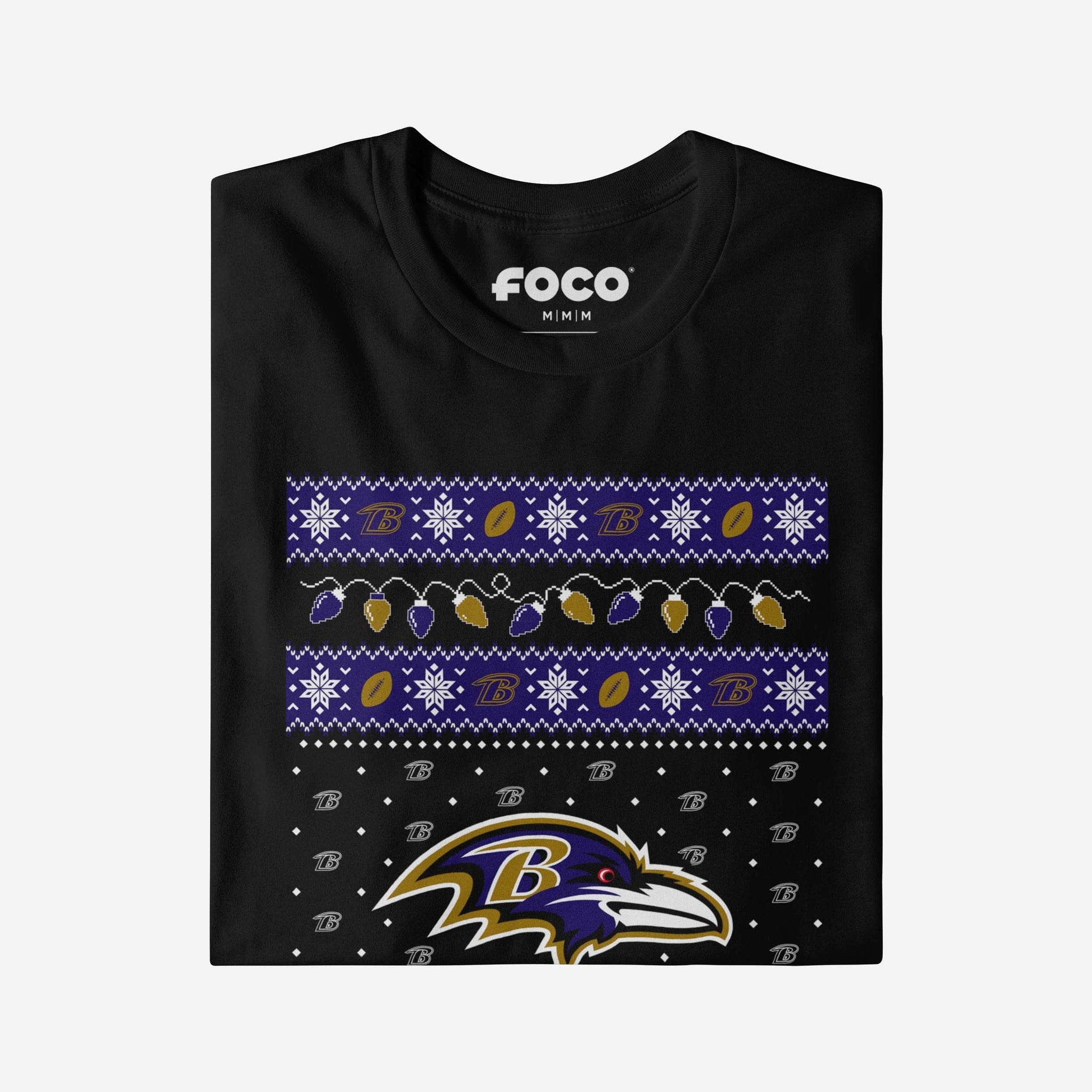 Santa's making a list, and he’s checking it twice! Prove that you’re the nicest fan around with the Baltimore Ravens Holiday Lights Sweater Long Sleeve T-Shirt.