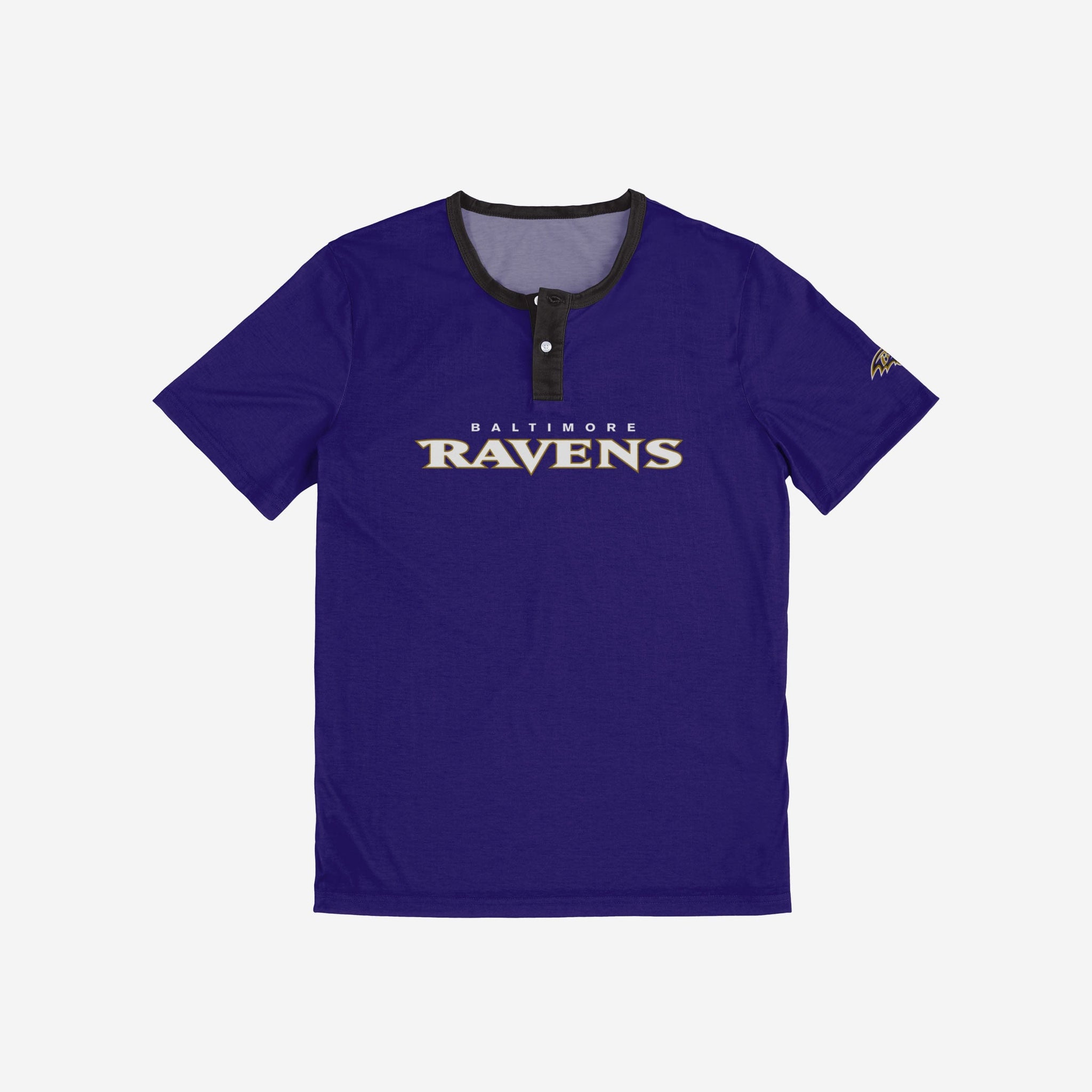 Baltimore Ravens Solid Wordmark Short Sleeve Henley FOCO S - FOCO.com