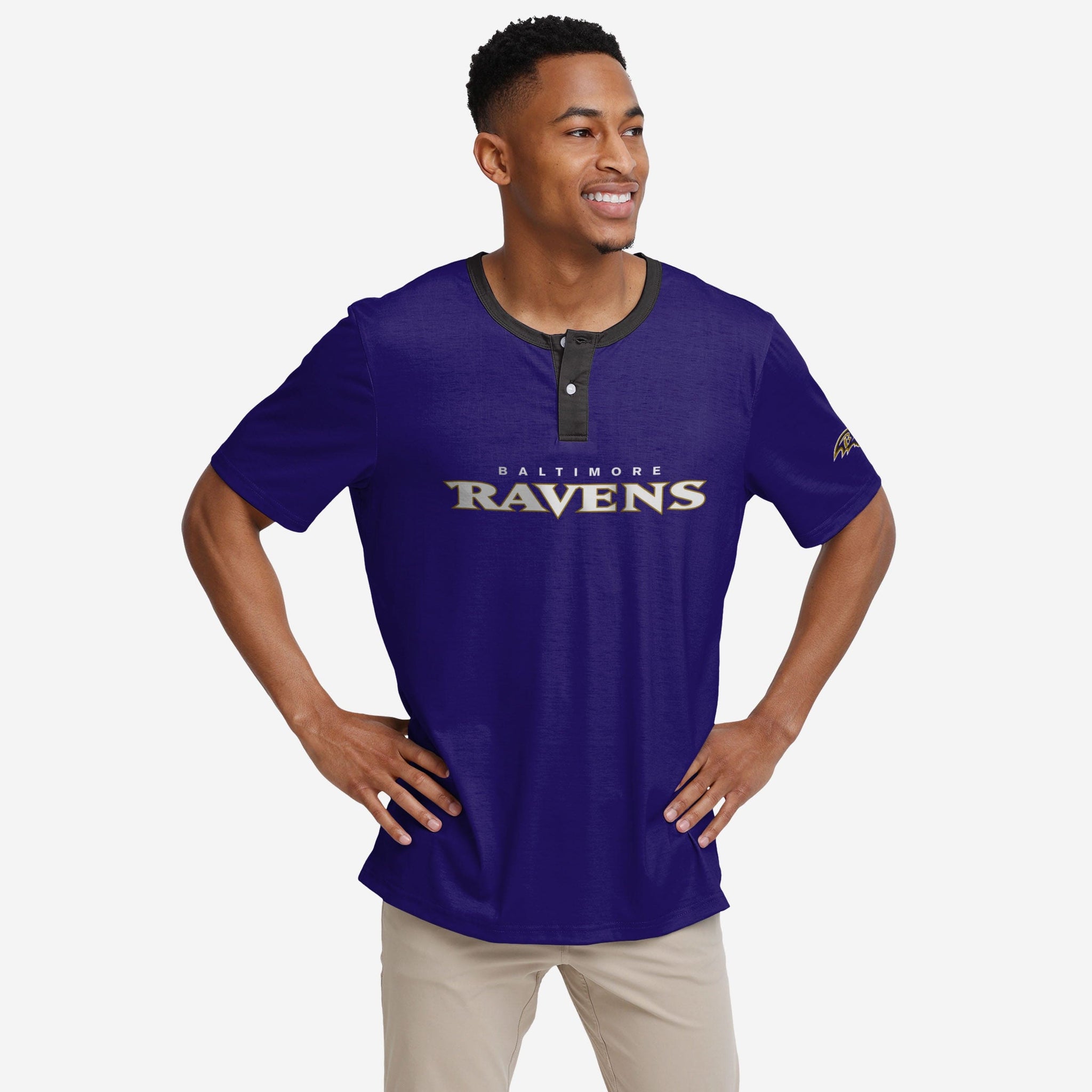 Word(mark) up! Change the fan fashion game with this Baltimore Ravens Solid Wordmark Short Sleeve Henley.