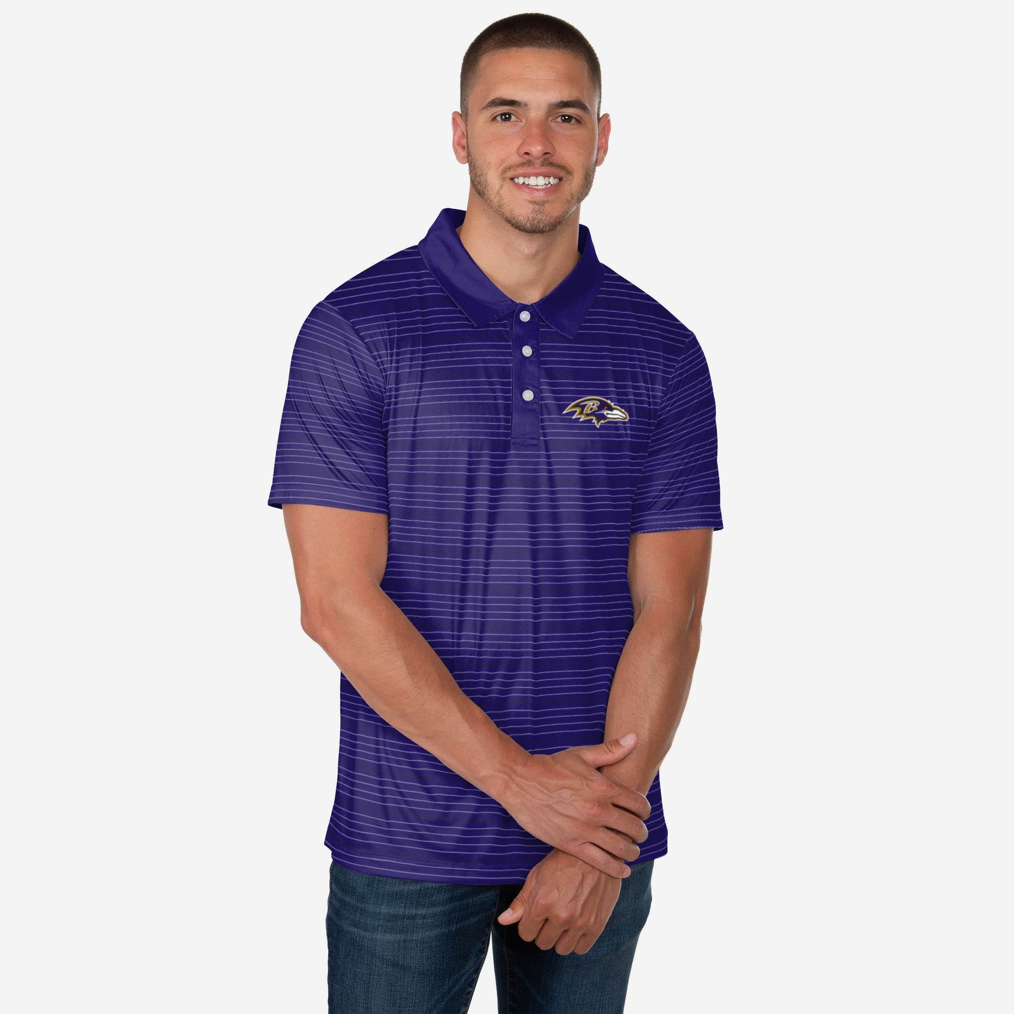 Your favorite jersey doesn't adhere to your company's dress code? Bummer. Try this Baltimore Ravens Striped Polyester Polo instead. When someone tells you to dress to impress, THIS is what they're referring to.