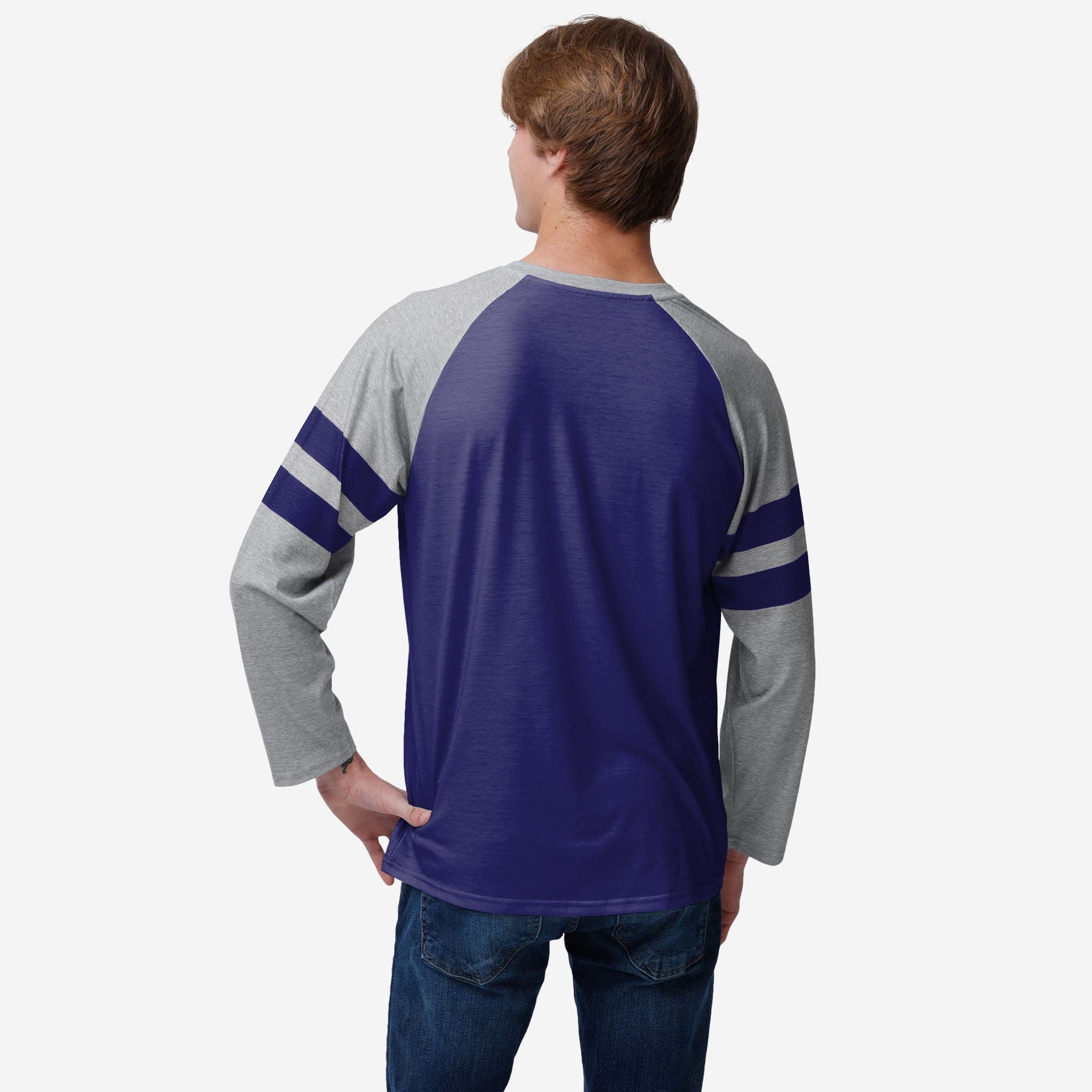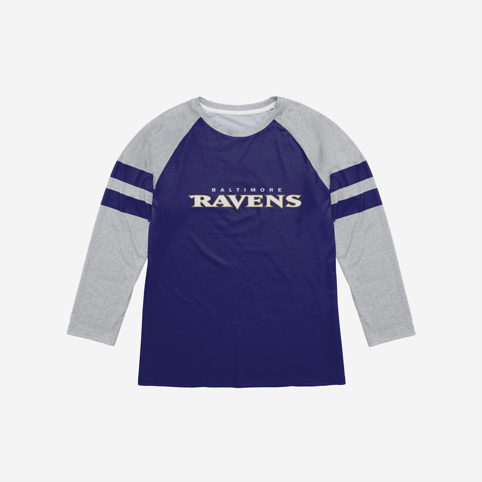 Gearing up for gameday? You're gonna want to rock this raglan. Make sure your sacred team colors are boldly on display with this Baltimore Ravens Team Stripe Wordmark Raglan T-Shirt.