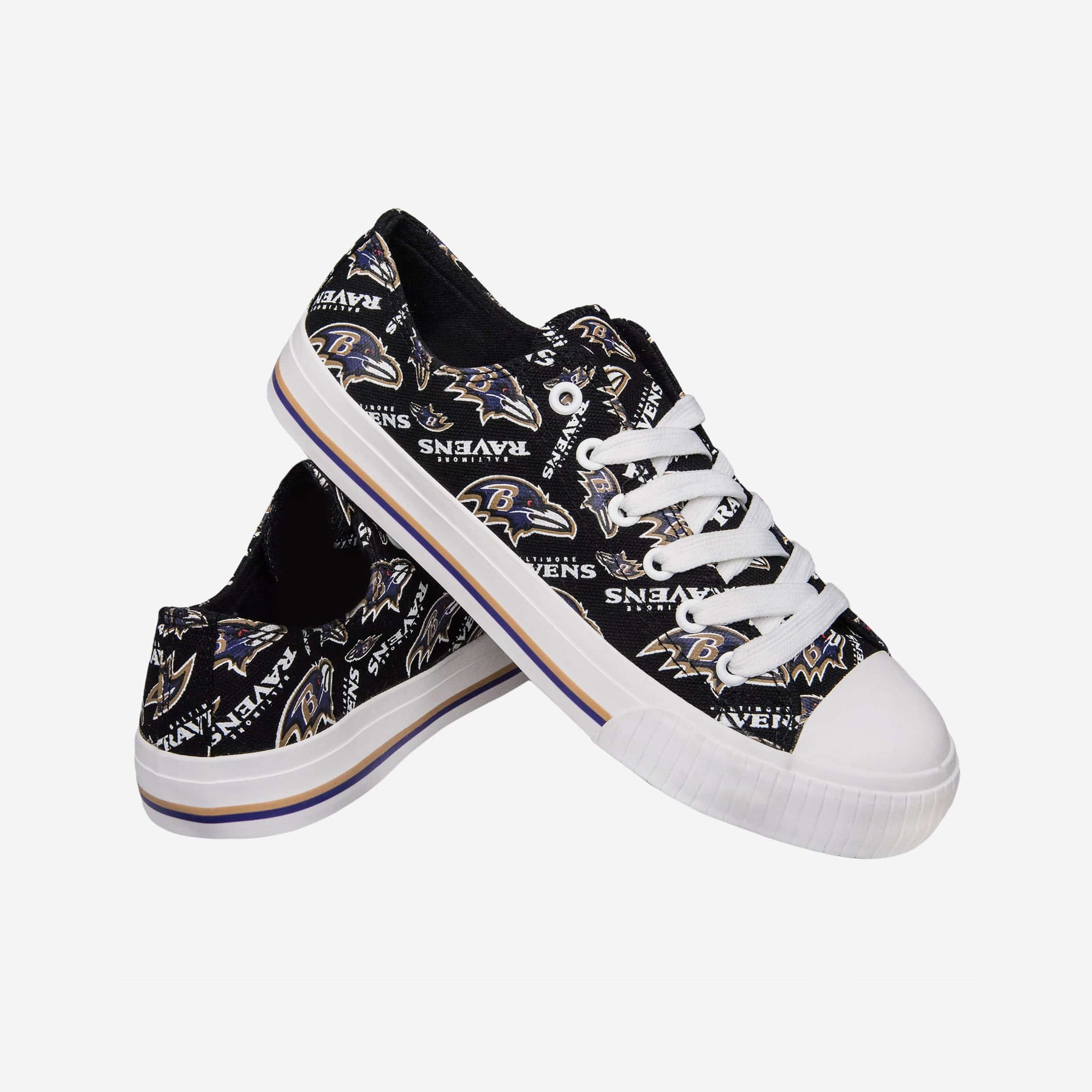 The only thing better than kicking your feet up and relaxing is kicking your feet up and relaxing while your feet are wearing these Baltimore Ravens Womens Low Top Repeat Print Canvas Shoes. That way, you can relax AND let everyone know who the realest fan in the room is.