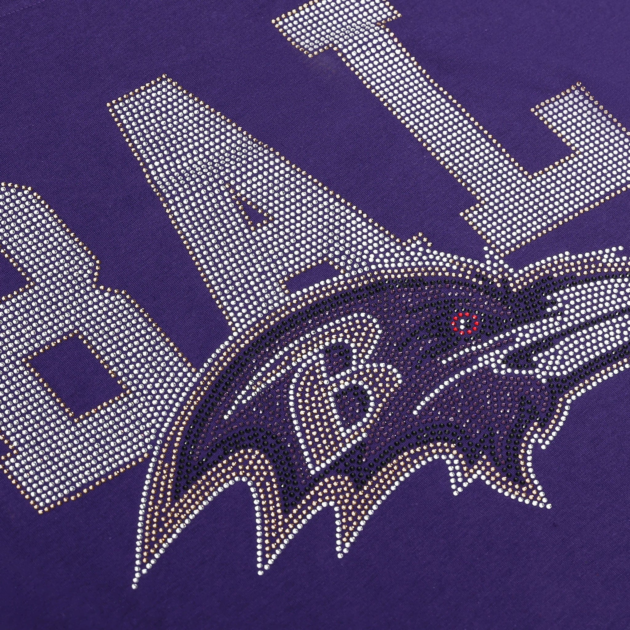 Victory looks good on you, and so will this Baltimore Ravens Womens Rhinestone Logo Crop Top. With its flattering cropped fit and dazzling team pride, this top is your go-to for standing out in the crowd and showing up for your squad in style.