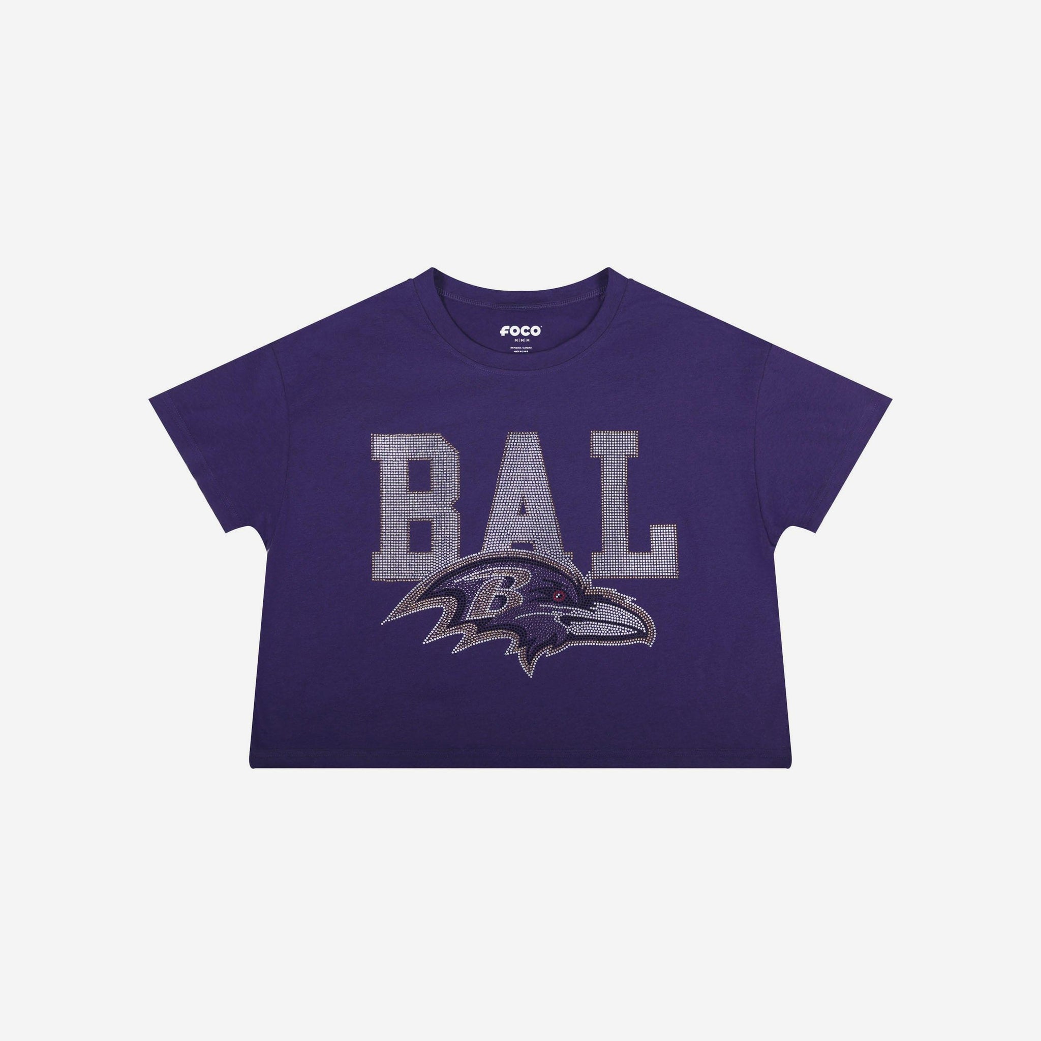 Baltimore Ravens Womens Rhinestone Logo Crop Top FOCO S - FOCO.com