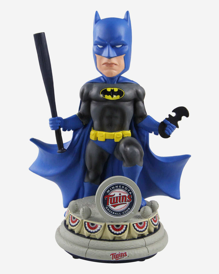 Batman? Holding a baseball bat? That's, like, bat-ception. Step up to the plate and hit a grand slam straight out of Gotham with this Minnesota Twins Batman DC Bobblehead.