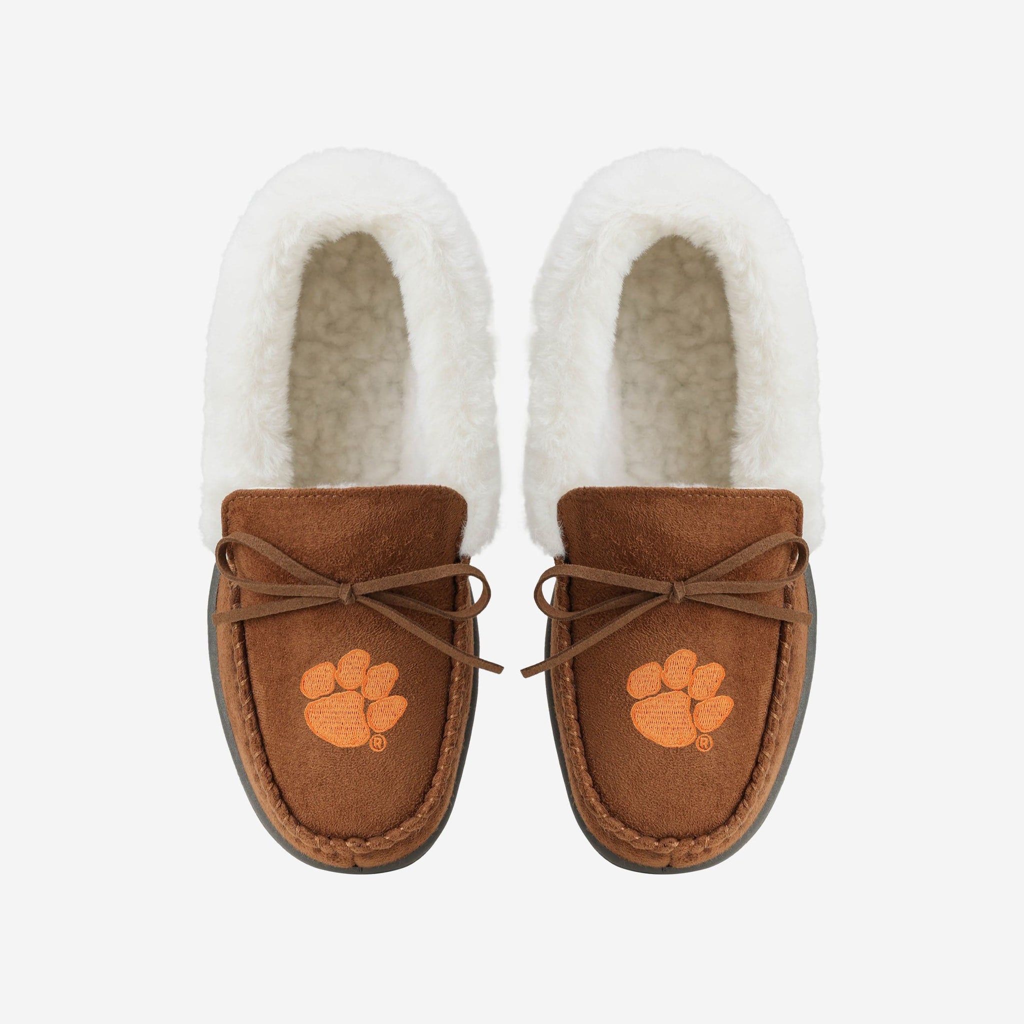 When you rocc these moccs, you can be an MVP on the couch watching TV! Introducing the Clemson Tigers Women's Tan Moccasin Slippers!
