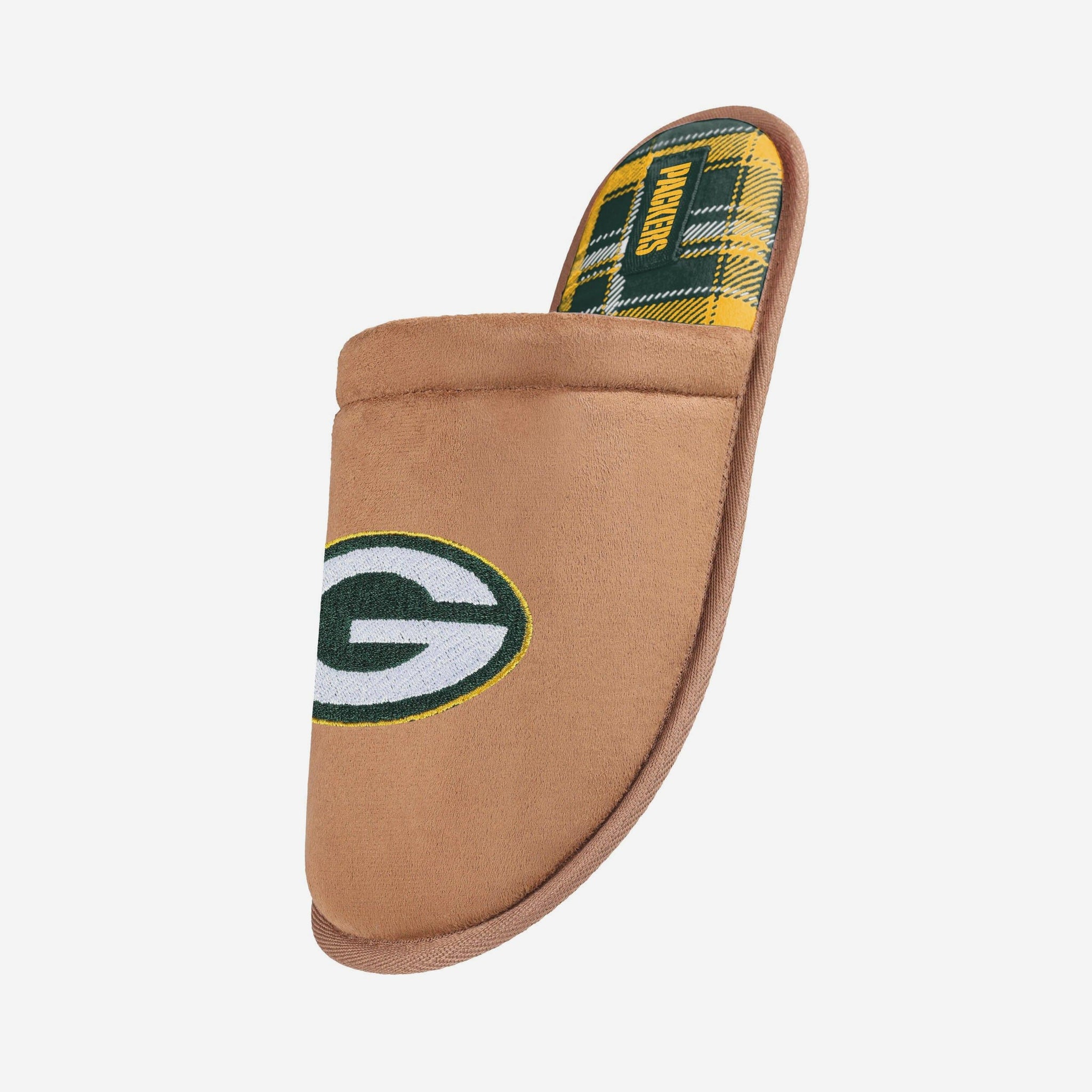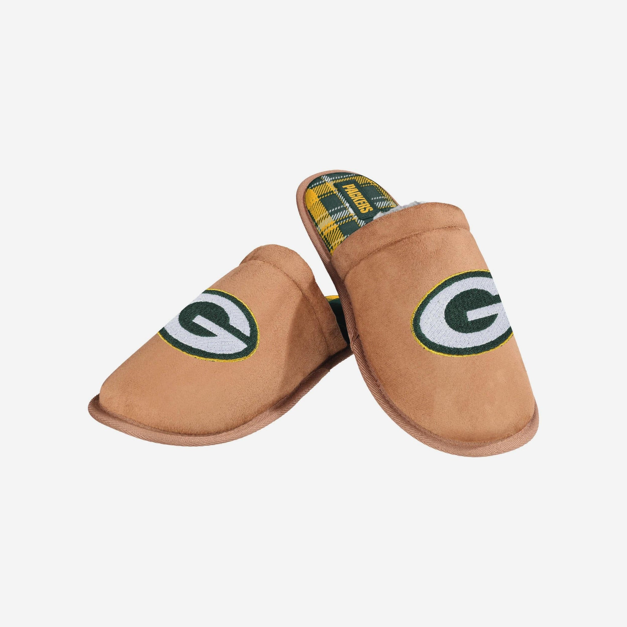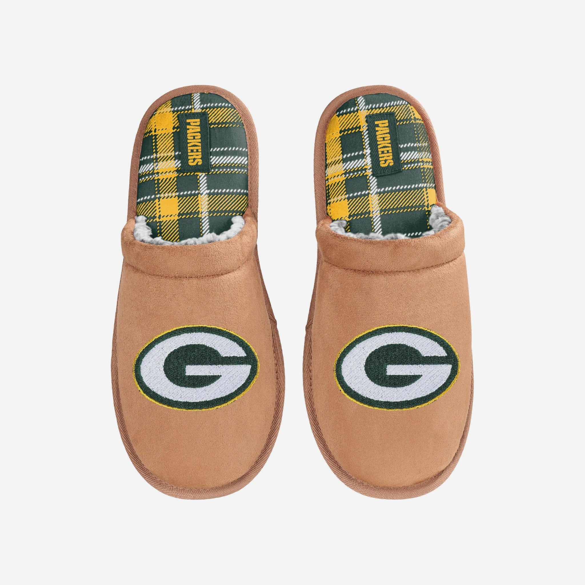 Gameday comfort just got a major upgrade. Slide into cozy fandom and kick back like a champion with the Green Bay Packers Flannel Lined Brown Suede Scuff Slippers.