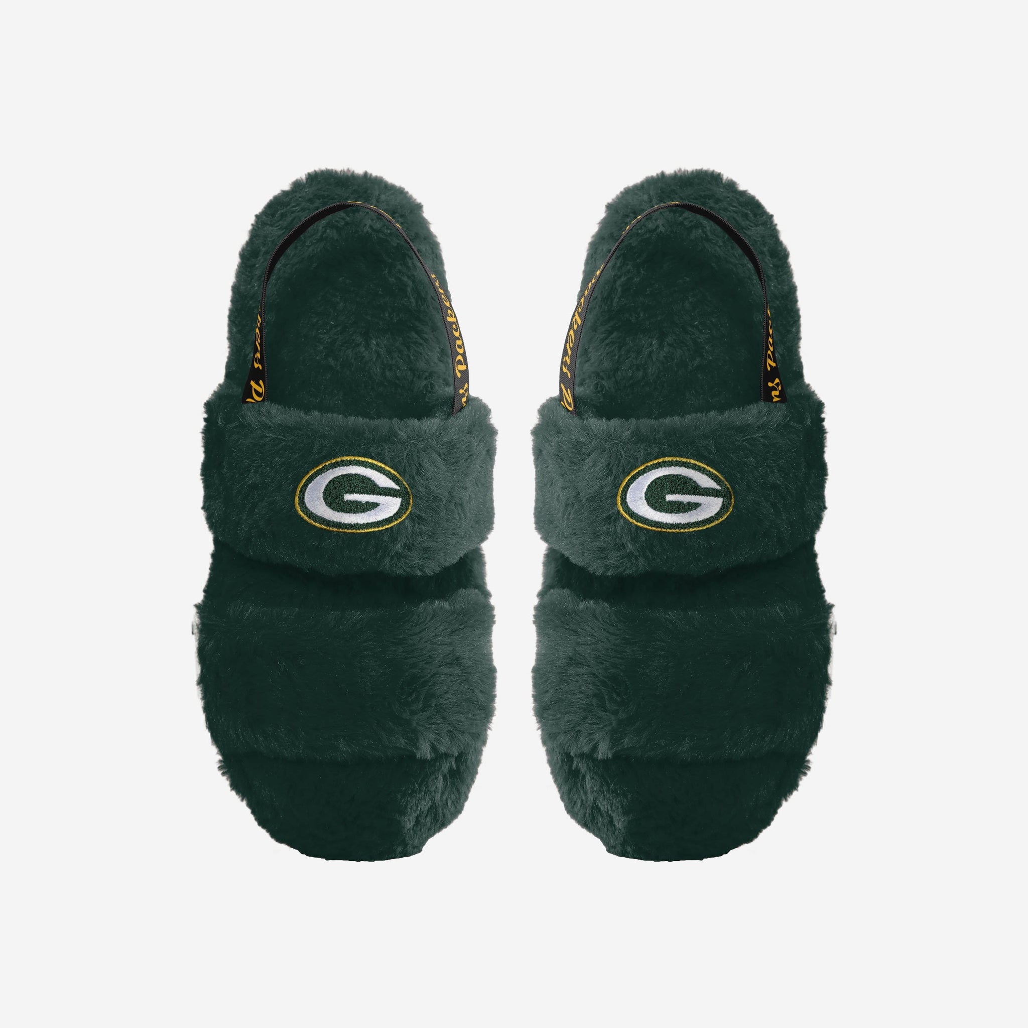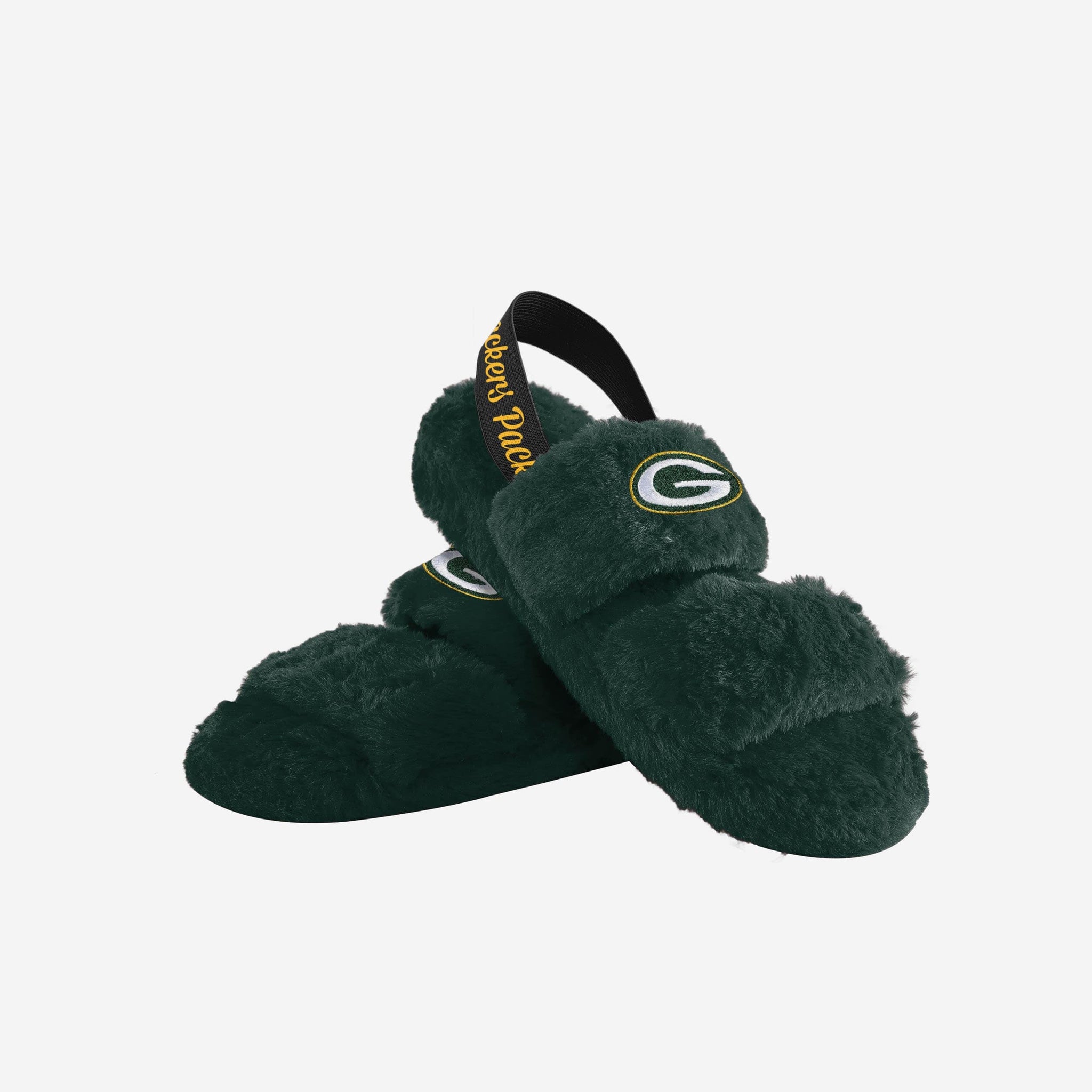 One, two, three, FUR! Watch the big game in style and comfort by rocking these Green Bay Packers Women's Heel Strap Wordmark Fur Slides!