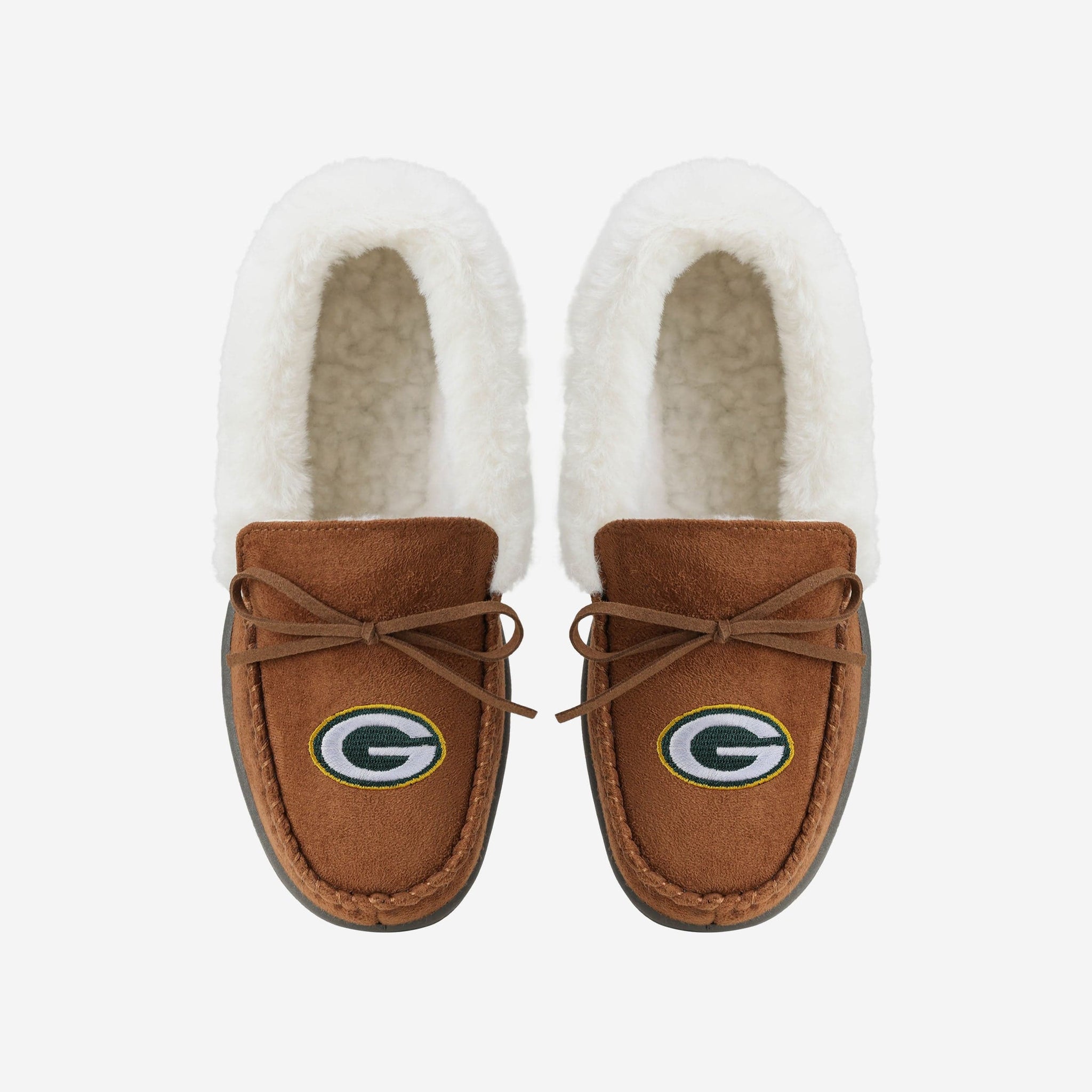 Green Bay Packers Womens Tan Moccasin Slipper FOCO S - FOCO.com