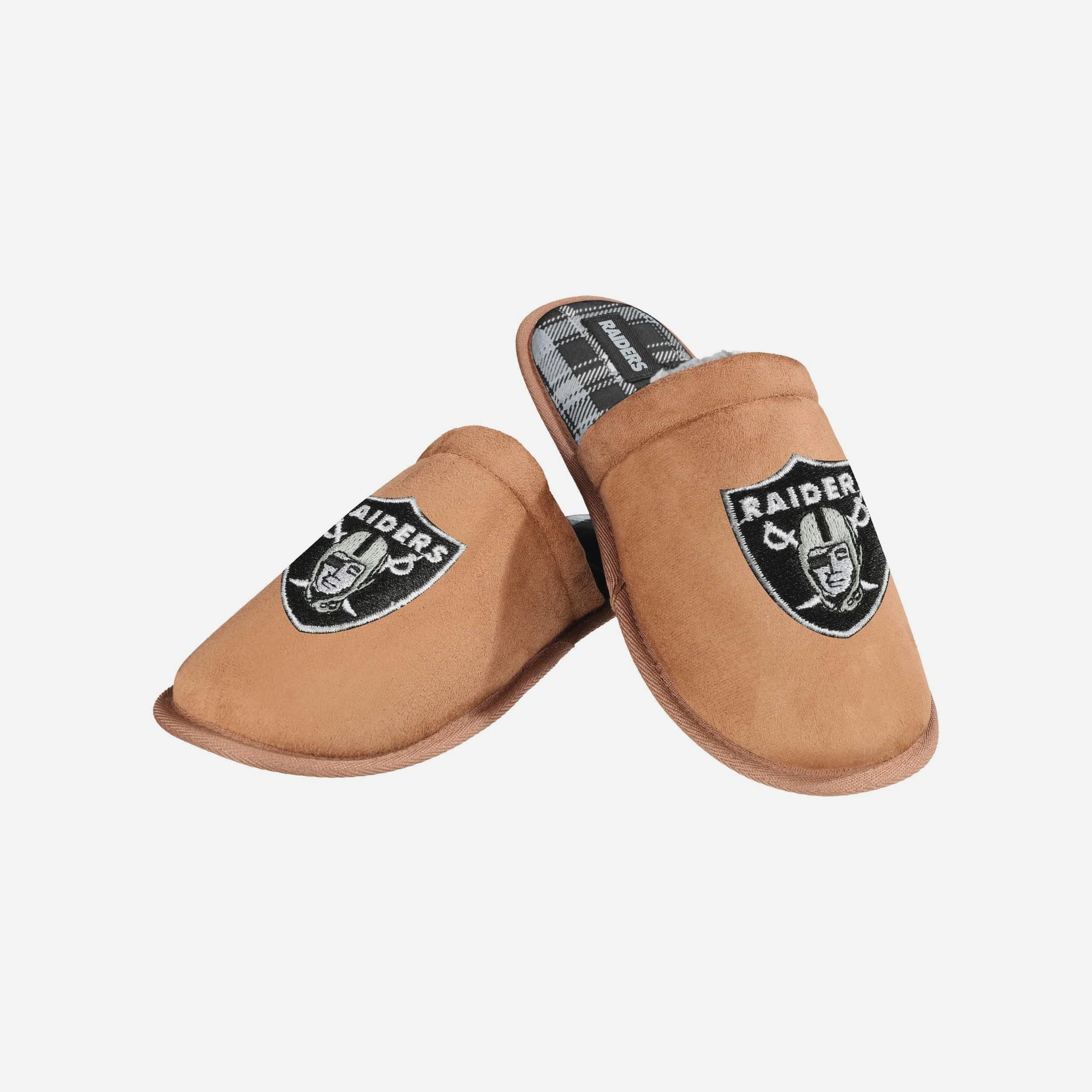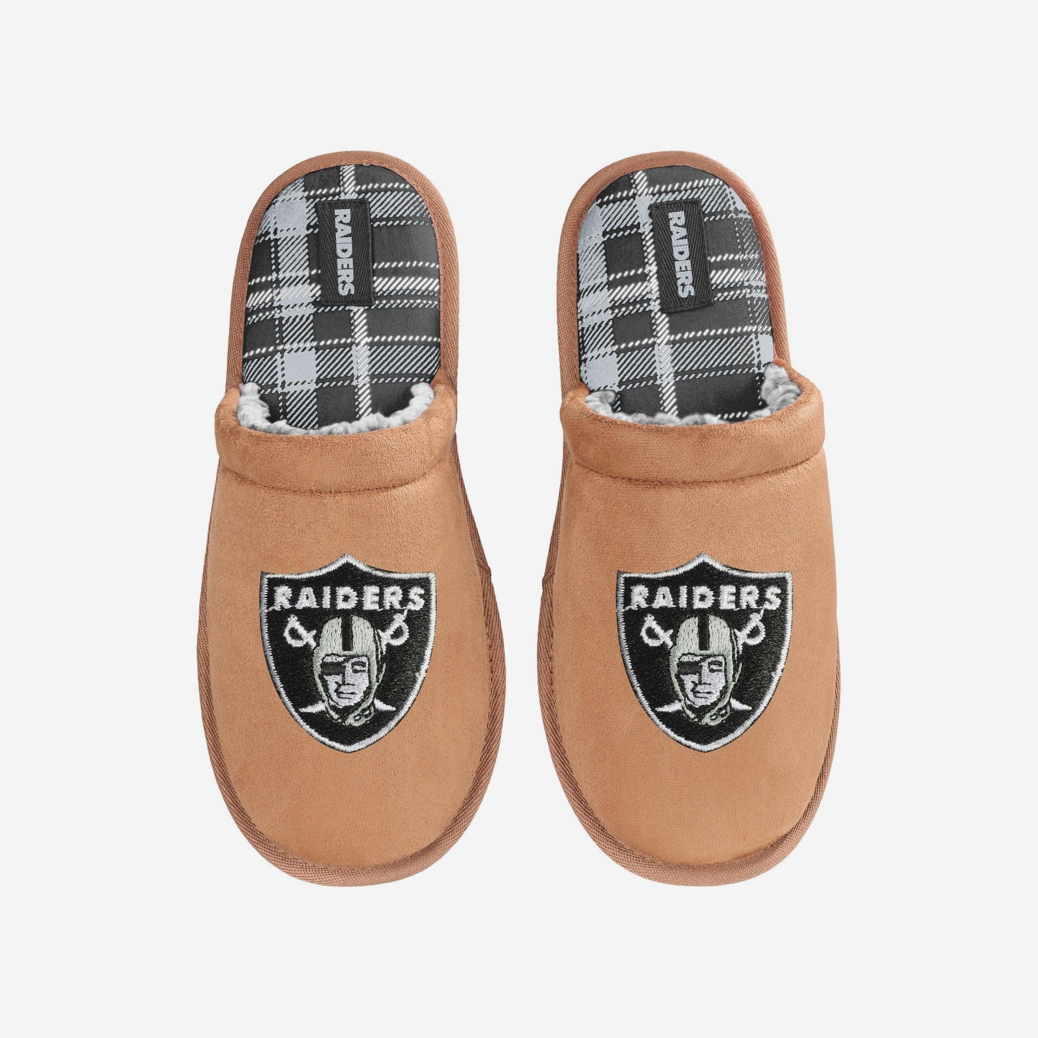 Gameday comfort just got a major upgrade. Slide into cozy fandom and kick back like a champion with the Las Vegas Raiders Flannel Lined Brown Suede Scuff Slippers.