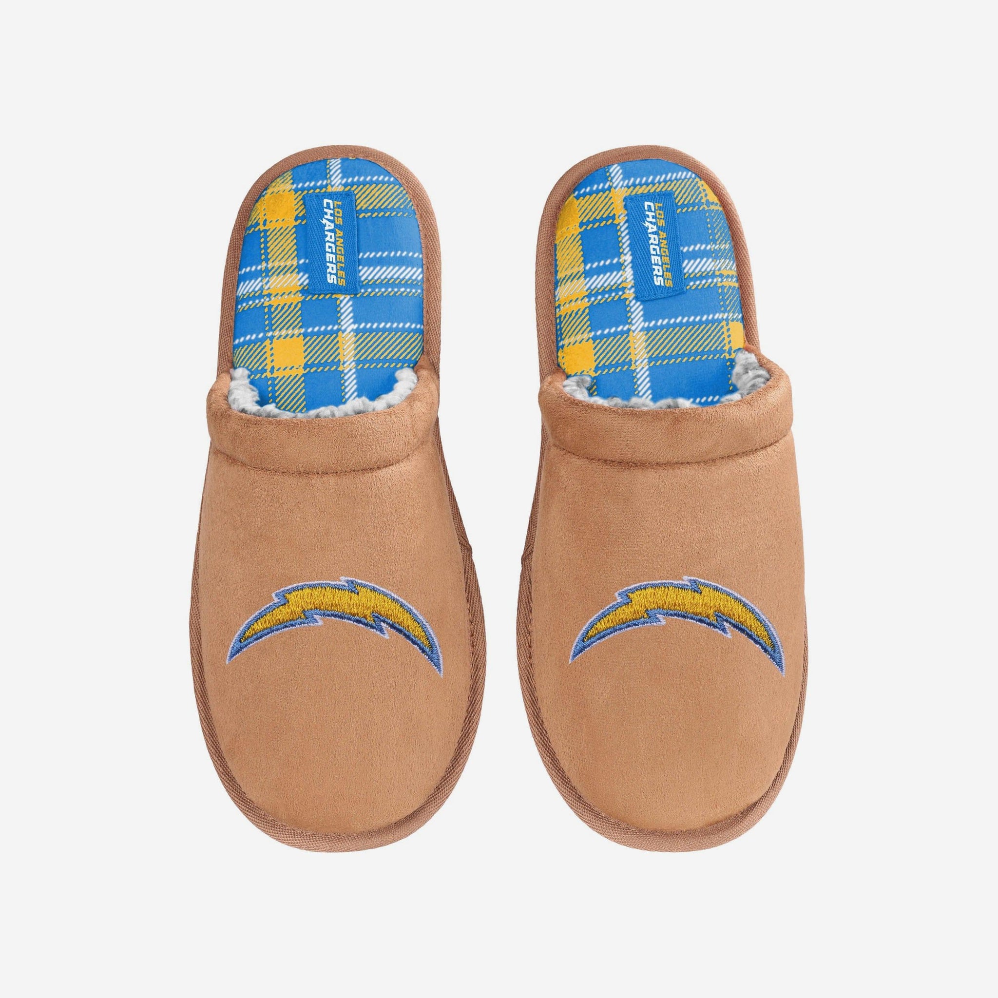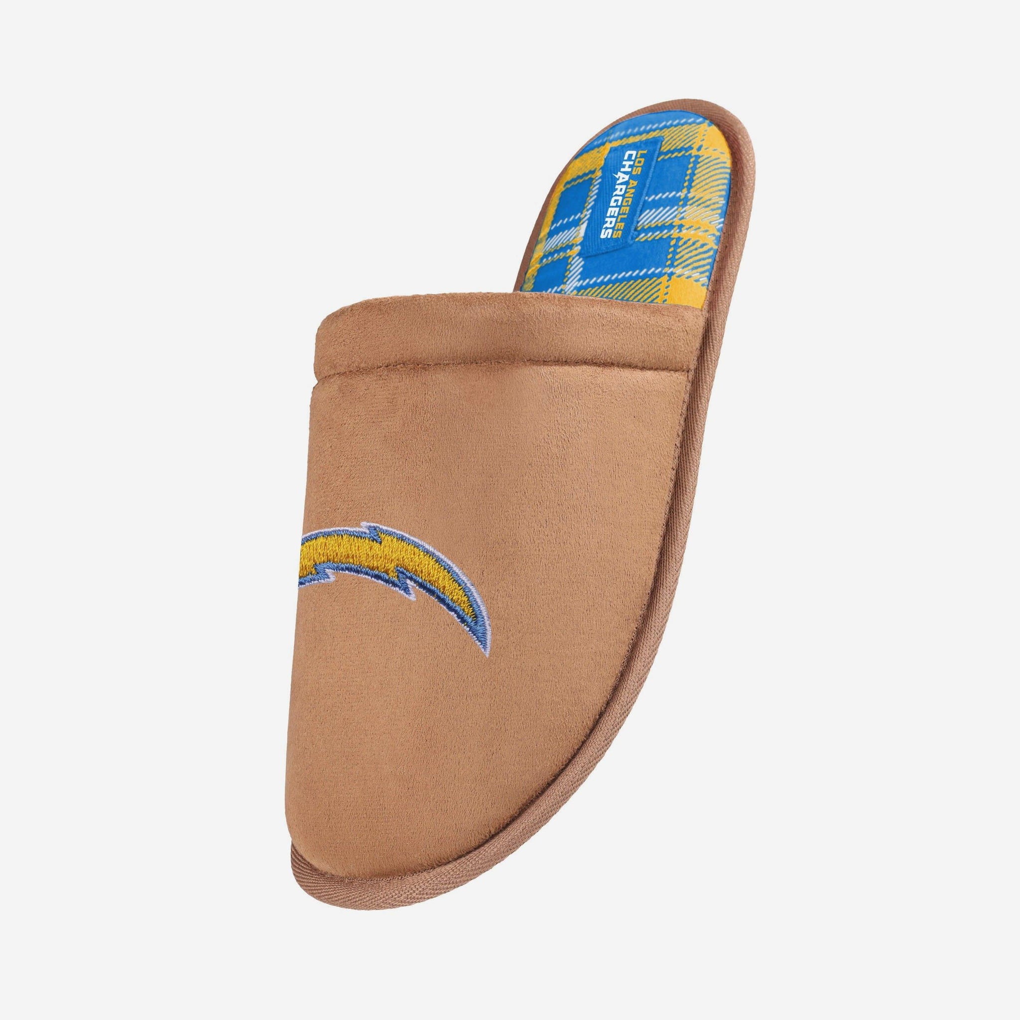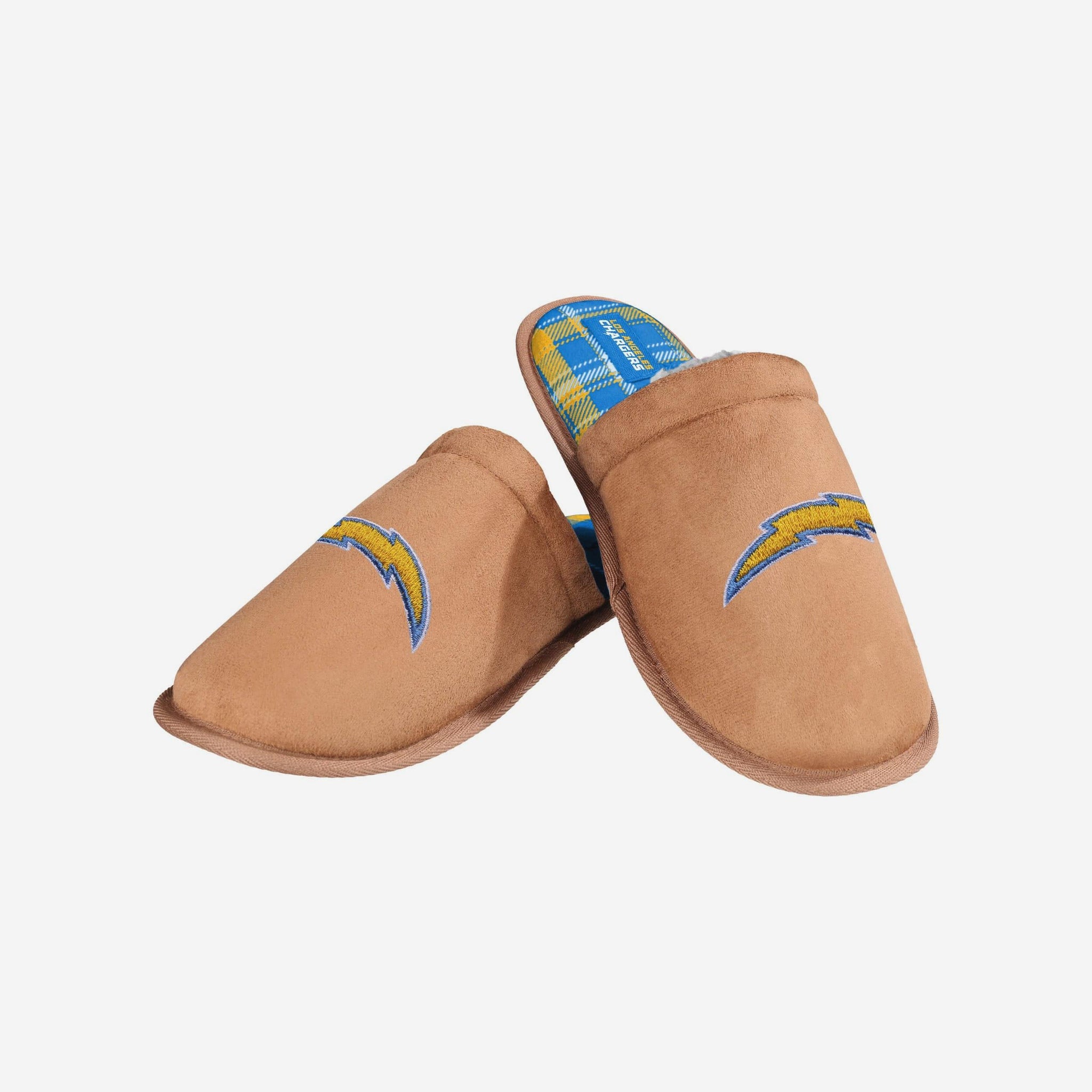 Los Angeles Chargers Flannel Lined Brown Suede Scuff Slipper FOCO S - FOCO.com
