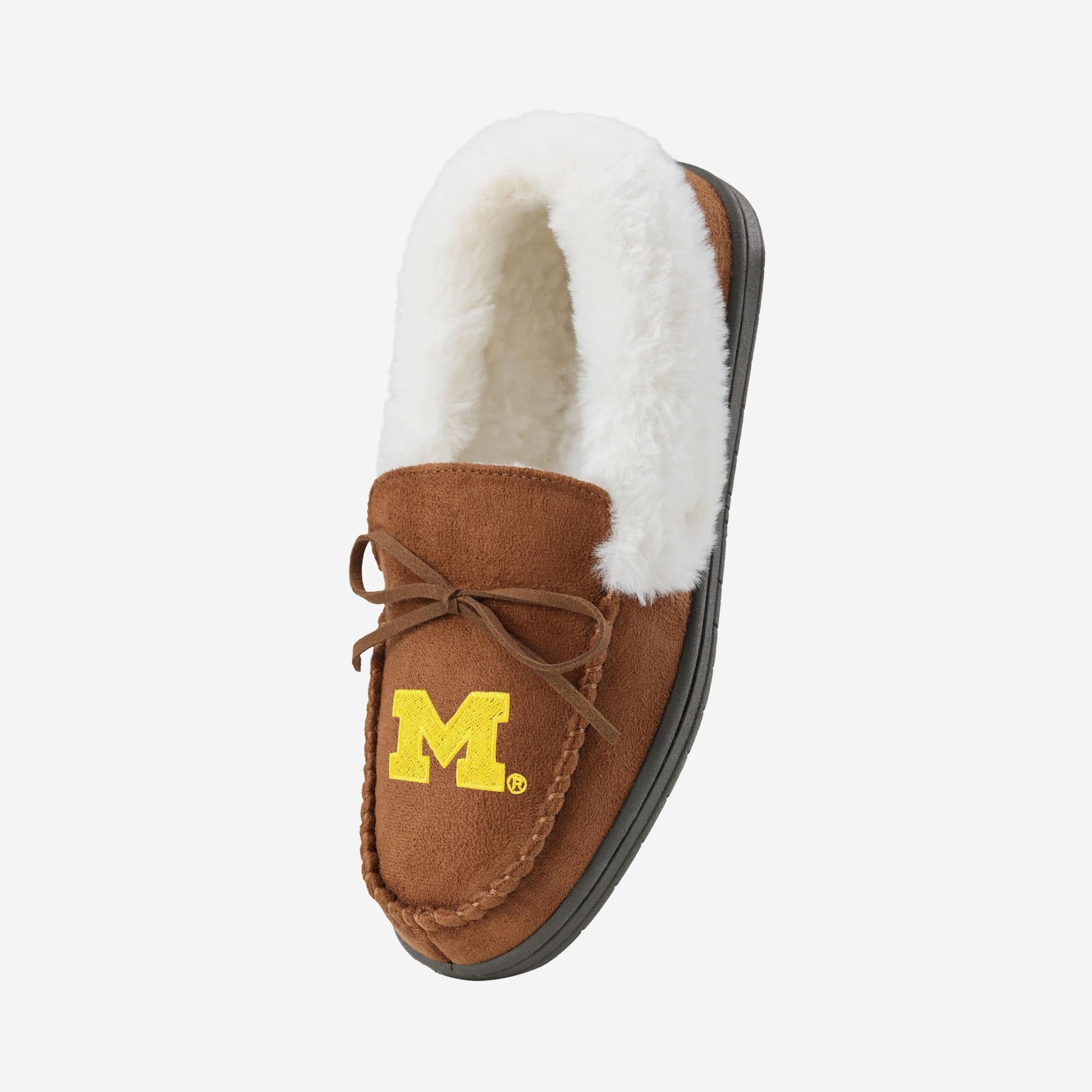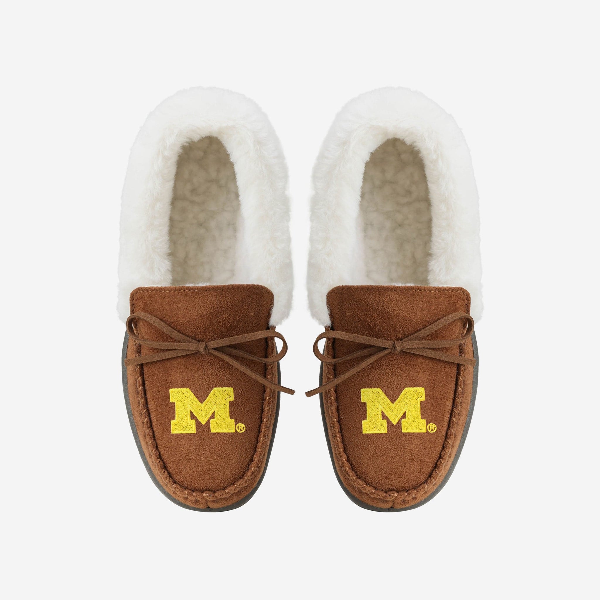 When you rocc these moccs, you can be an MVP on the couch watching TV! Introducing the Michigan Wolverines Women's Tan Moccasin Slippers!