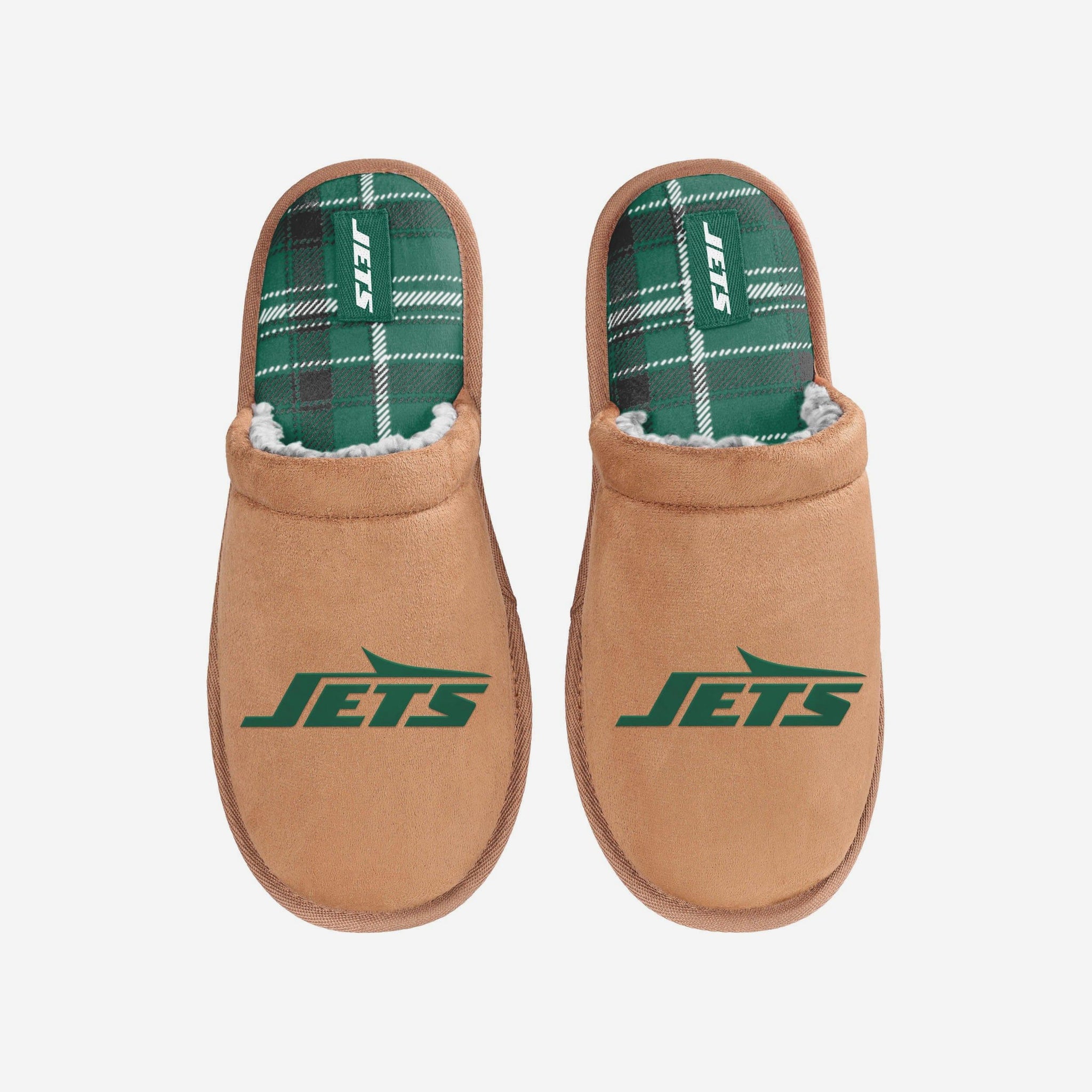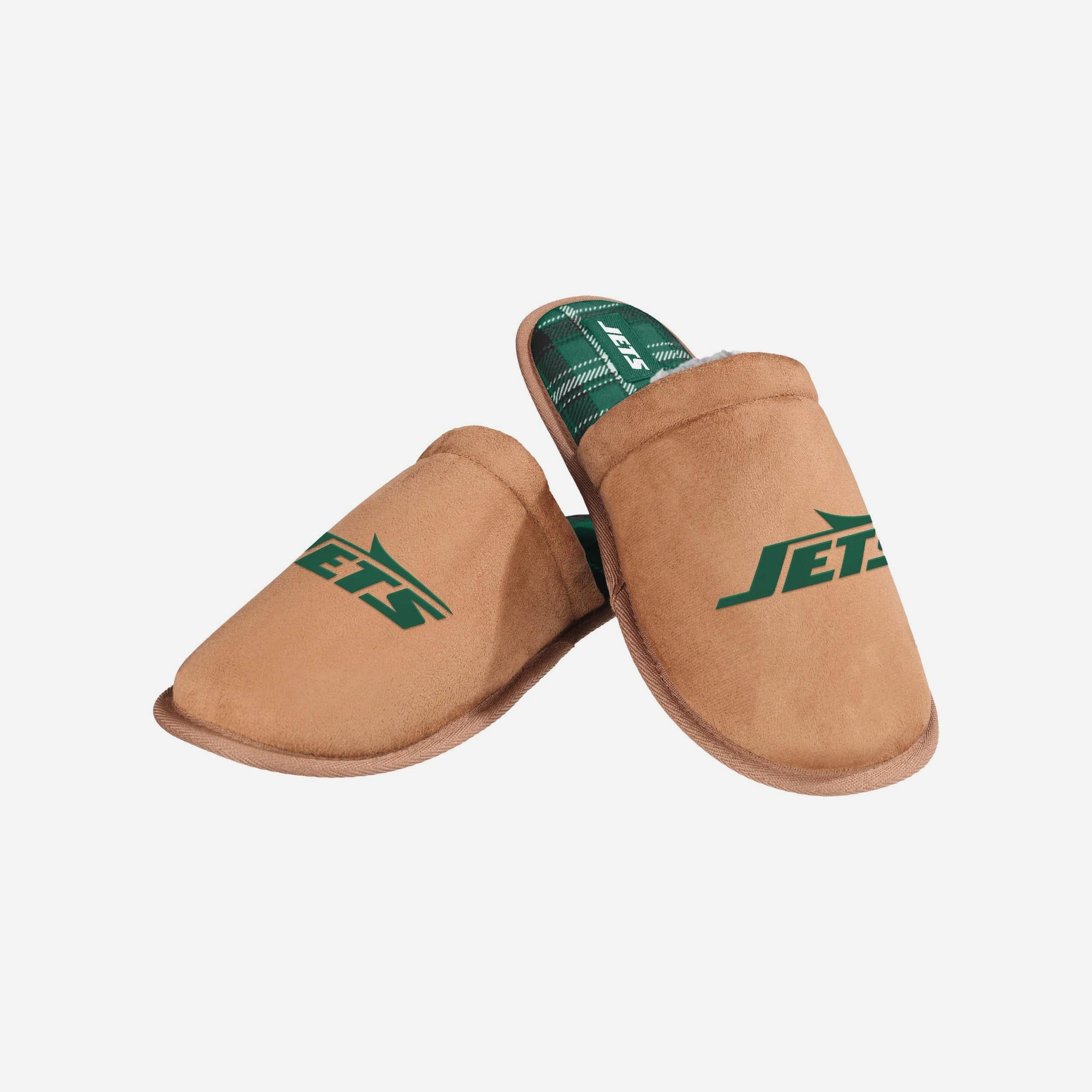 Gameday comfort just got a major upgrade. Slide into cozy fandom and kick back like a champion with the New York Jets Flannel Lined Brown Suede Scuff Slippers.